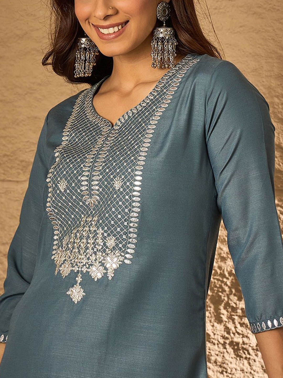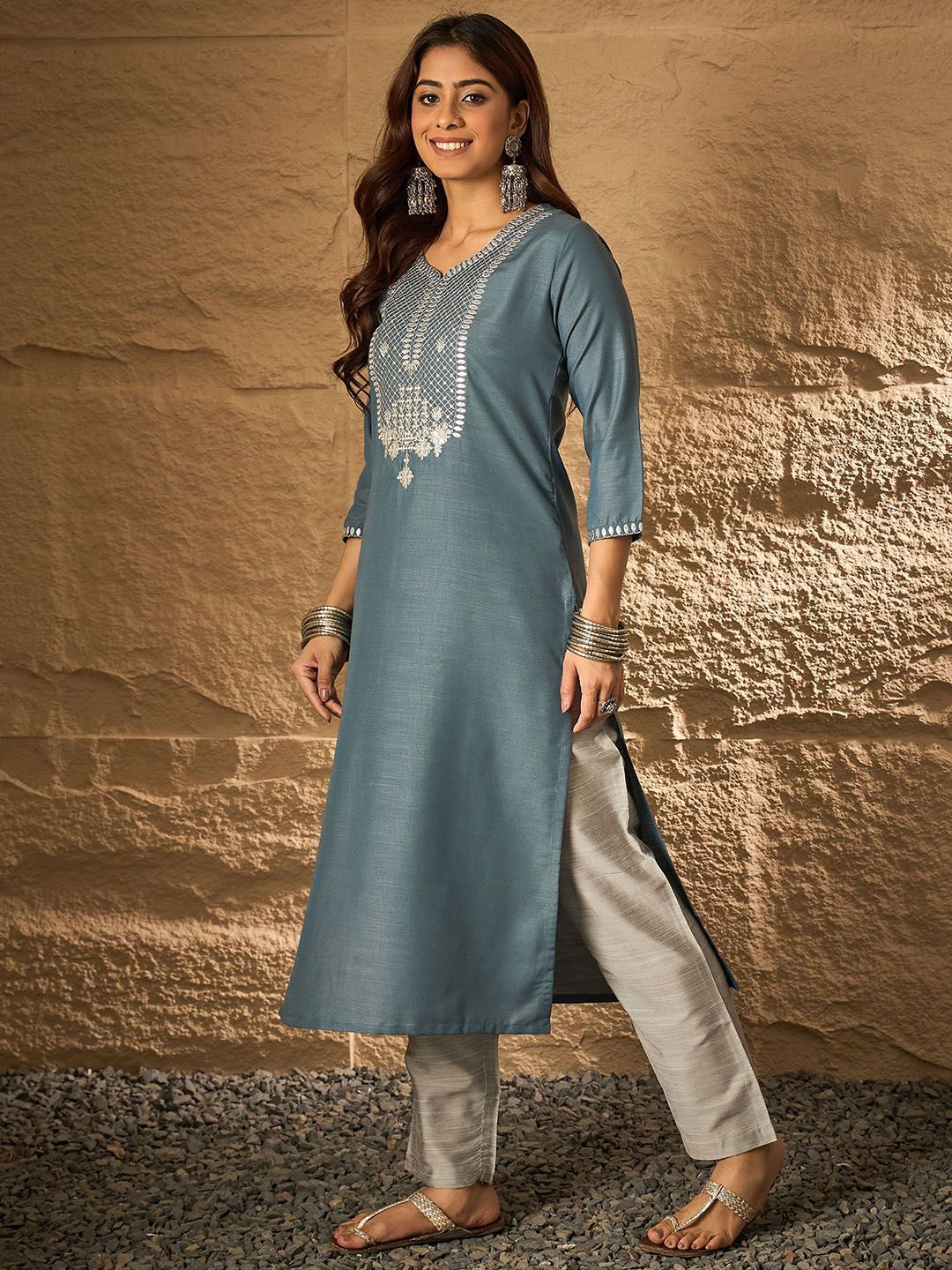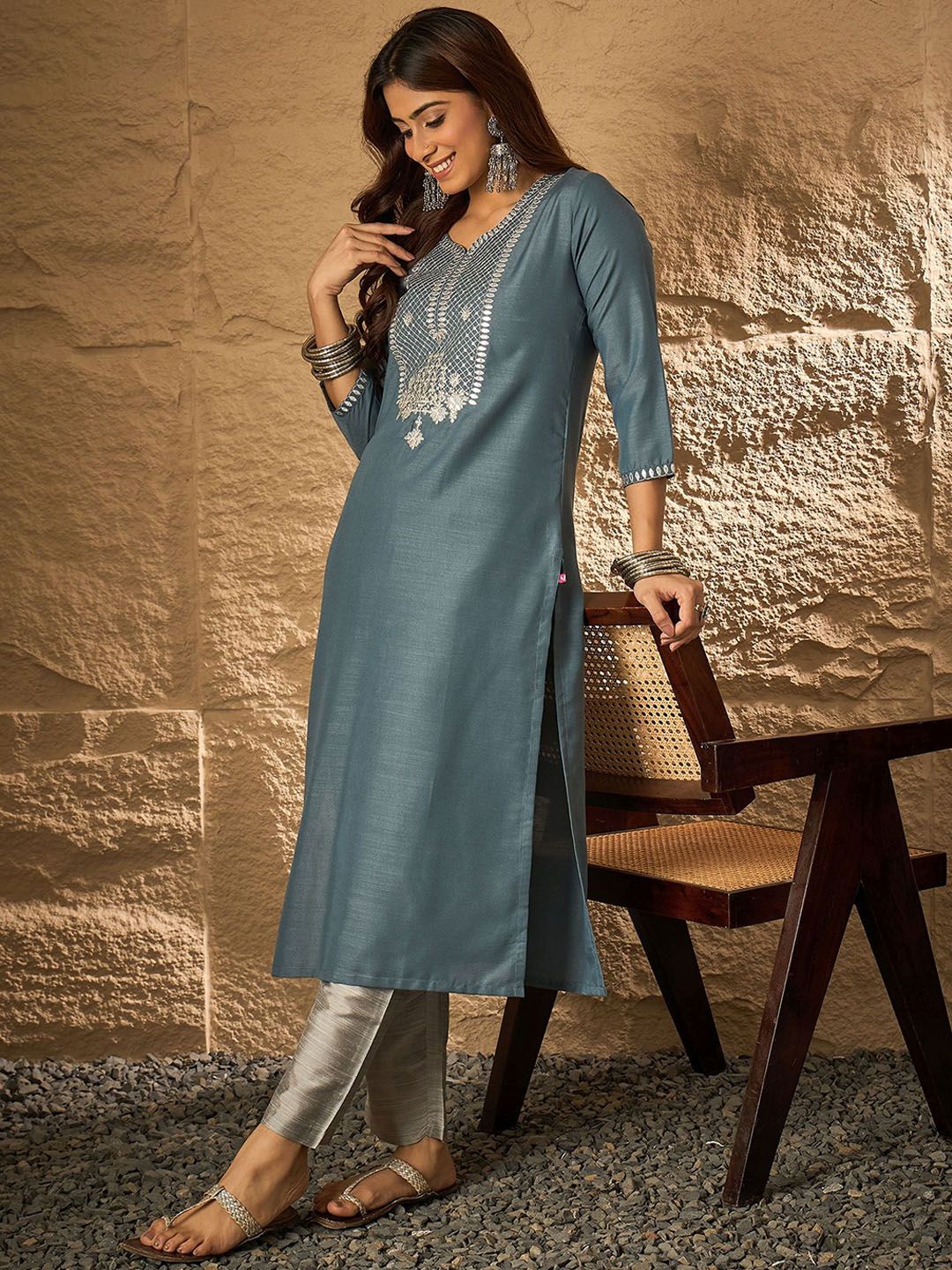 Buy this stylish KALINI Women Ethnic Motifs Embroidered Regular Thread Work Kurta with Trousers at Marincart Nepal. This product offers great quality and value. Perfect for those looking for the latest trends in fashion. Get yours now at unbeatable prices.