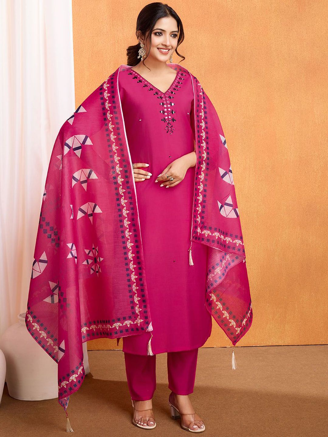 KALINI Women Ethnic Motifs Embroidered Sequinned Kurta & Trouser With Dupatta