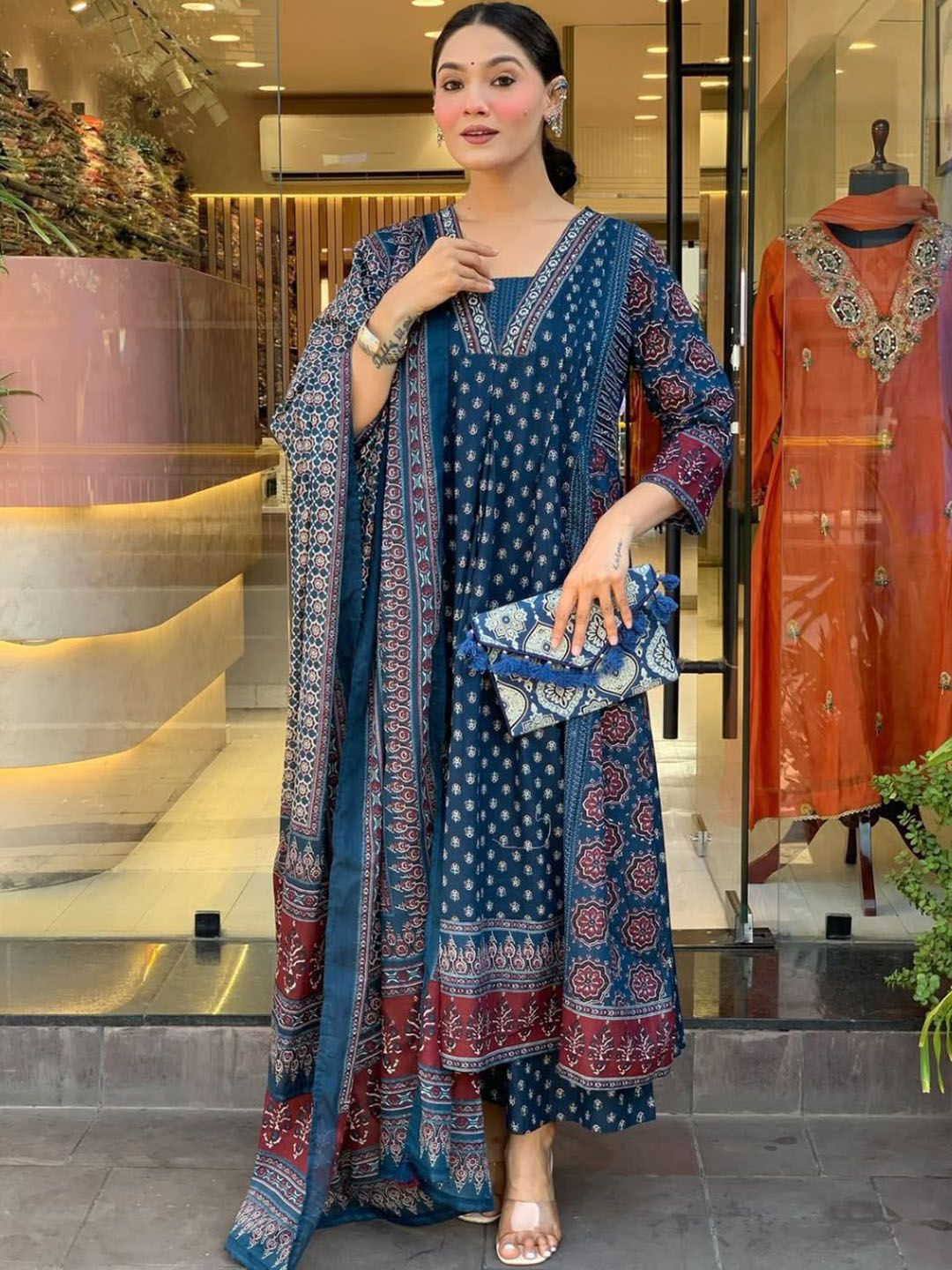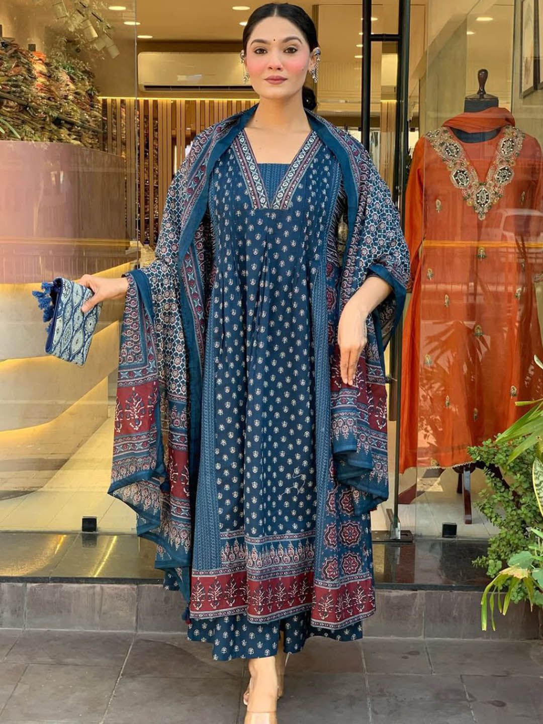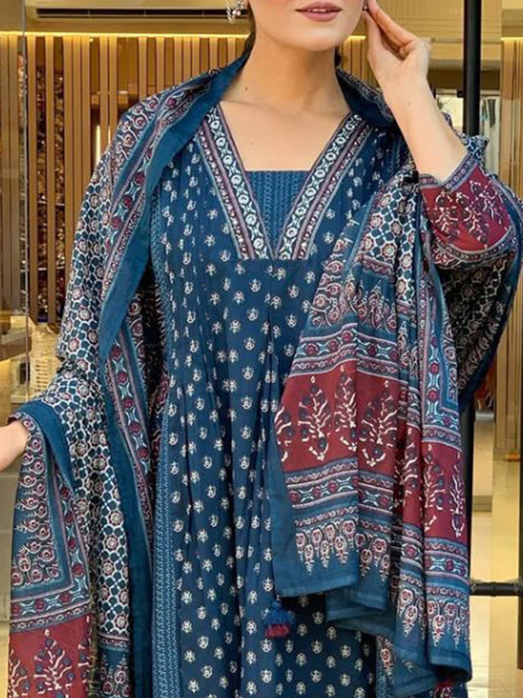 KALINI Women Ethnic Motifs Printed A-Line Kurta with Palazzos & Dupatta