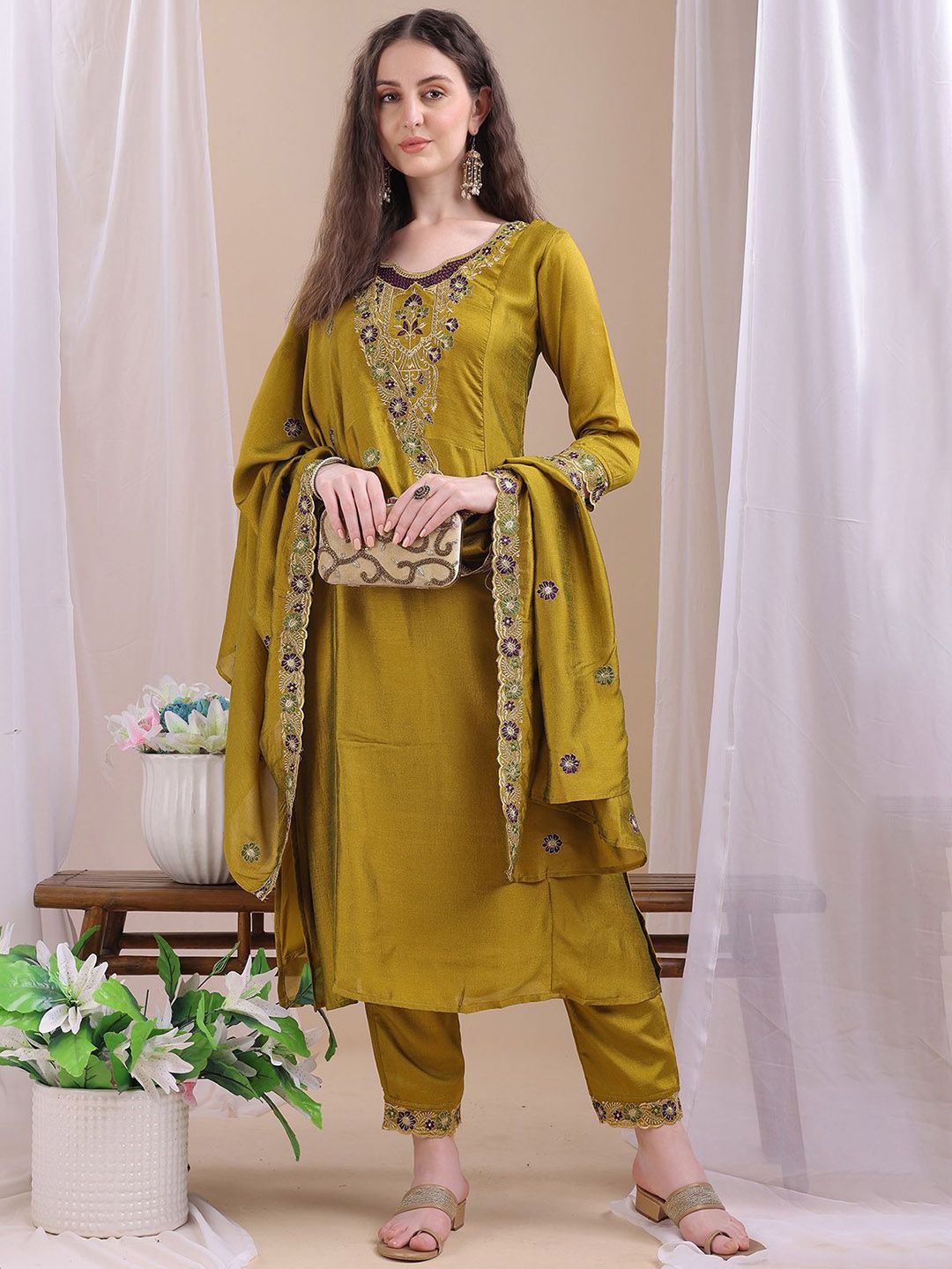 KALINI Women Ethnic Motifs Printed A-Line Kurta with Trousers & Dupatta