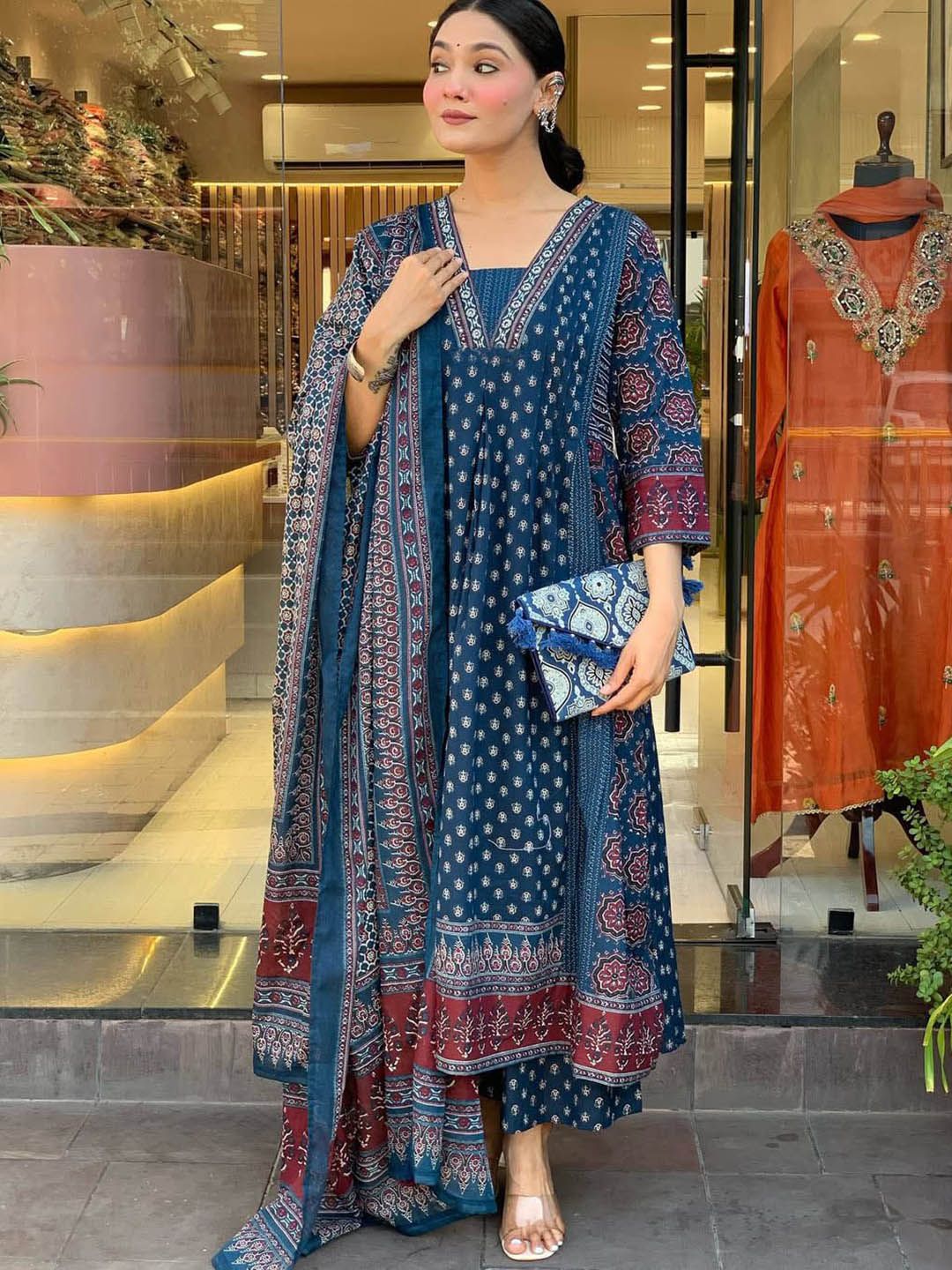 KALINI Women Ethnic Motifs Printed Anarkali Kurta with Palazzo & Dupatta