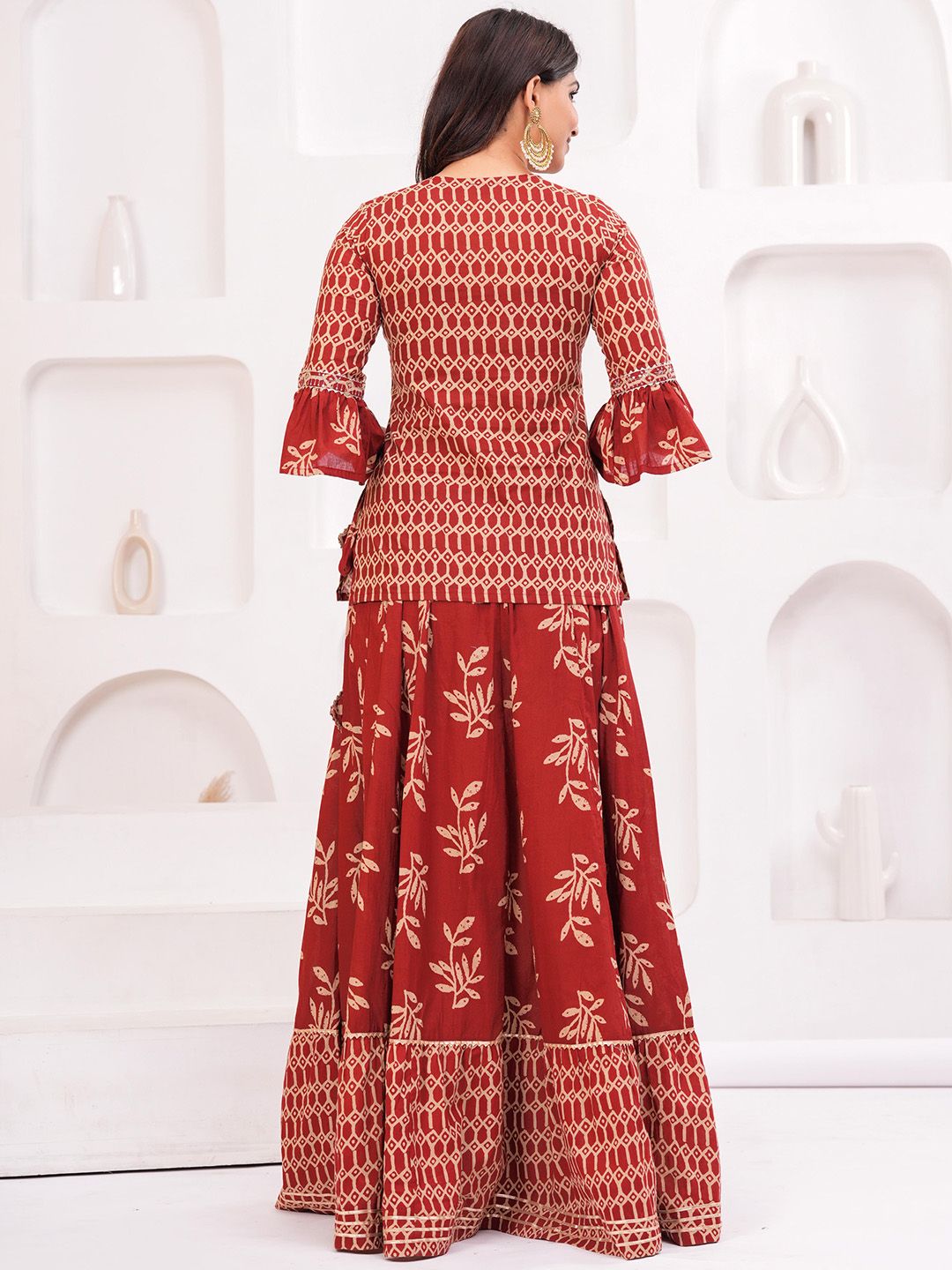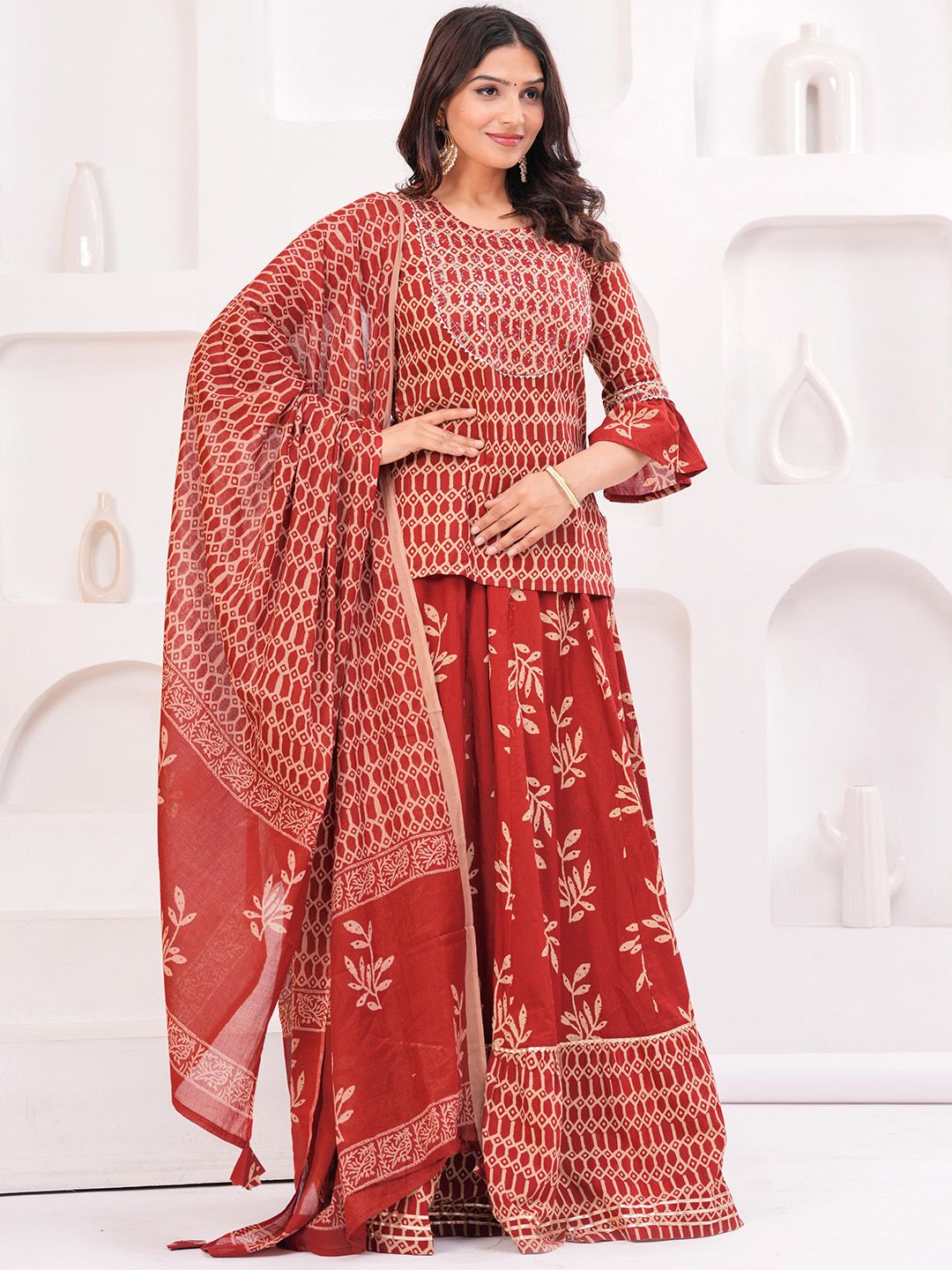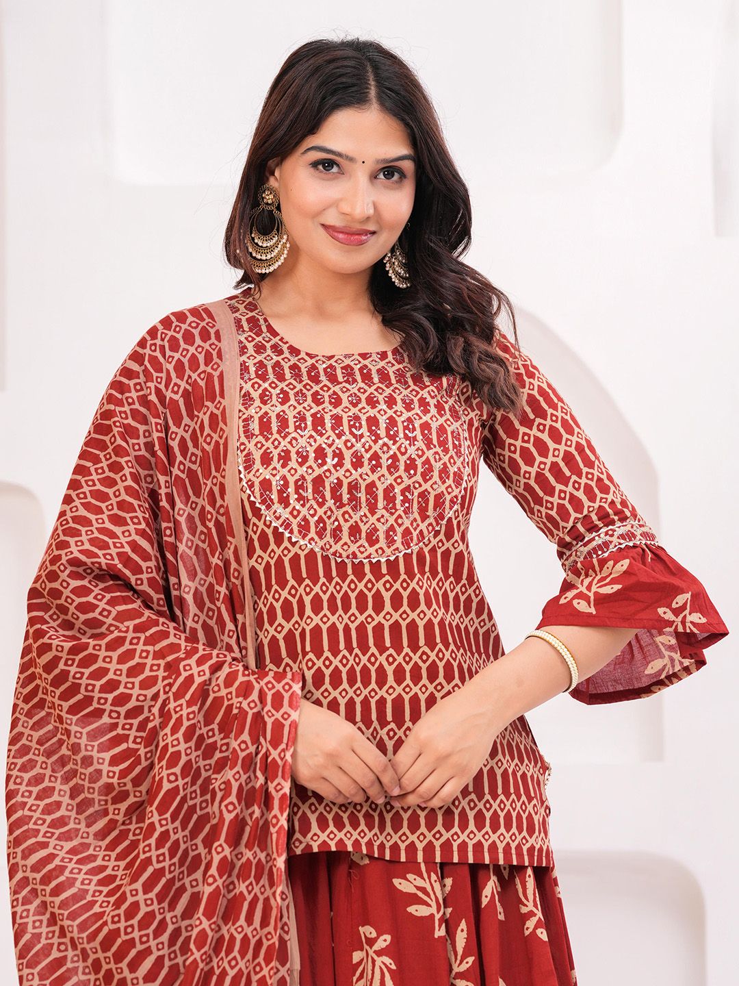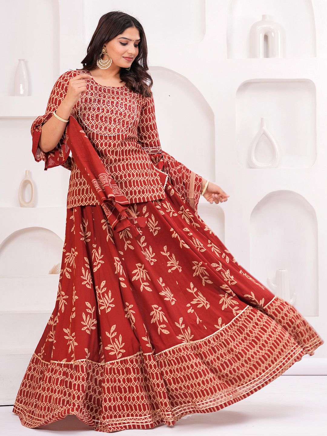 KALINI Women Ethnic Motifs Printed Cotton A-Line Kurti with Skirt & Dupatta