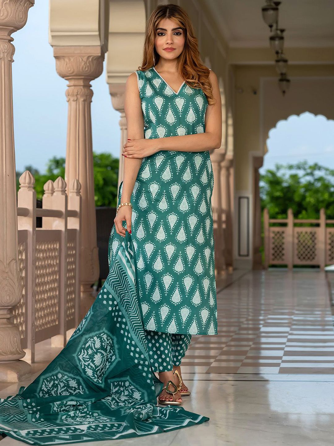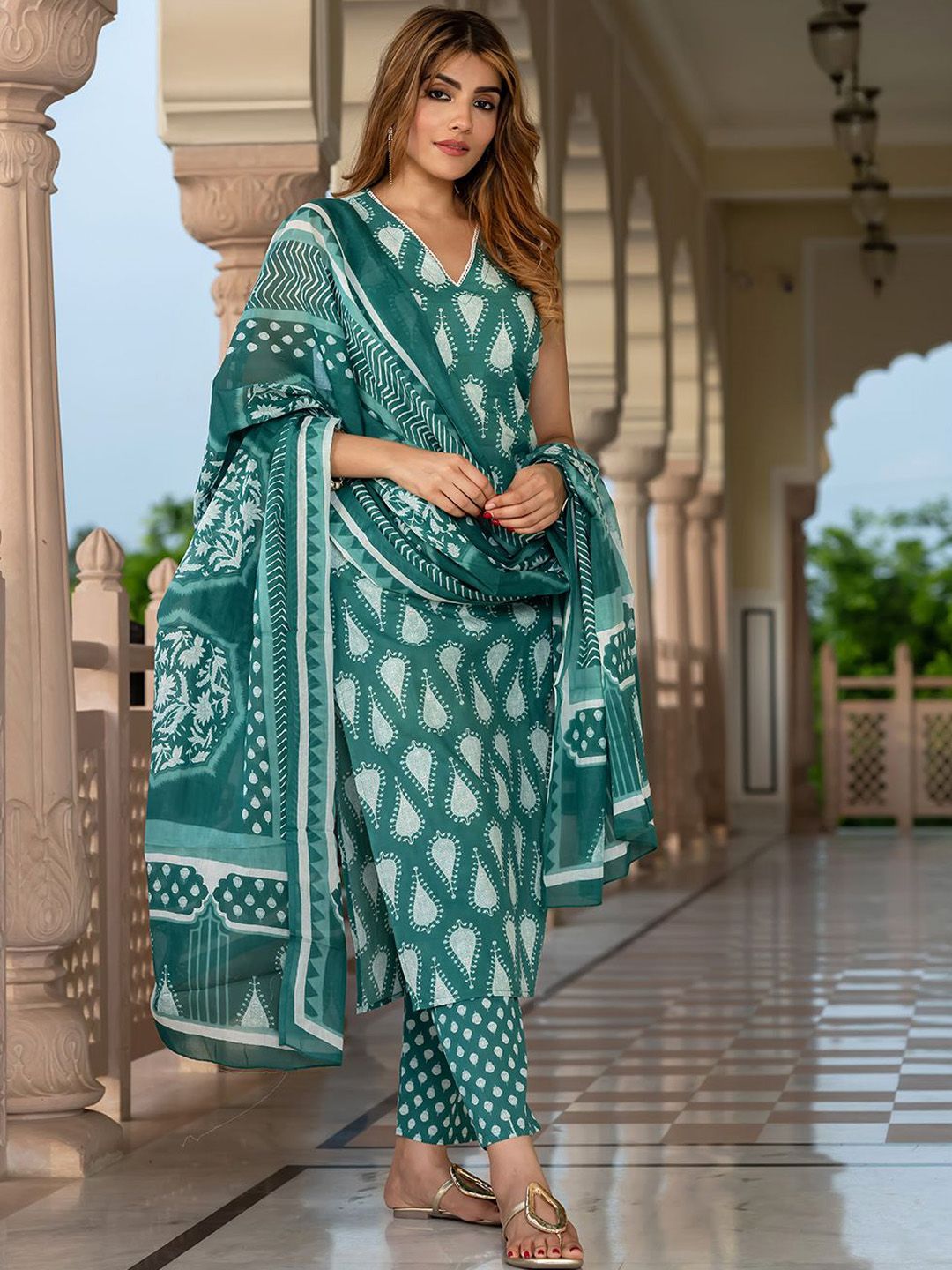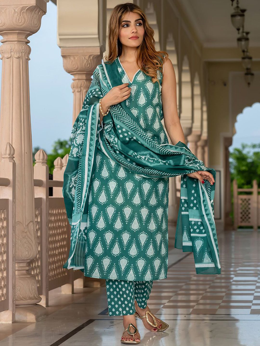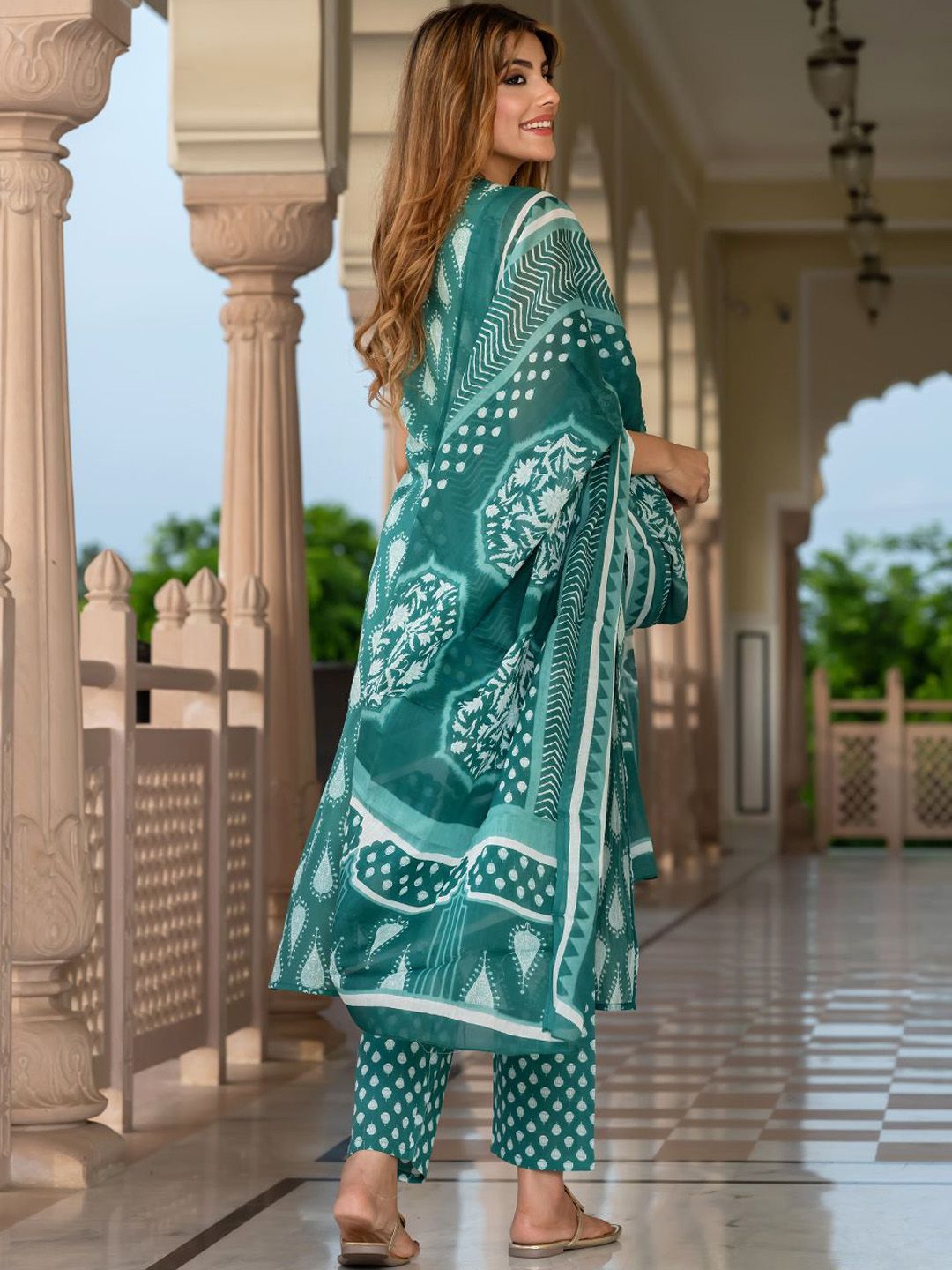 KALINI Women Ethnic Motifs Printed Cotton Kurta with Churidar & Dupatta