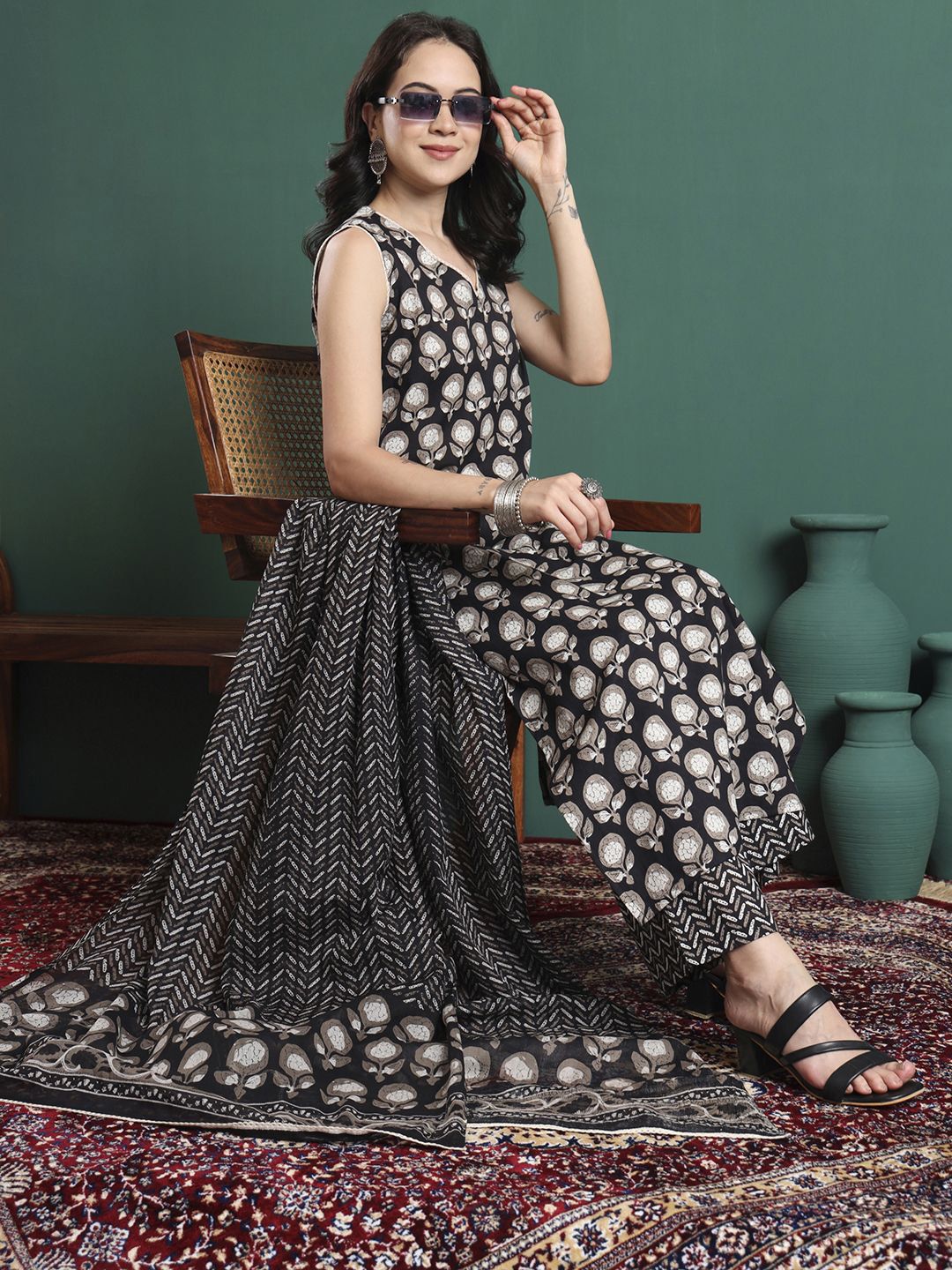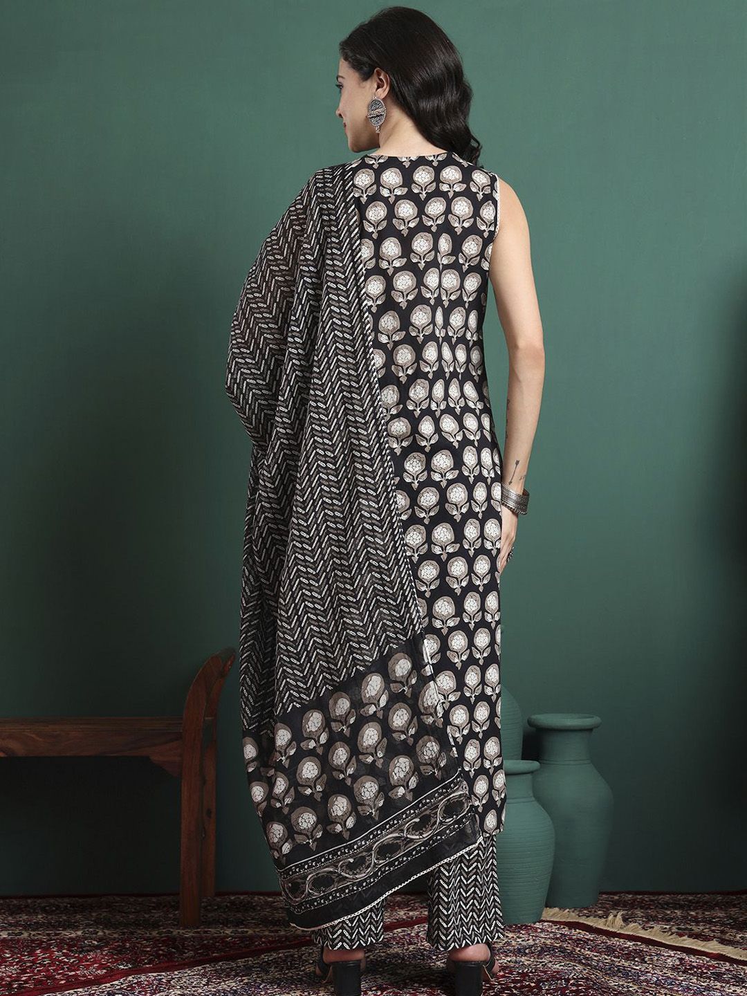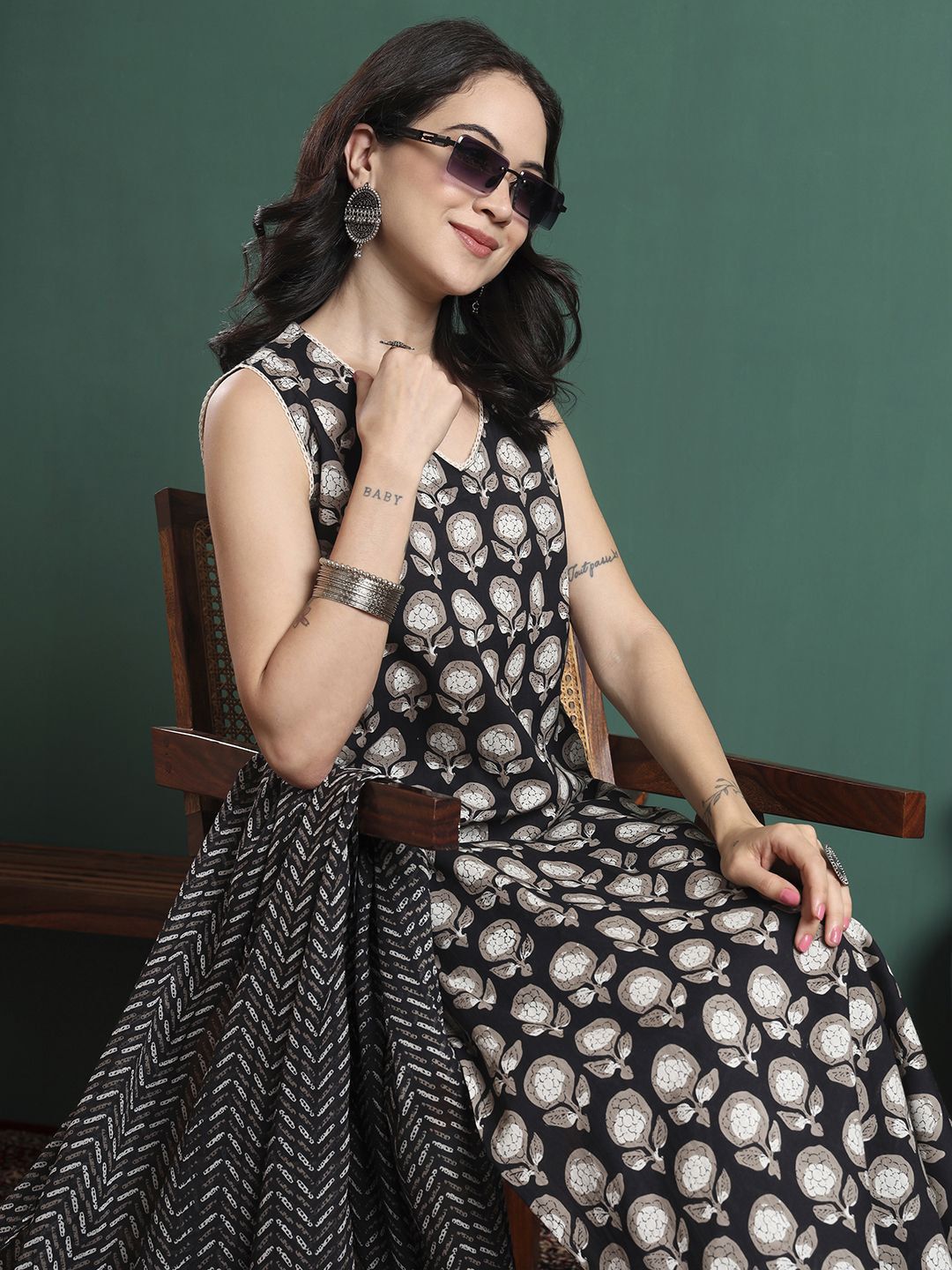 KALINI Women Ethnic Motifs Printed Pure Cotton Anarkali Kurta with Trouser & Dupatta