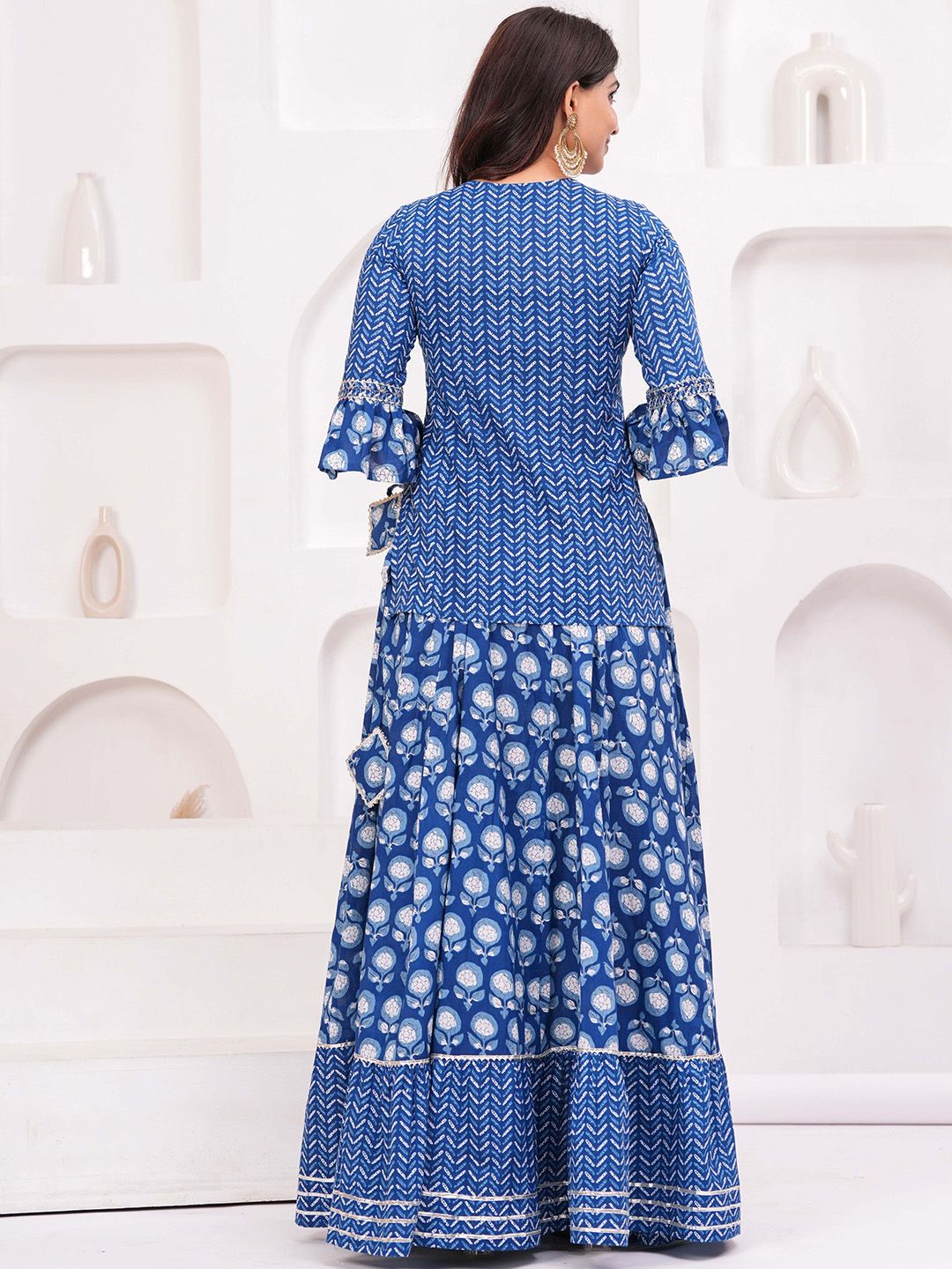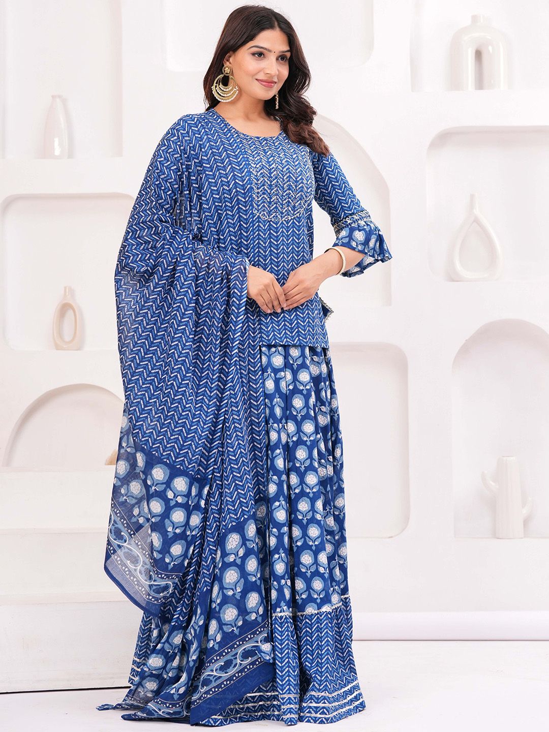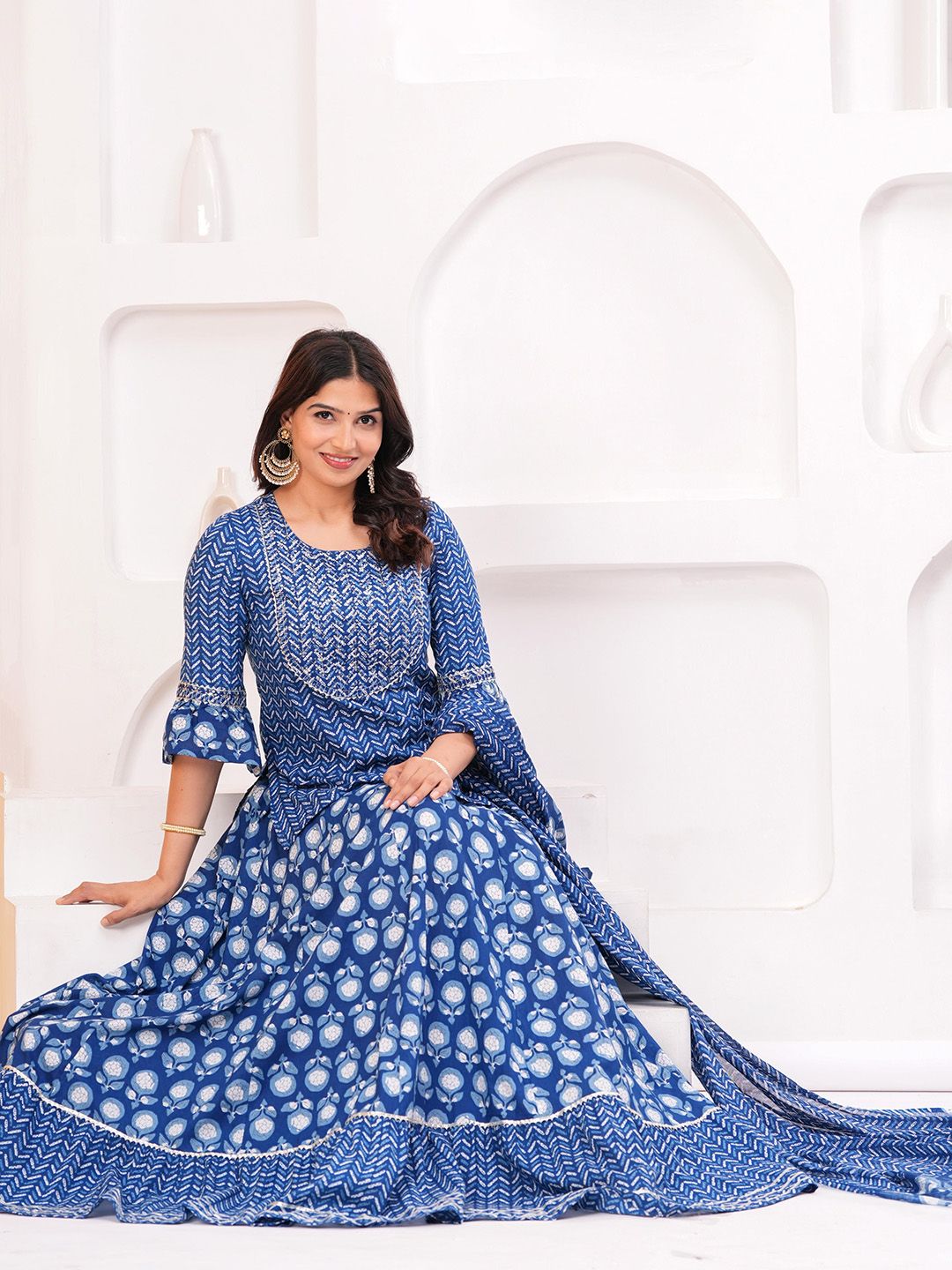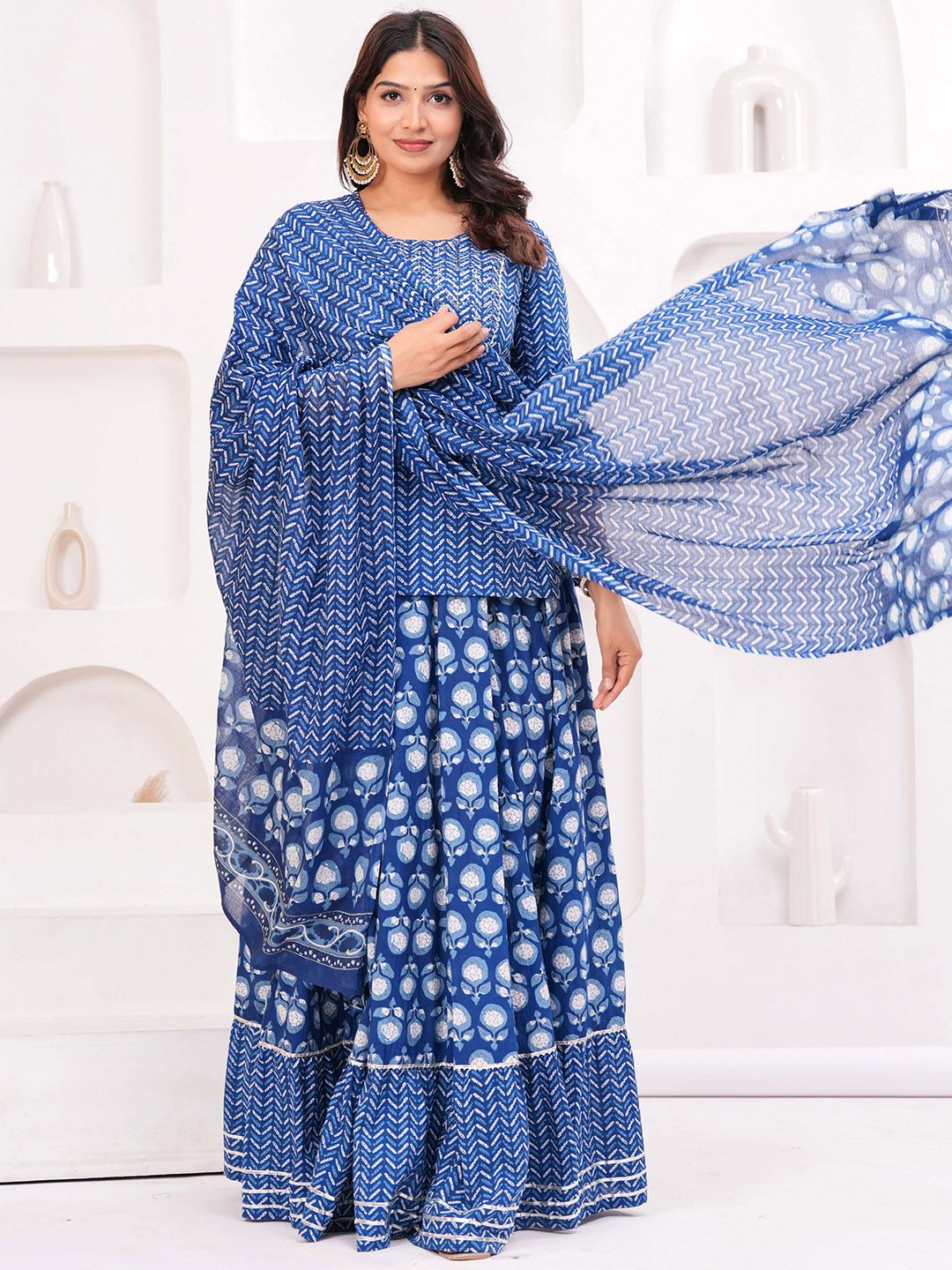 KALINI Women Ethnic Motifs Printed Pure Cotton Kurti with Skirt & Dupatta
