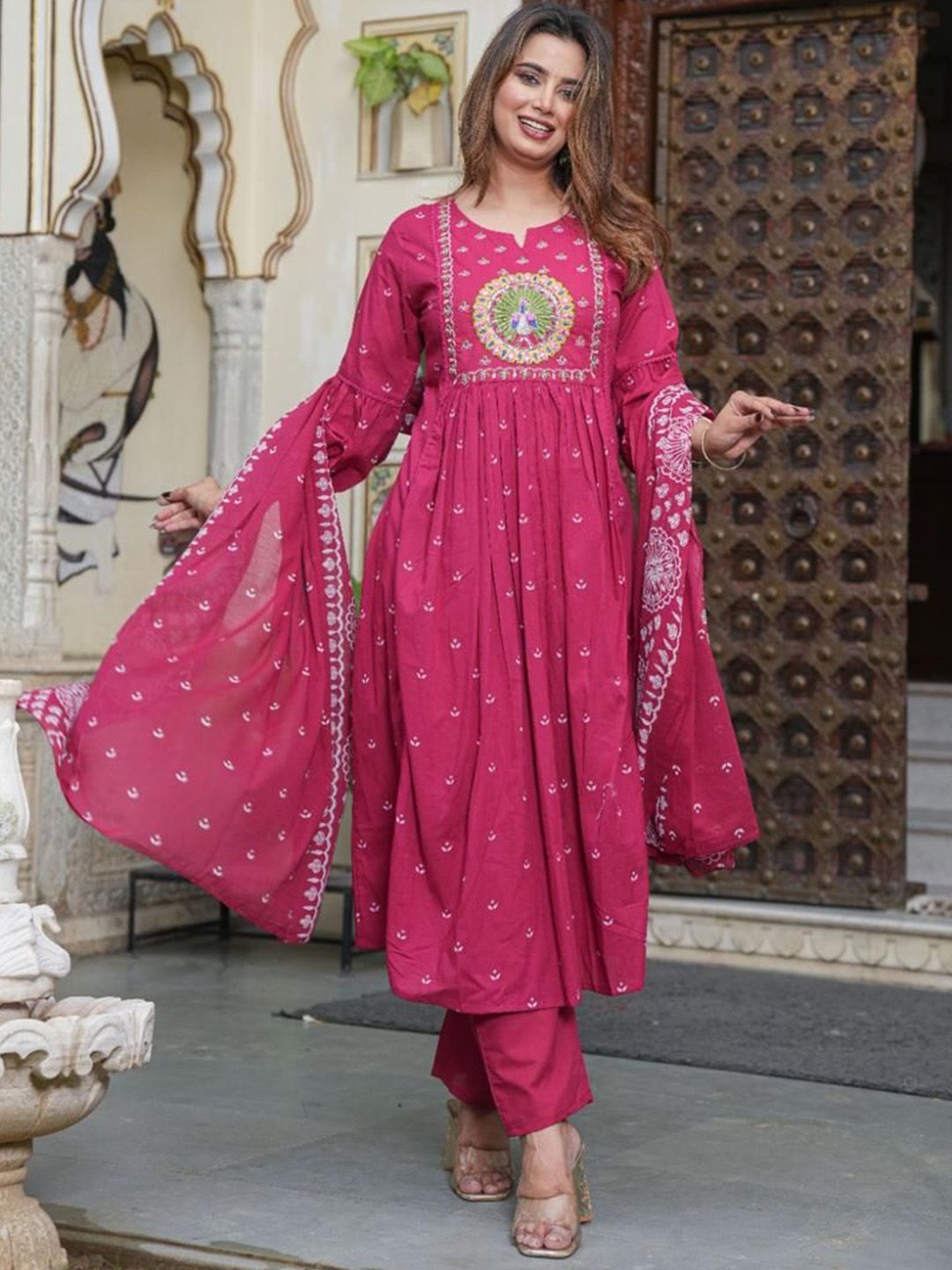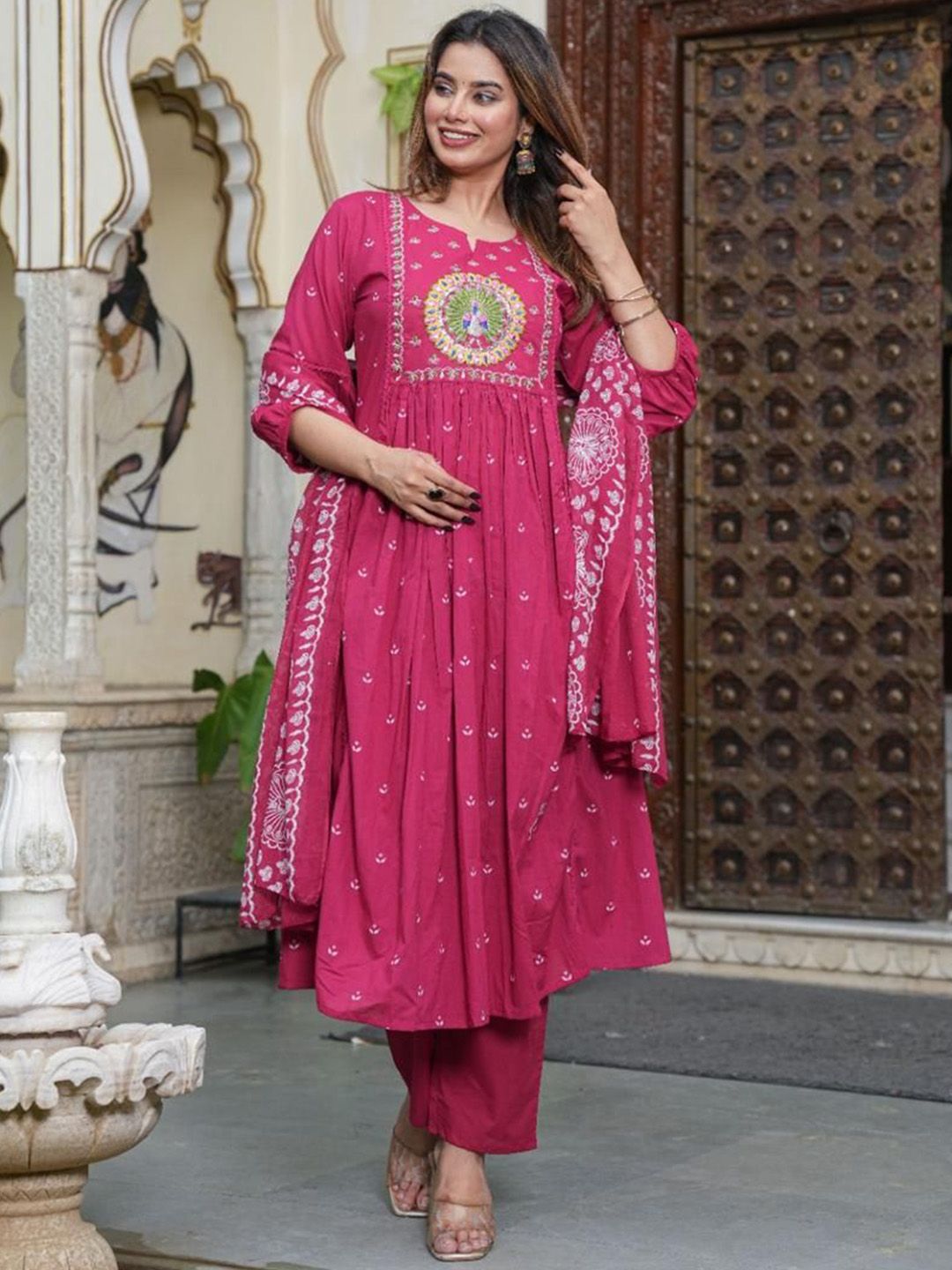 Buy this stylish KALINI Women Ethnic Motifs Printed Regular Pure Cotton Kurta with Trousers & Dupatta at Marincart Nepal. This product offers great quality and value. Perfect for those looking for the latest trends in fashion. Get yours now at unbeatable prices.