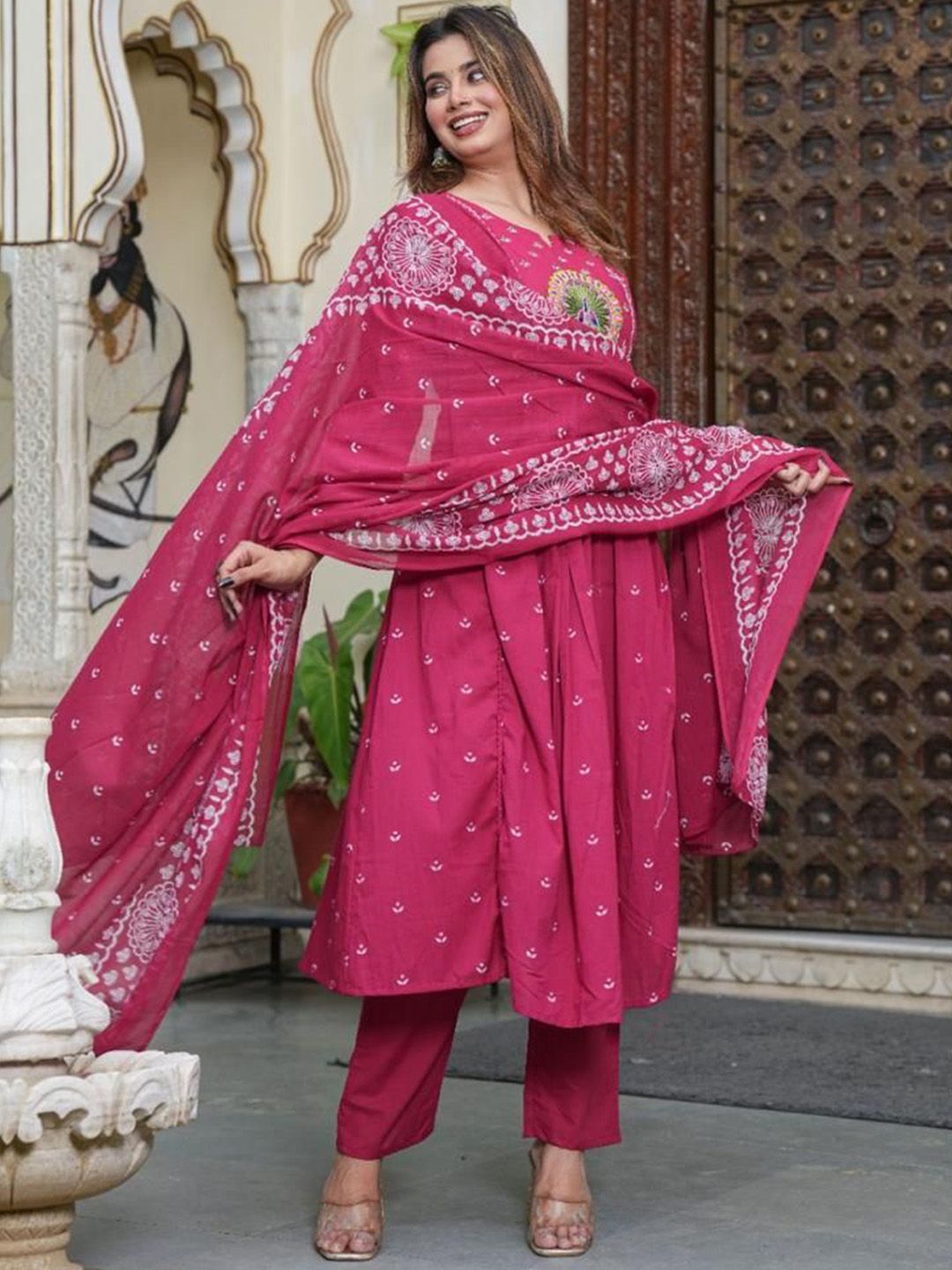 KALINI Women Ethnic Motifs Printed Regular Pure Cotton Kurta with Trousers & Dupatta