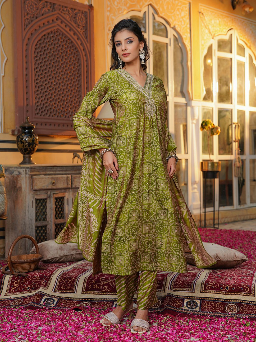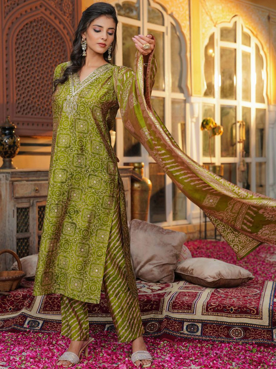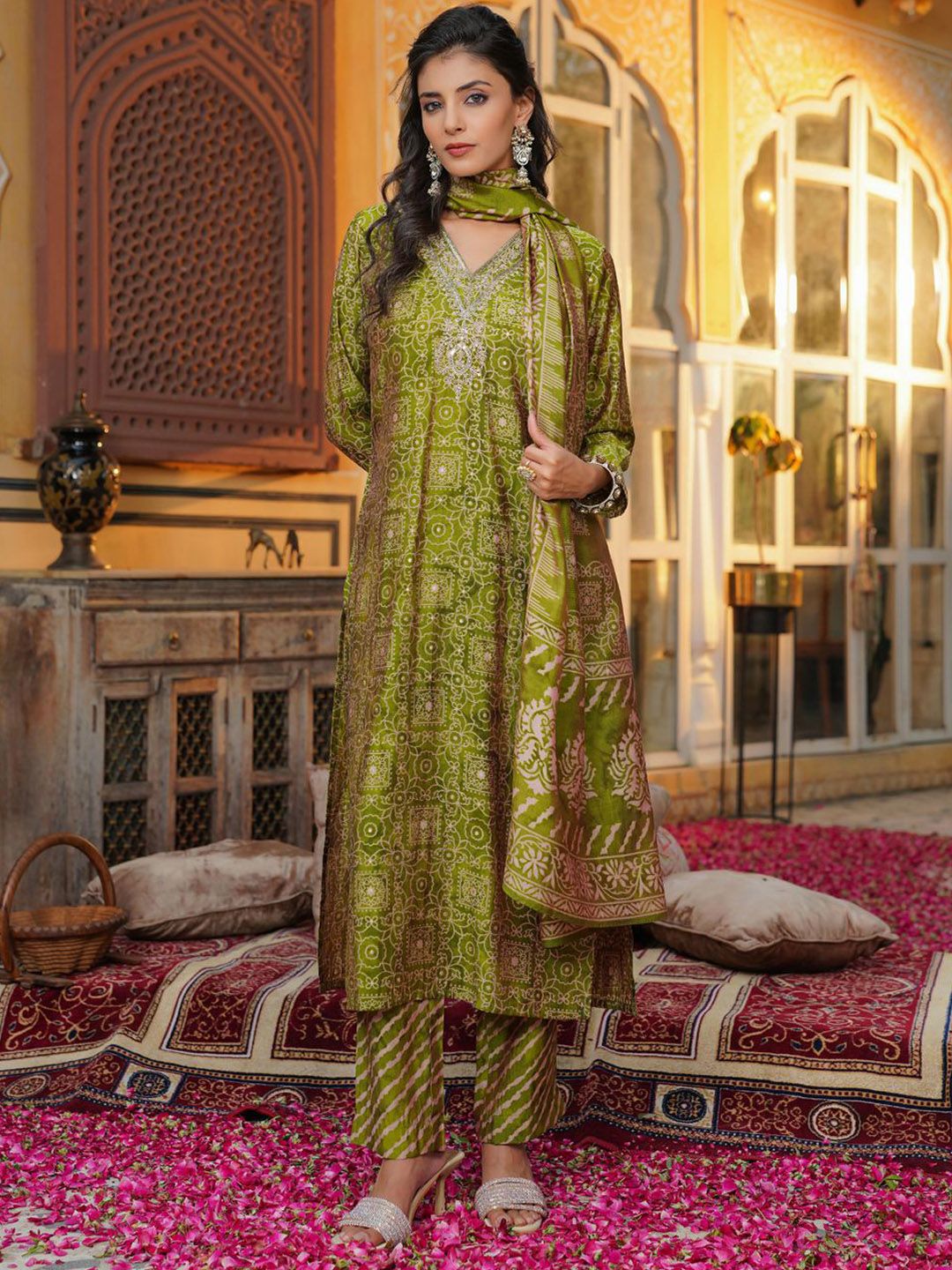 KALINI Women Ethnic Motifs Printed Regular Thread Work Kurta with Trousers & Dupatta