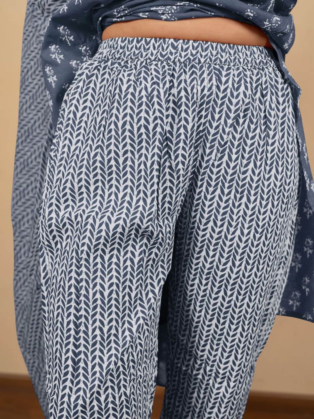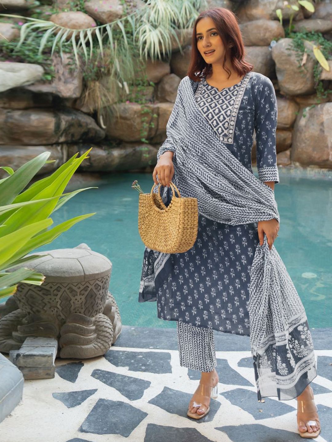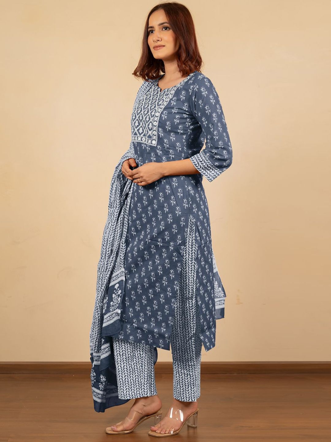 KALINI Women Ethnic Motifs Printed Thread Work Pure Cotton Kurta with Trousers & Dupatta