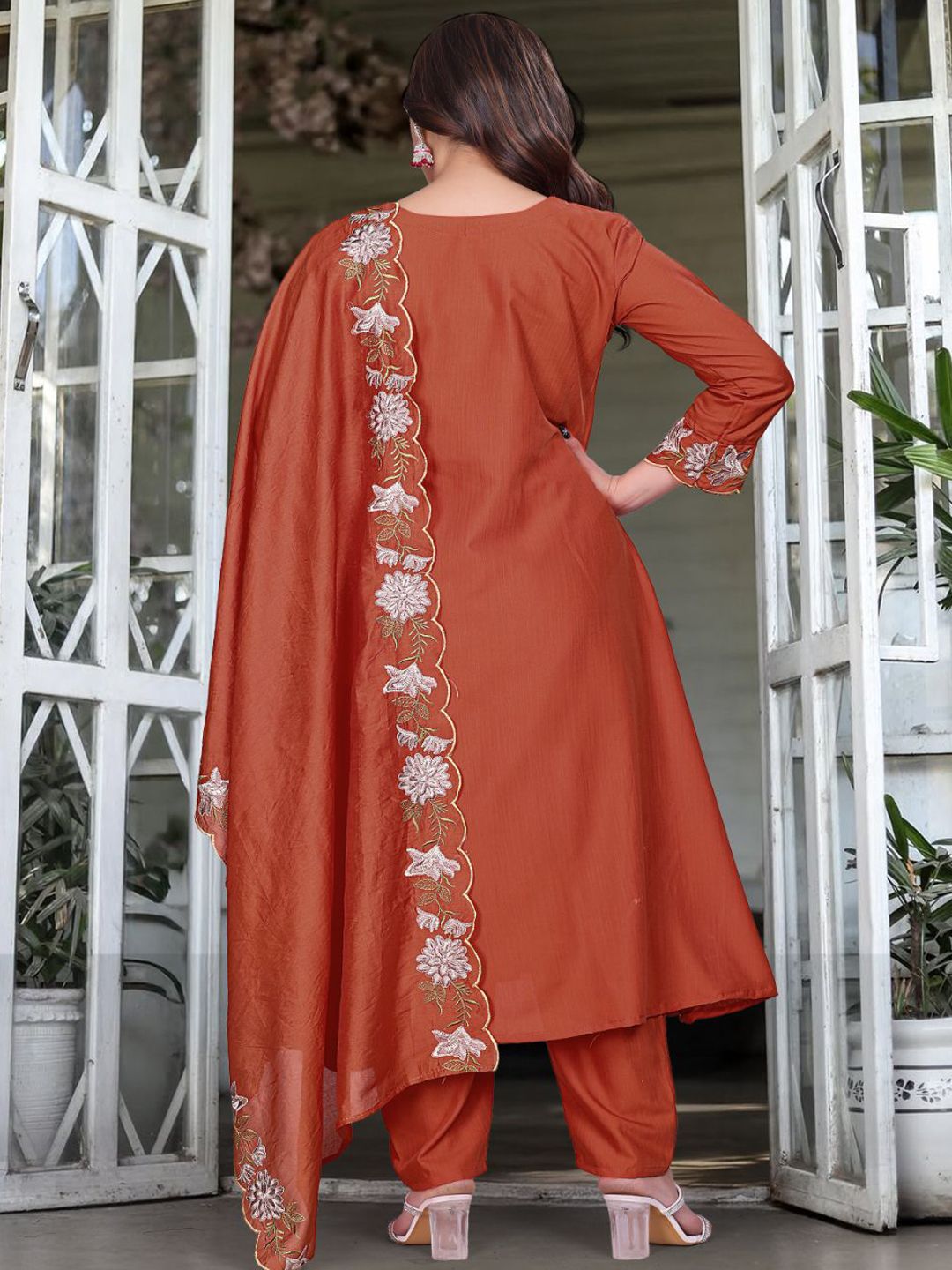 KALINI Women Floral Embroidered Anarkali Kurta with Trousers & Dupatta