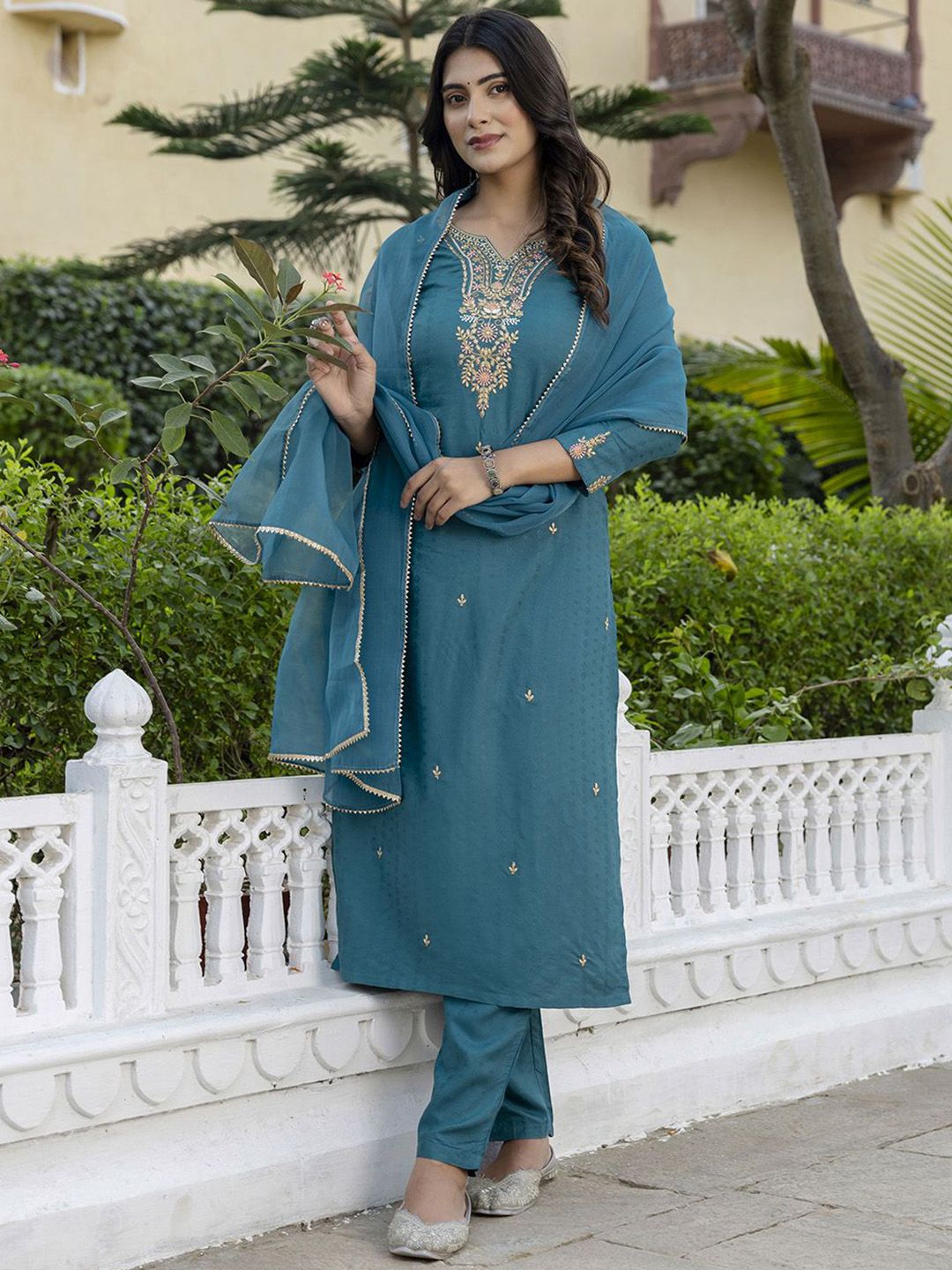 KALINI Women Floral Embroidered Kurta with Trousers & Dupatta