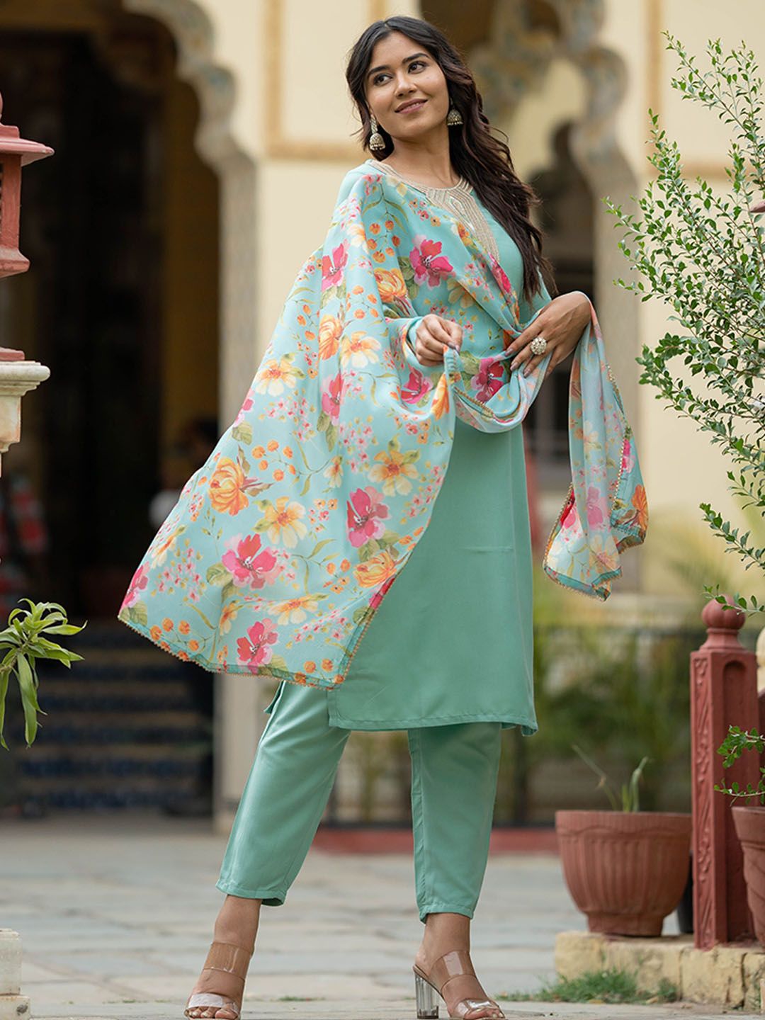 KALINI Women Floral Embroidered Kurta with Trousers & Dupatta