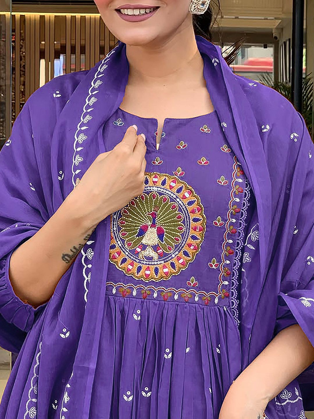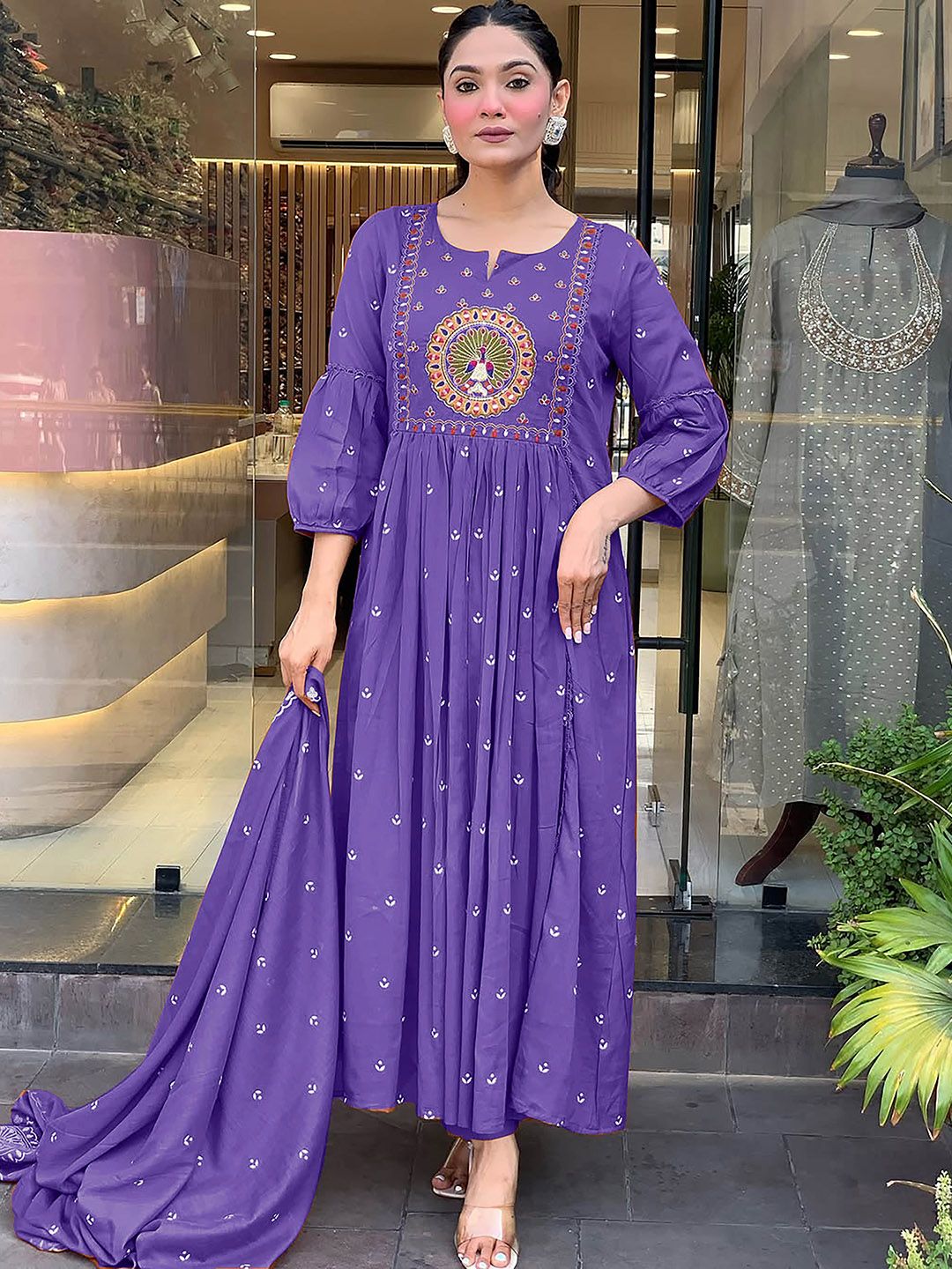 Buy this stylish KALINI Women Floral Embroidered Pleated Thread Work Kurta with Trousers With Dupatta at Marincart Nepal. This product offers great quality and value. Perfect for those looking for the latest trends in fashion. Get yours now at unbeatable prices.
