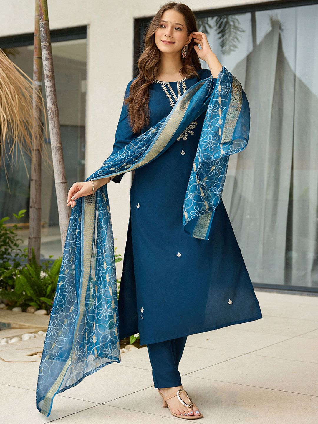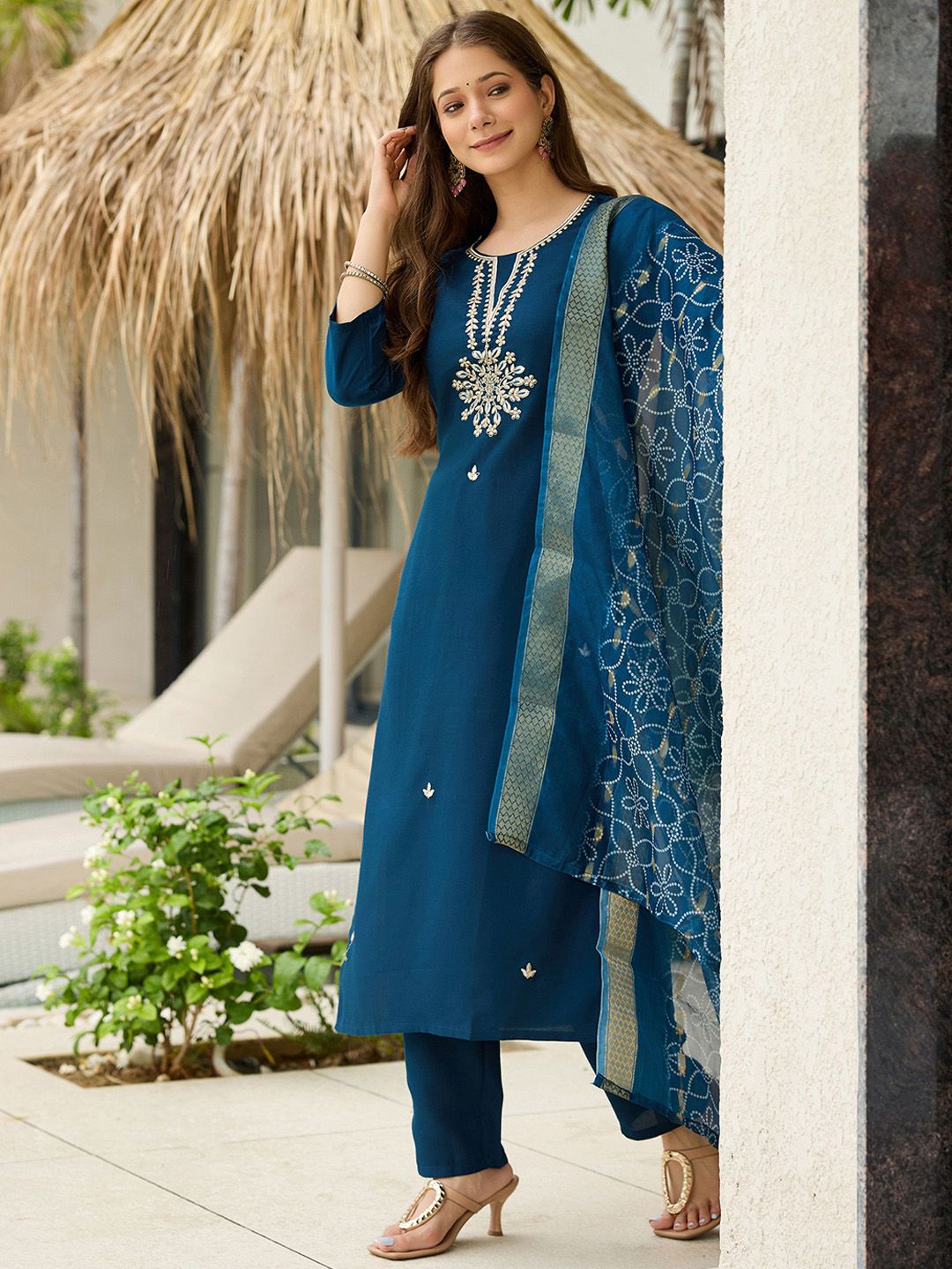 Buy this stylish KALINI Women Floral Embroidered Regular Thread Work Kurta with Trousers & Dupatta at Marincart Nepal. This product offers great quality and value. Perfect for those looking for the latest trends in fashion. Get yours now at unbeatable prices.
