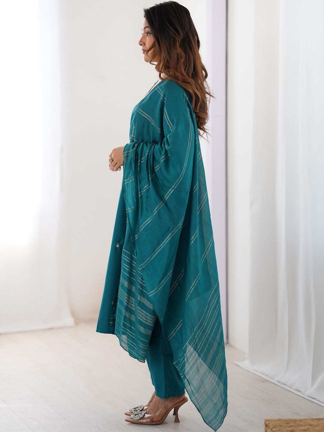 KALINI Women Floral Embroidered Regular Thread Work Kurta with Trousers & With Dupatta