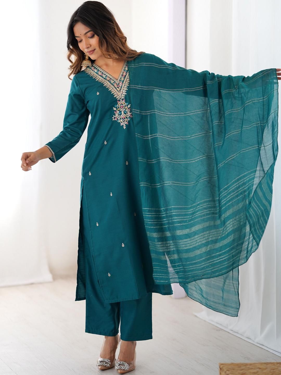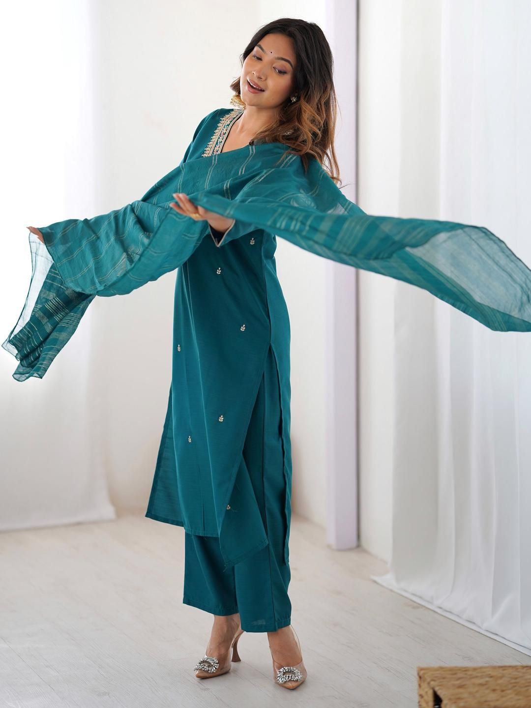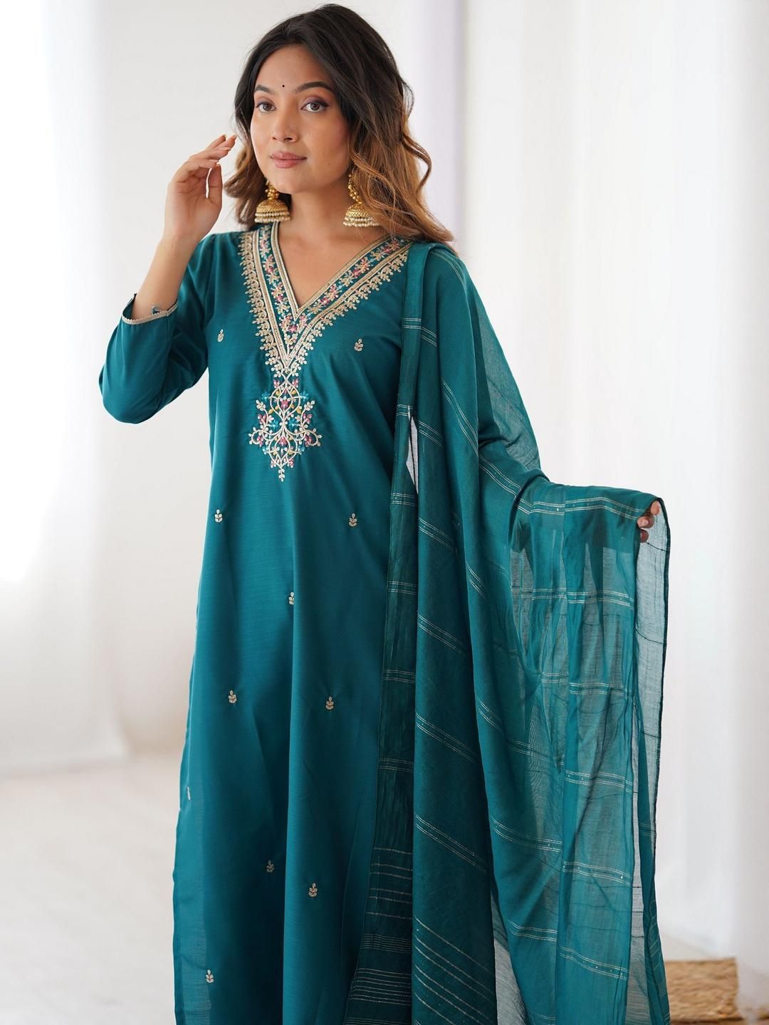 Buy this stylish KALINI Women Floral Embroidered Regular Thread Work Kurta with Trousers & With Dupatta at Marincart Nepal. This product offers great quality and value. Perfect for those looking for the latest trends in fashion. Get yours now at unbeatable prices.