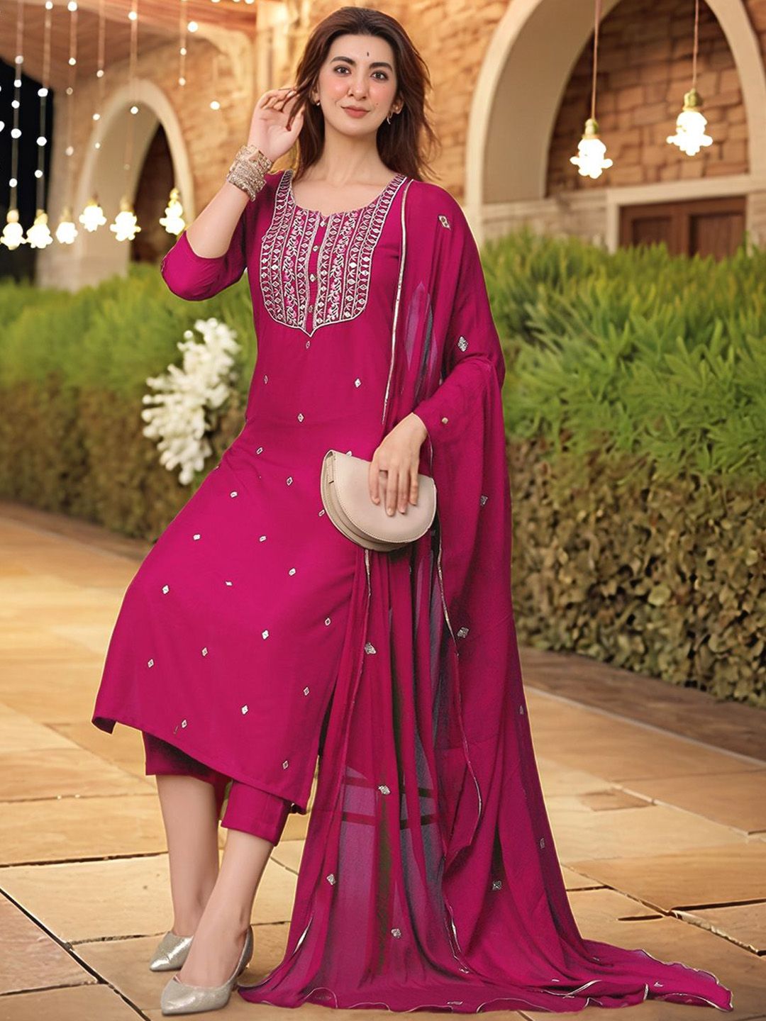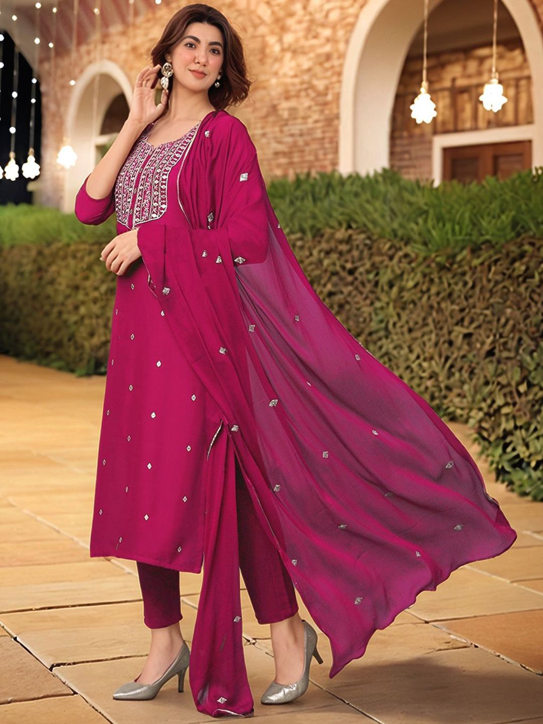KALINI Women Floral Embroidered Regular Thread Work Kurta with Trousers & With Dupatta