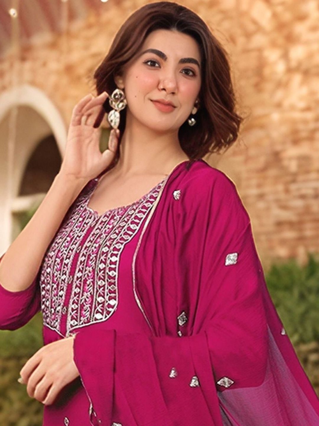 Buy this stylish KALINI Women Floral Embroidered Regular Thread Work Kurta with Trousers & With Dupatta at Marincart Nepal. This product offers great quality and value. Perfect for those looking for the latest trends in fashion. Get yours now at unbeatable prices.