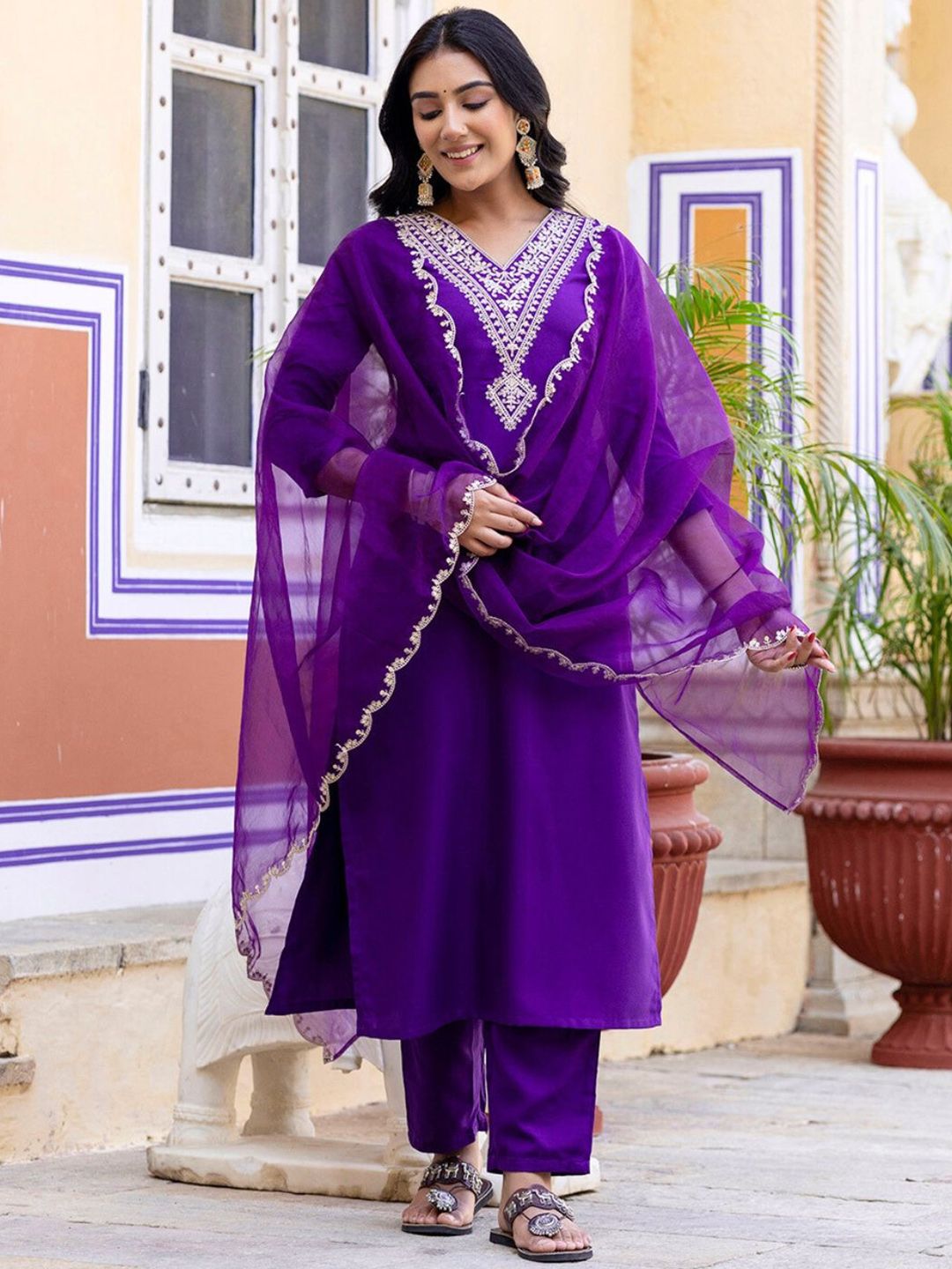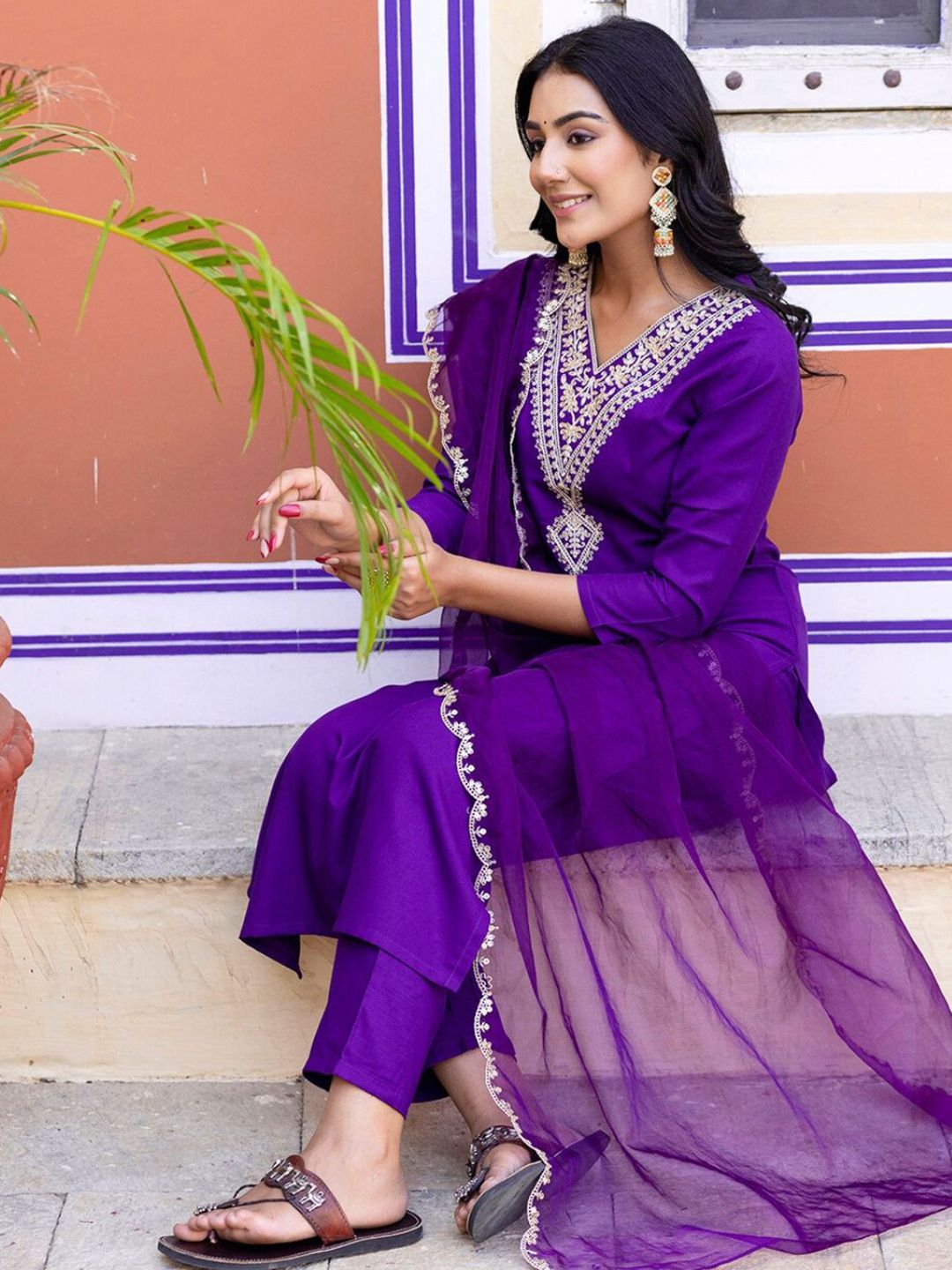 Buy this stylish KALINI Women Floral Embroidered Regular Thread Work Kurta with Trousers & With Dupatta at Marincart Nepal. This product offers great quality and value. Perfect for those looking for the latest trends in fashion. Get yours now at unbeatable prices.