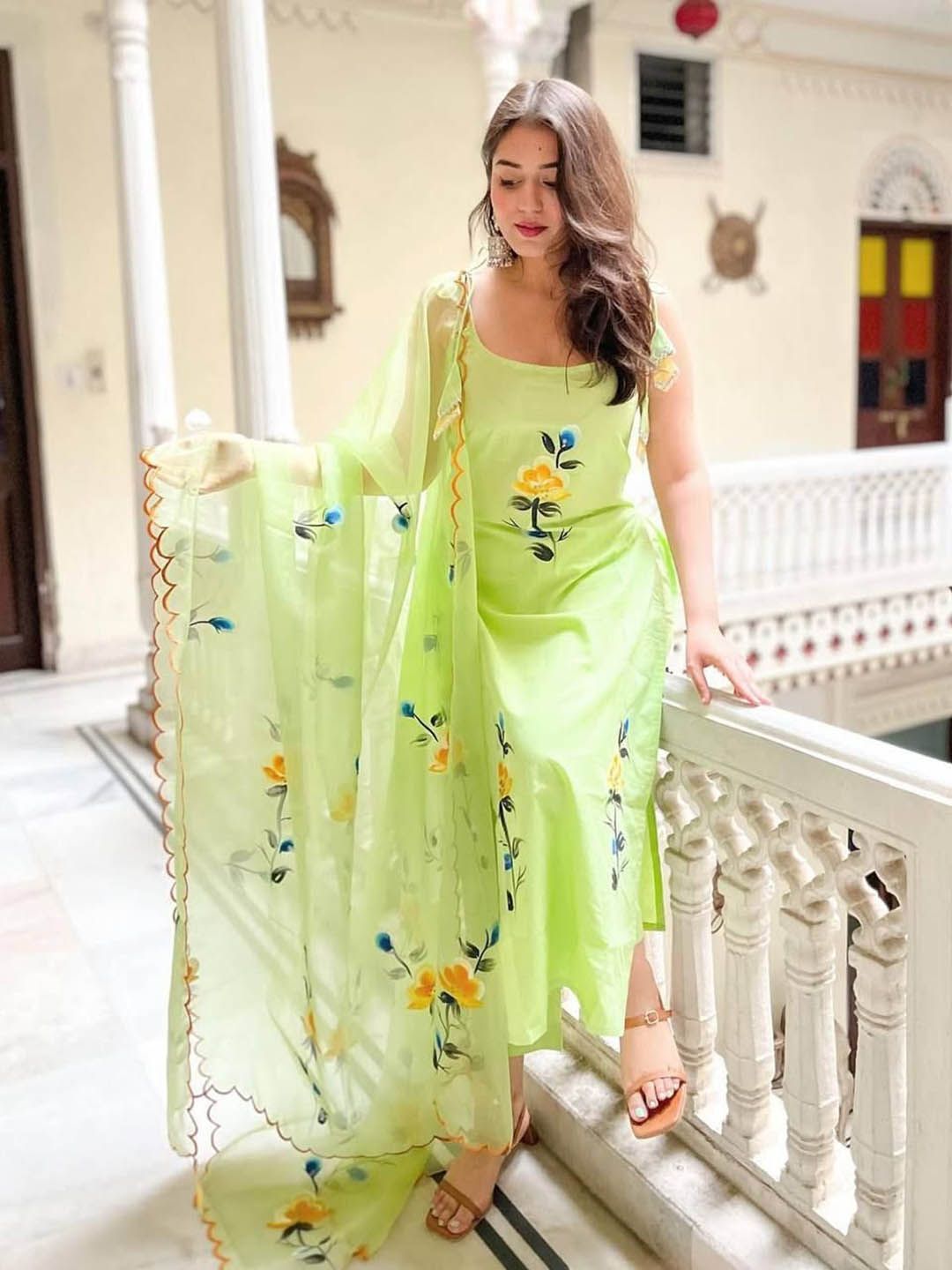 Buy this stylish KALINI Women Floral Embroidered Thread Work Kurta with Trousers & Dupatta at Marincart Nepal. This product offers great quality and value. Perfect for those looking for the latest trends in fashion. Get yours now at unbeatable prices.