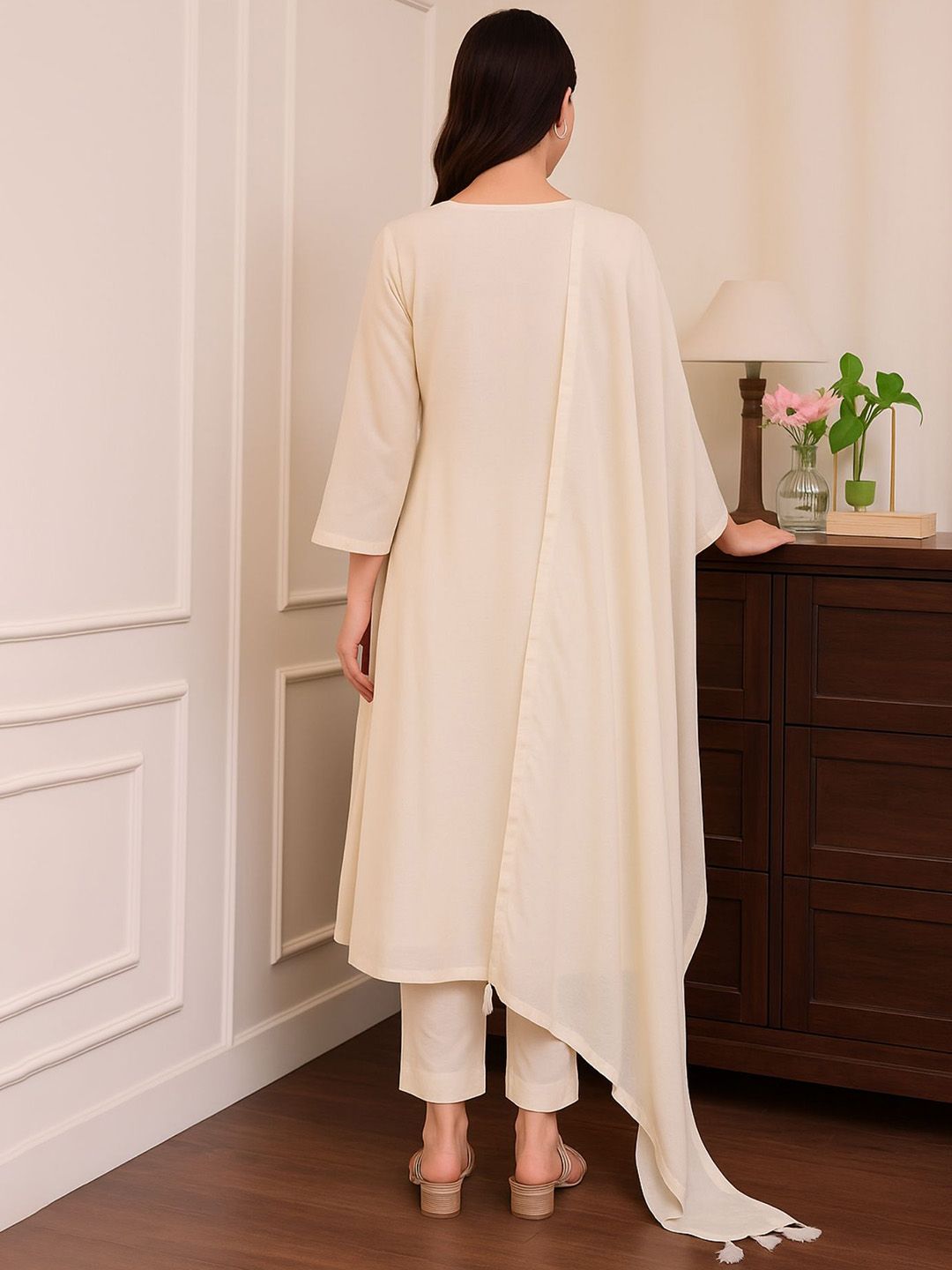 KALINI Women Floral Embroidered Thread Work Pure Cotton Kurta with Trousers & Dupatta