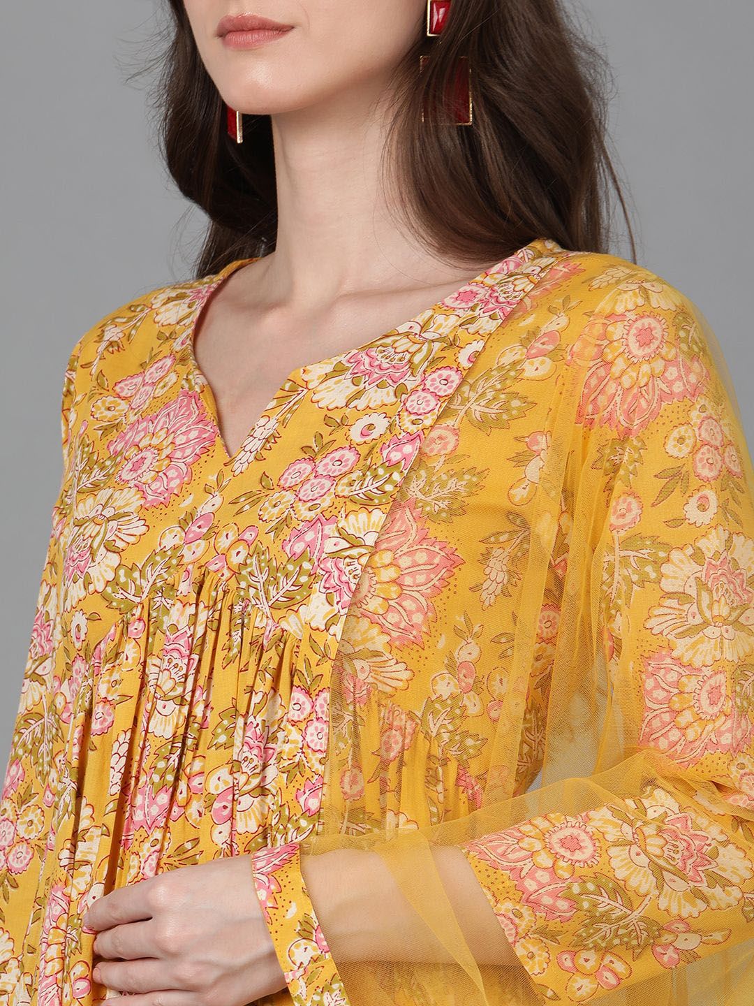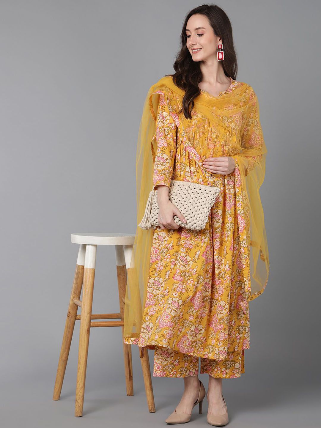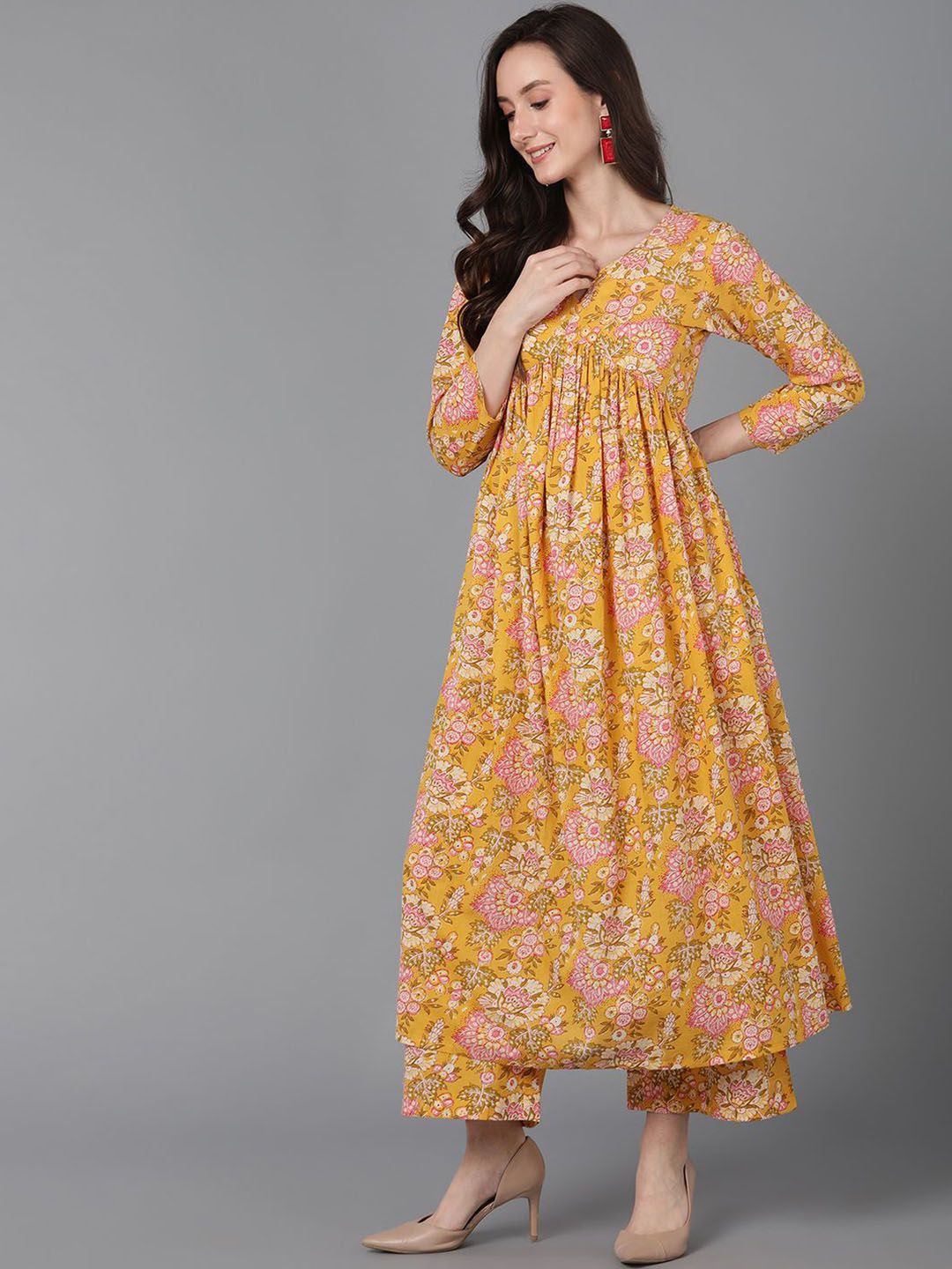 KALINI Women Floral Printed Anarkali Kurta with Palazzo & Dupatta