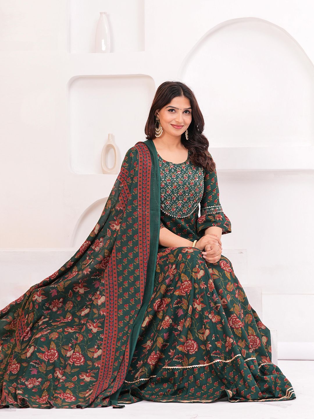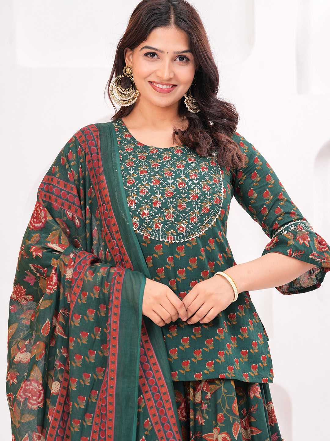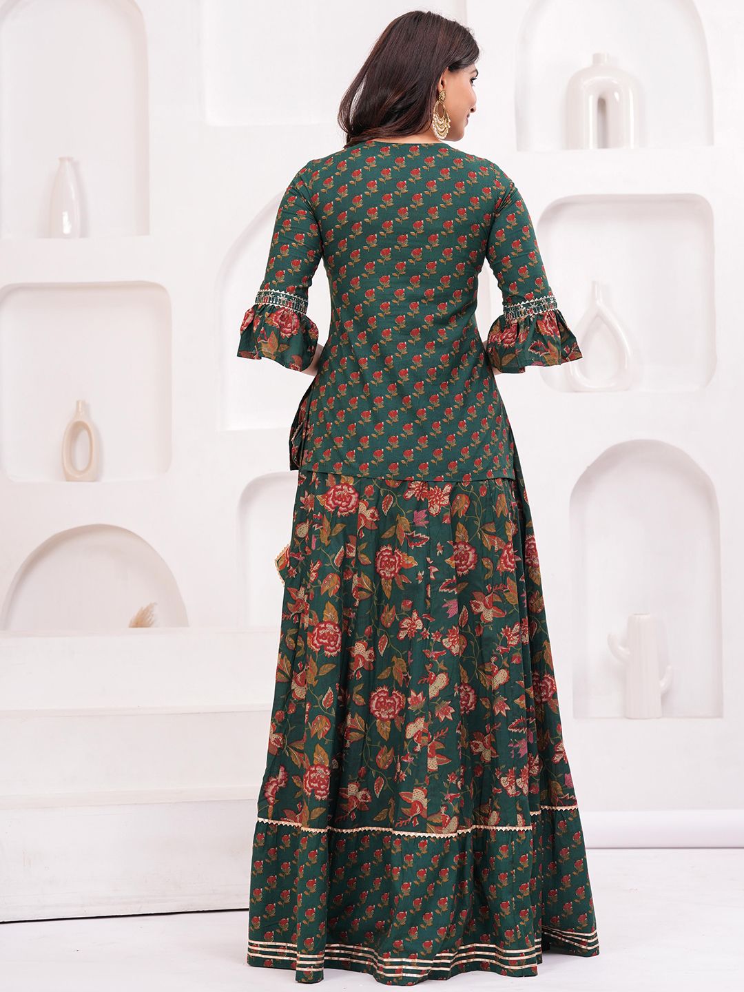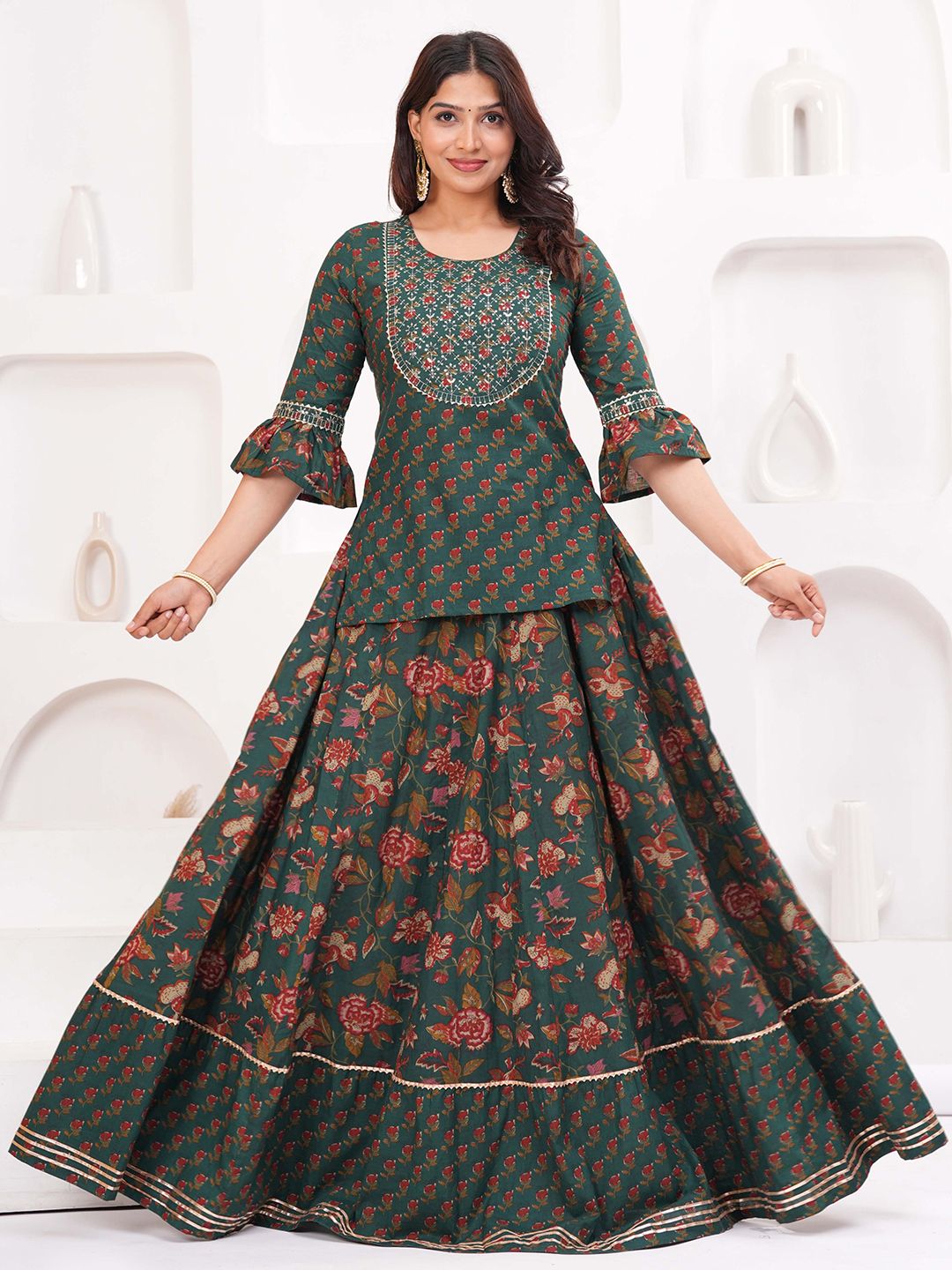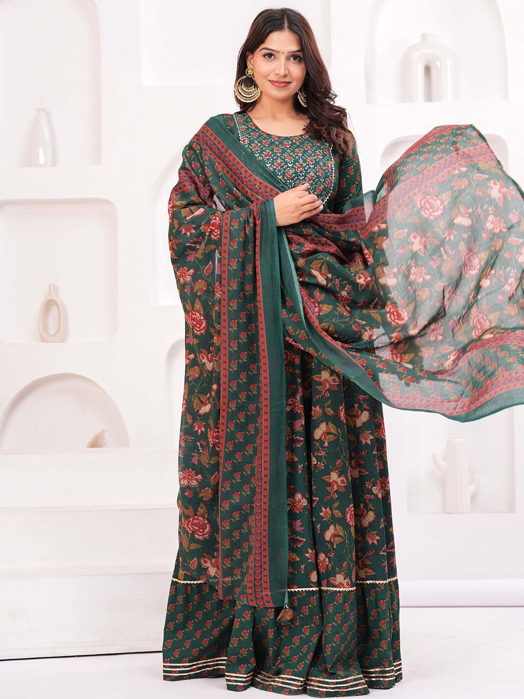 KALINI Women Floral Printed Cotton A-Line Kurti with Skirt & Dupatta