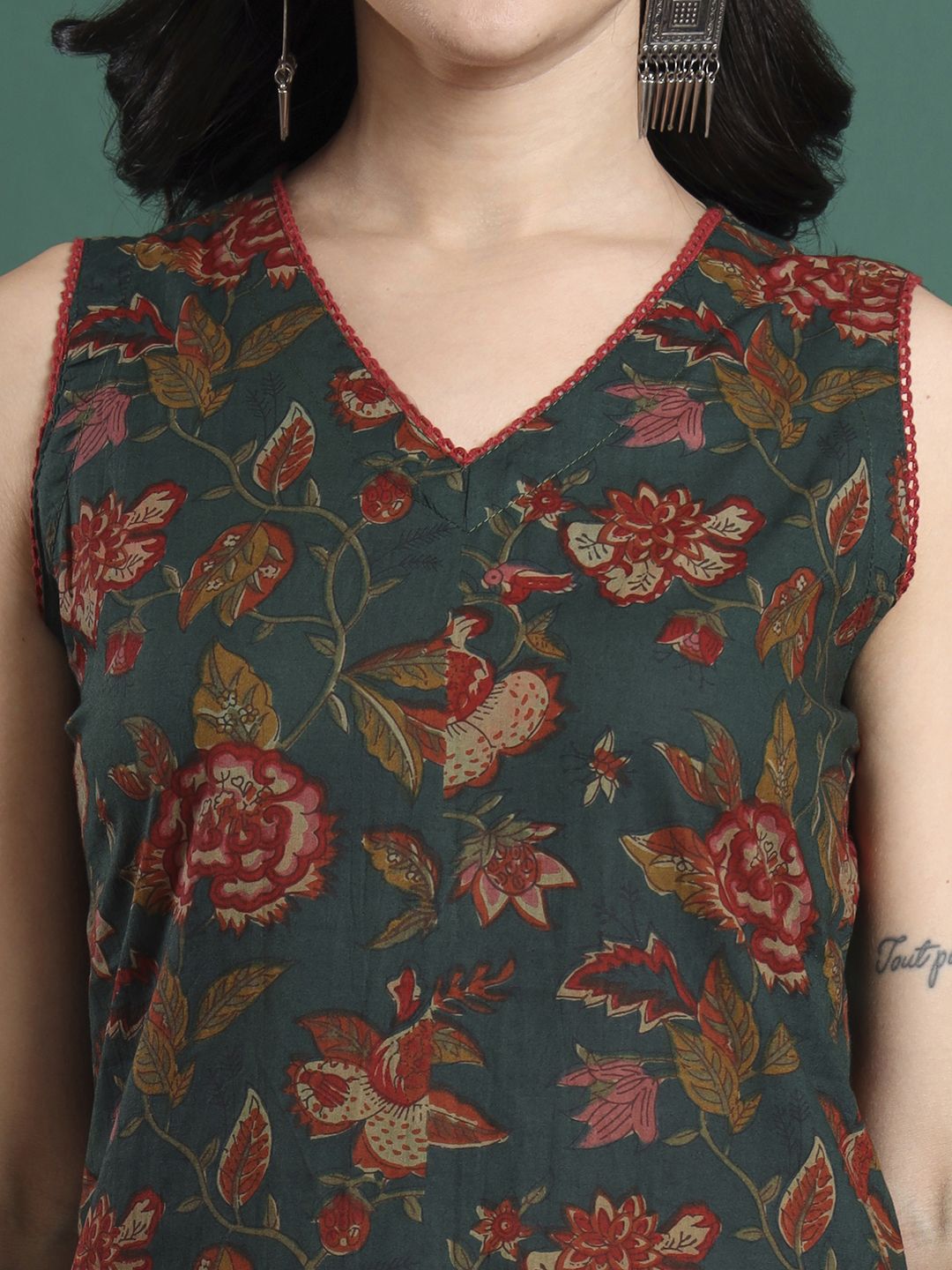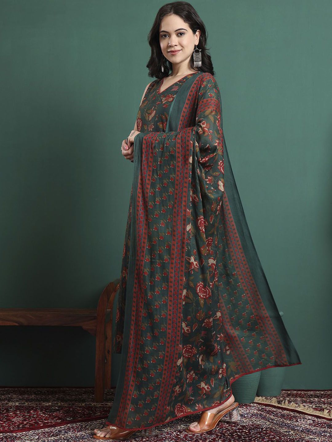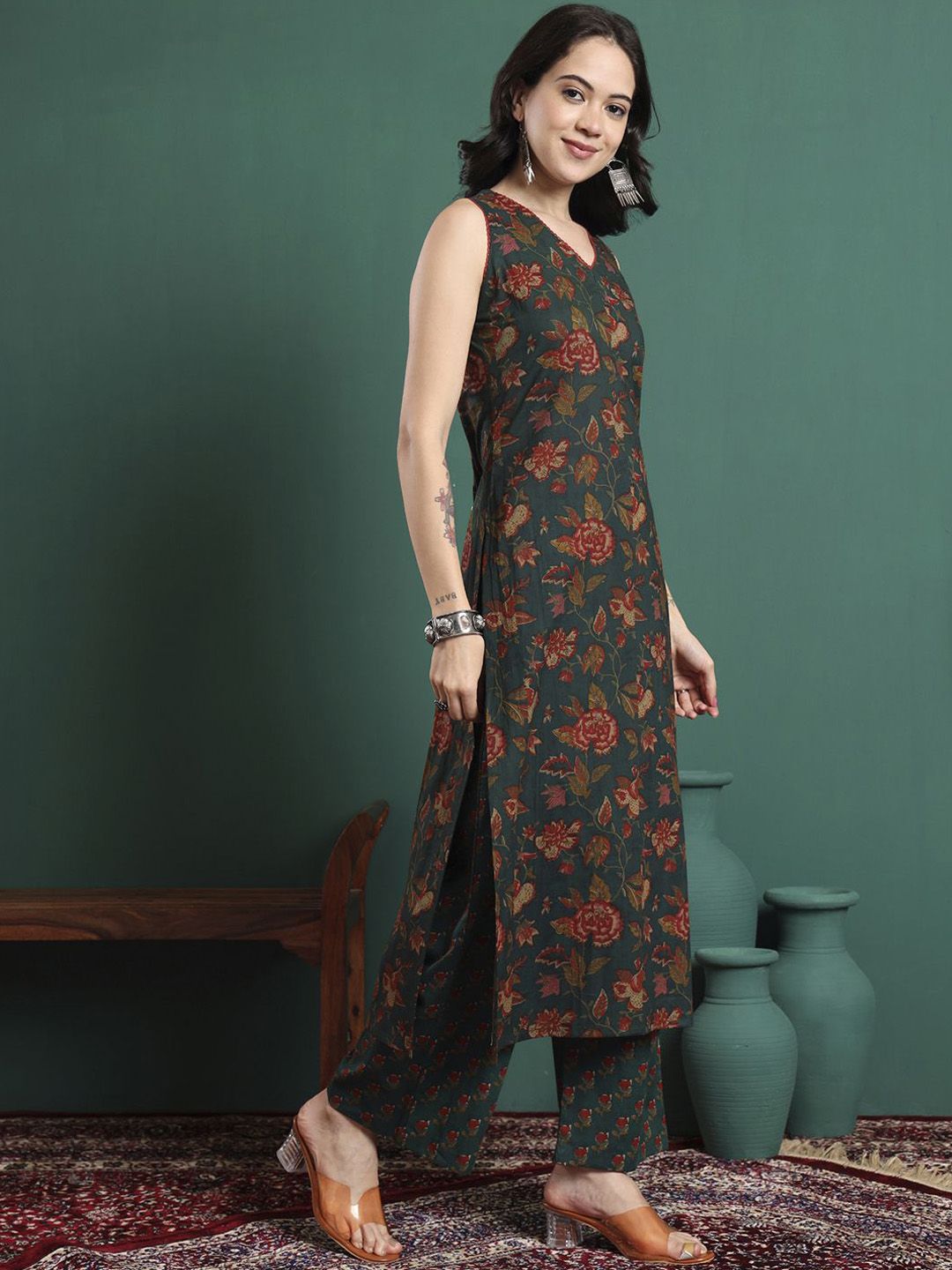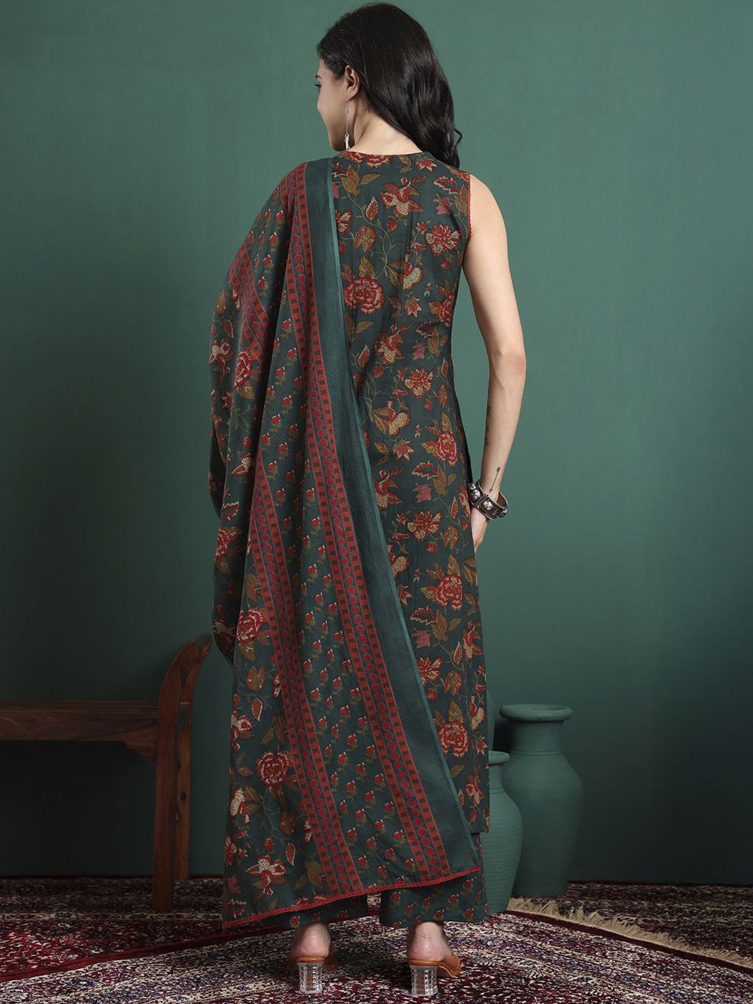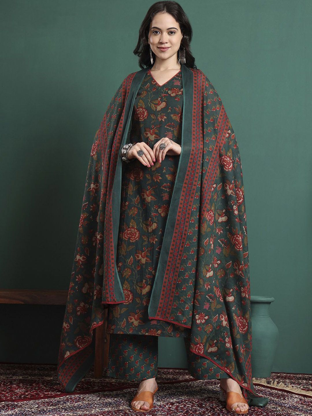 KALINI Women Floral Printed Cotton Kurta with Trousers & Dupatta