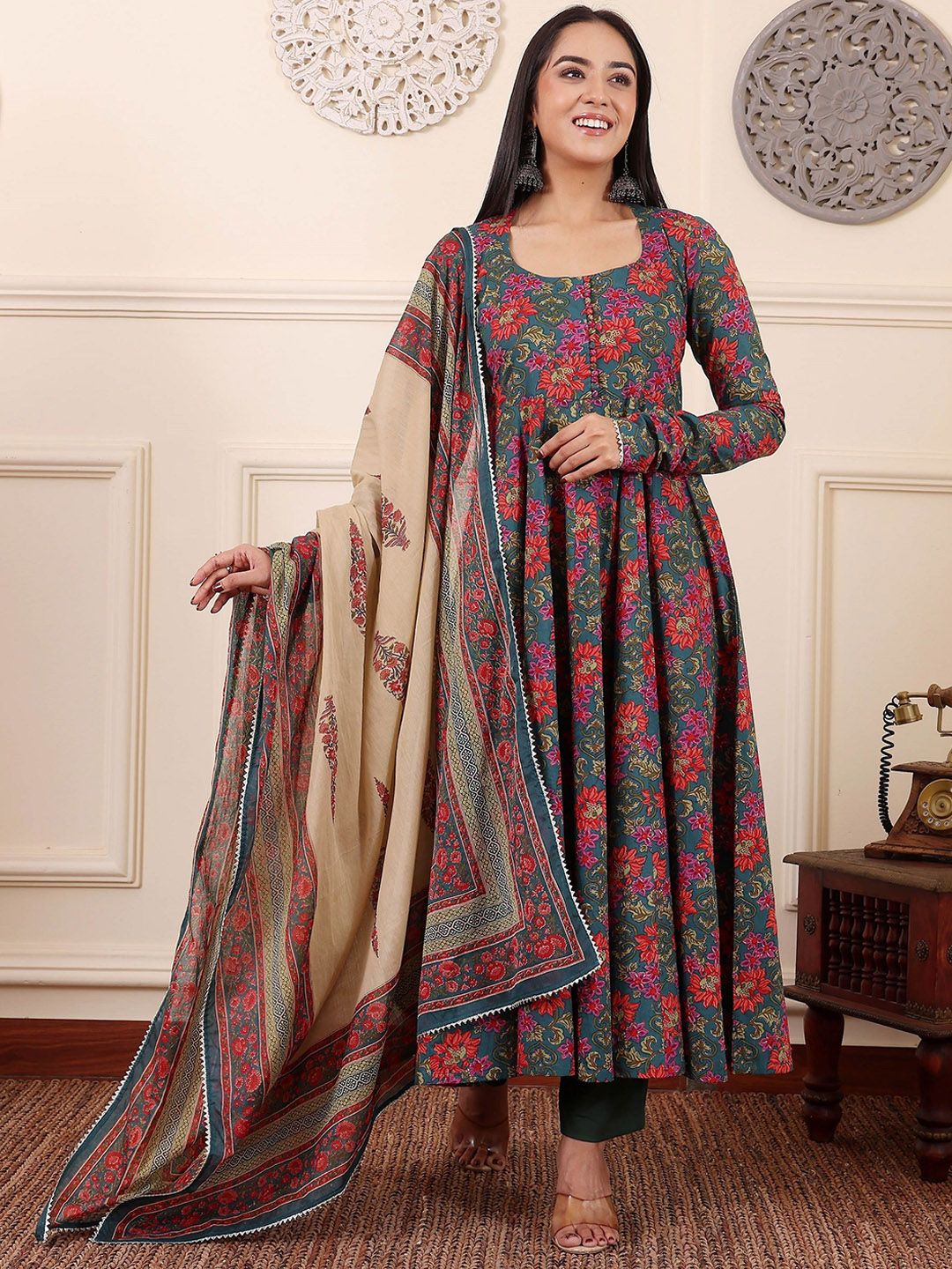 KALINI Women Floral Printed Kurta with Churidar & Dupatta