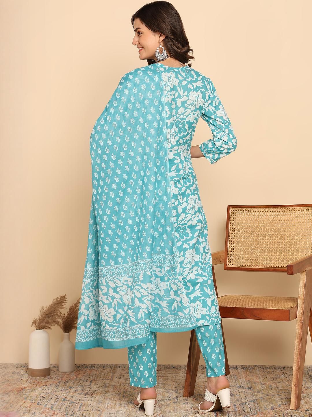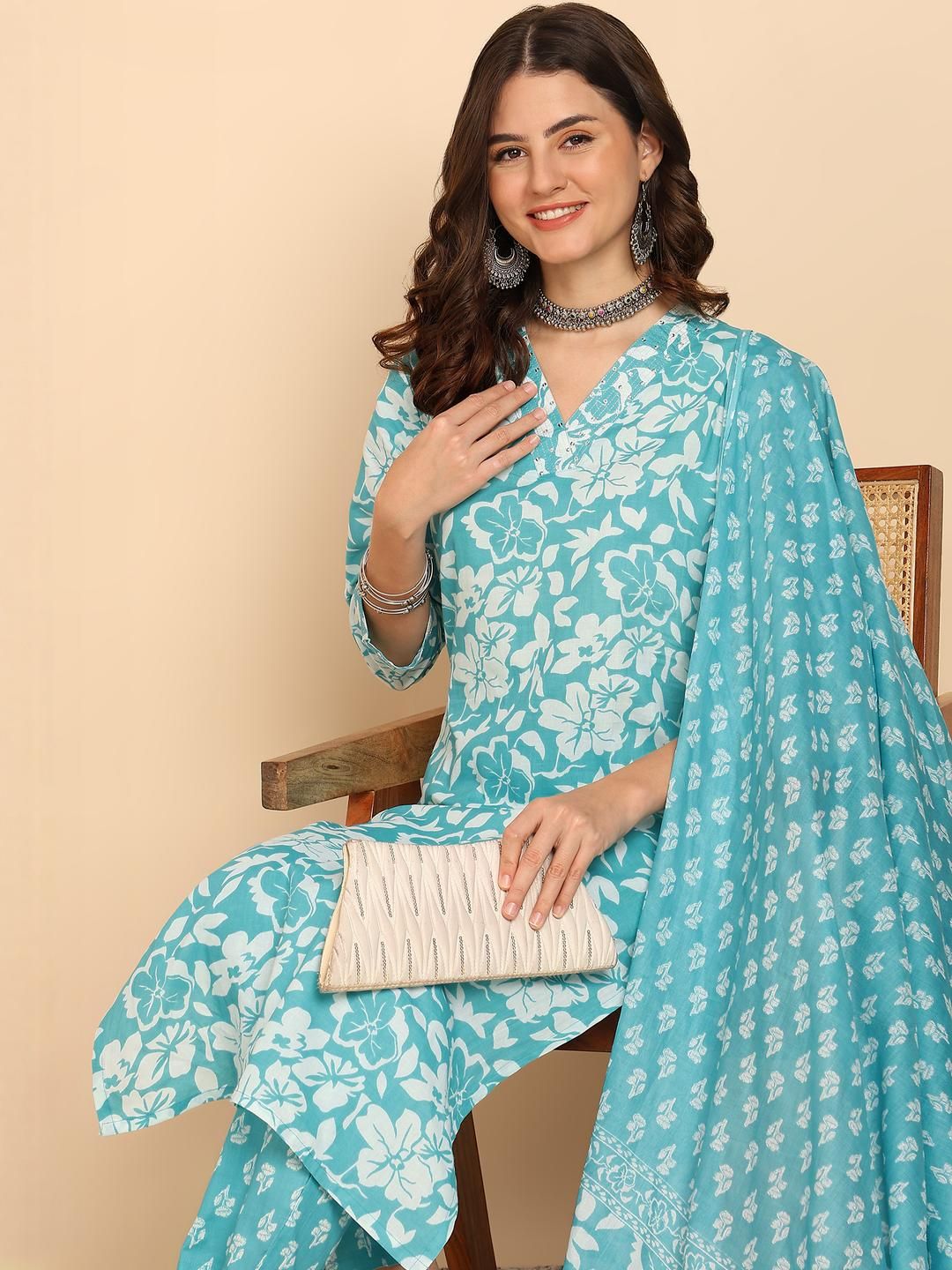 KALINI Women Floral Printed Kurta with Palazzos & With Dupatta