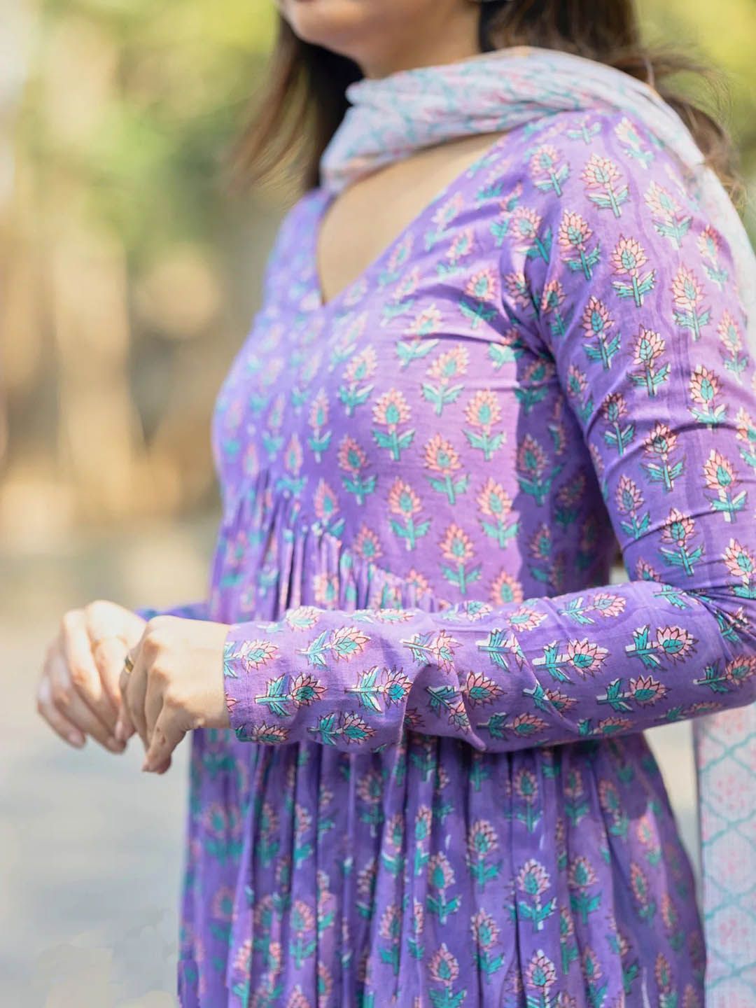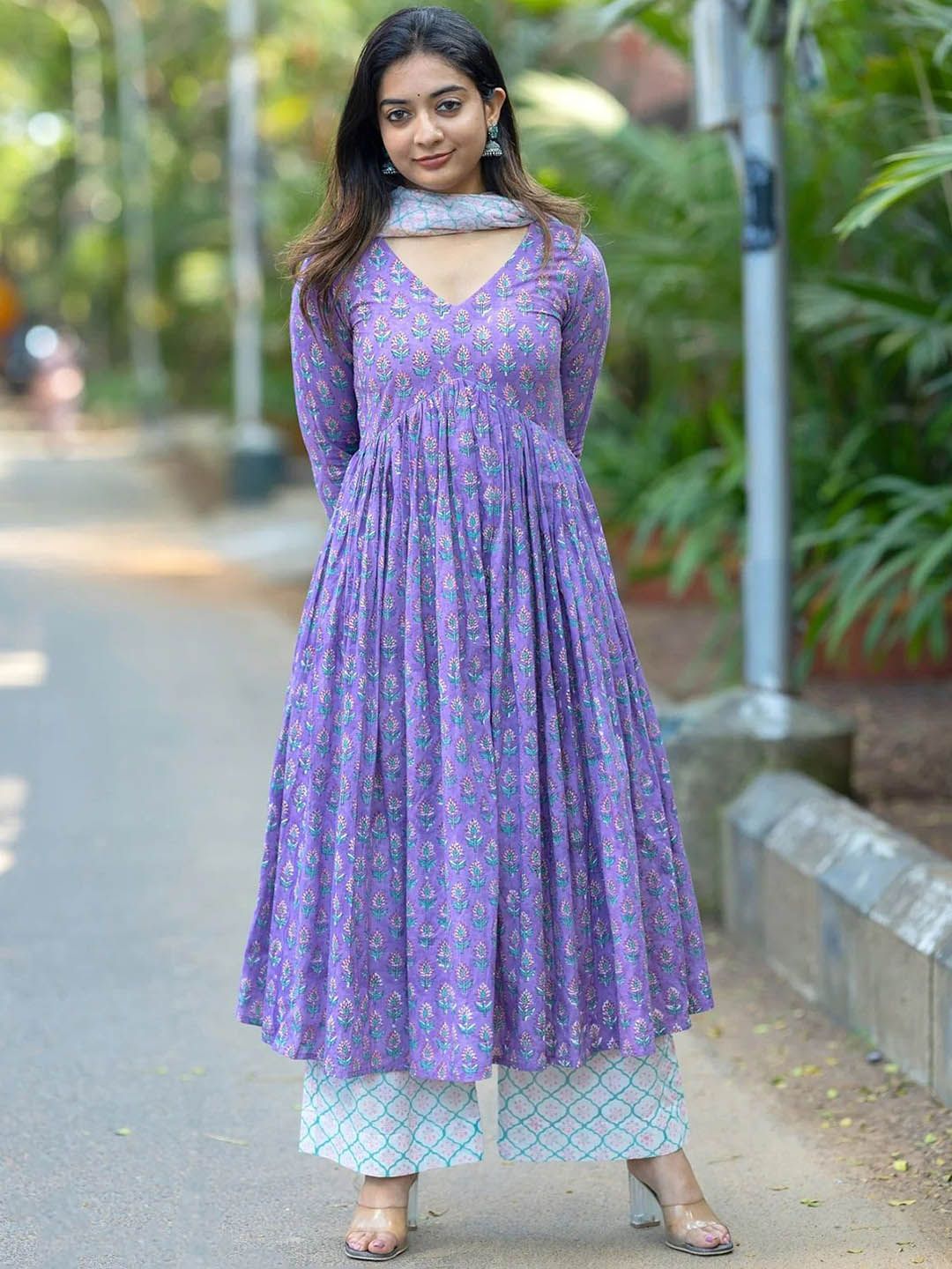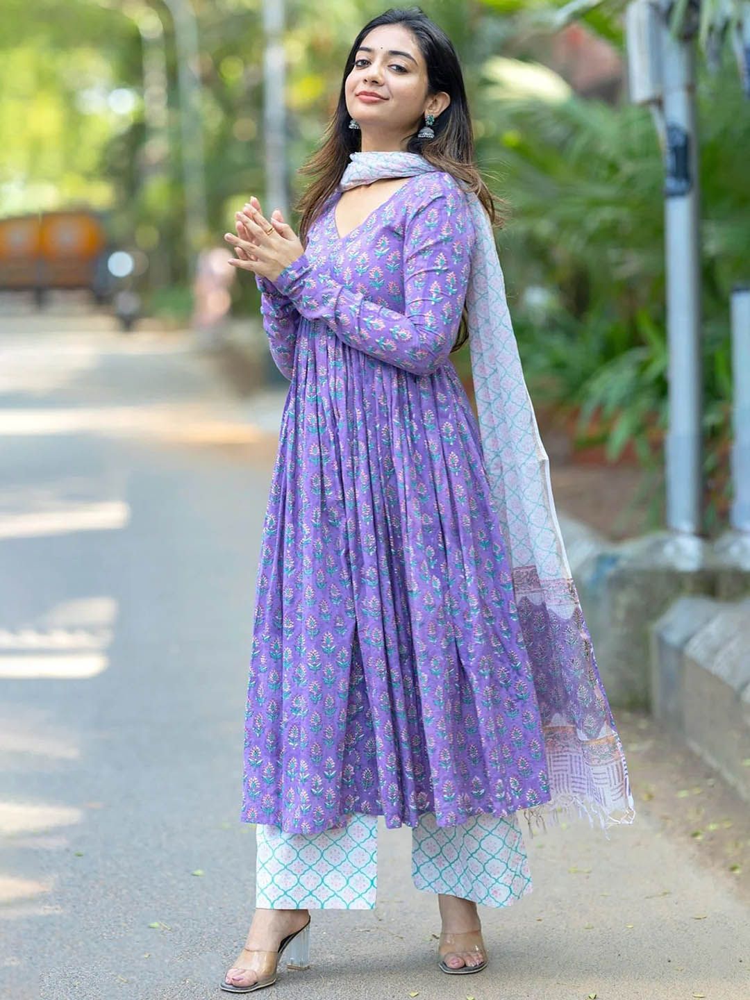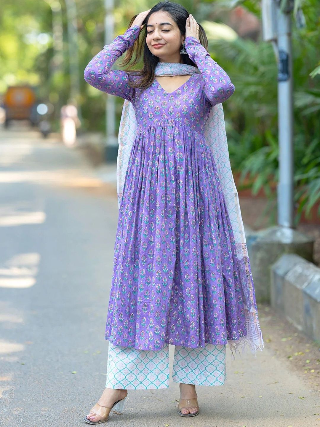 KALINI Women Floral Printed Pleated Kurta With Trousers & Dupatta