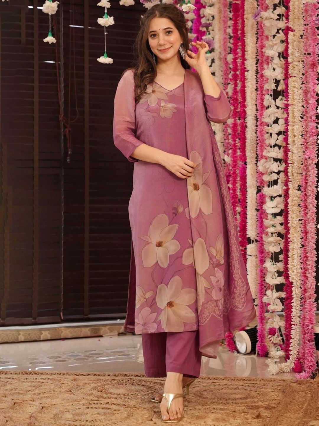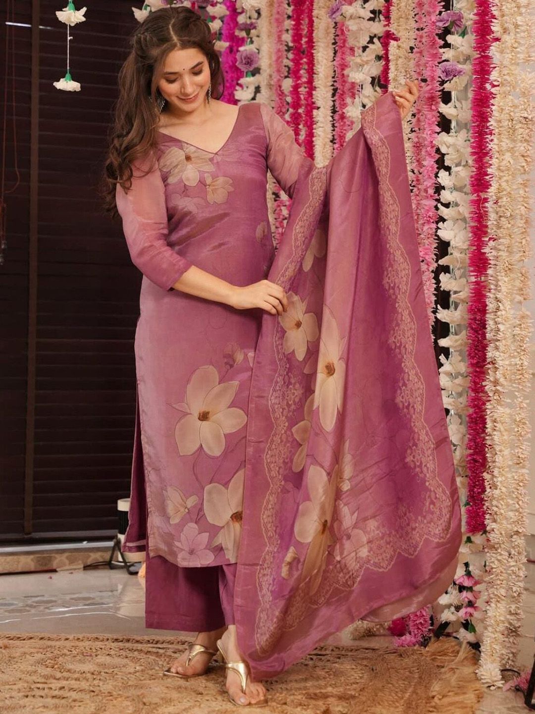 KALINI Women Floral Printed Regular Kurta & Trouser With Dupatta