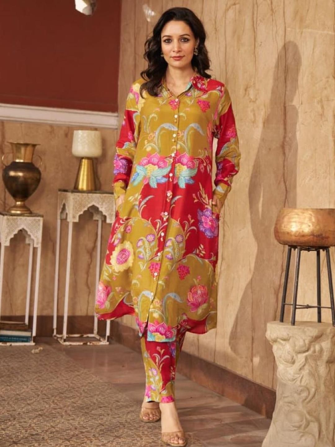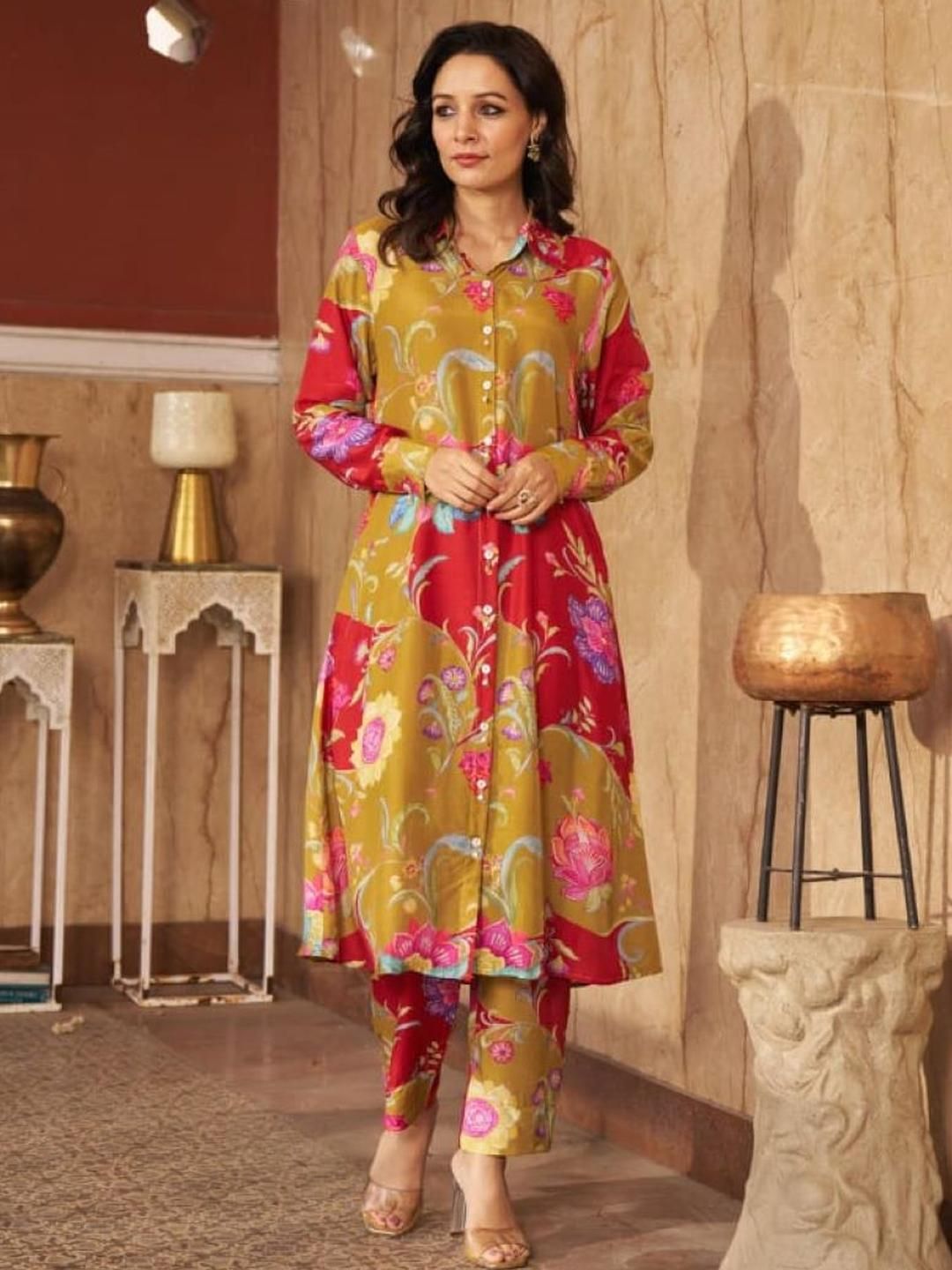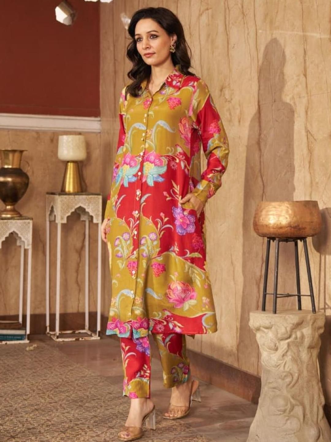 KALINI Women Floral Printed Regular Kurta with Trousers