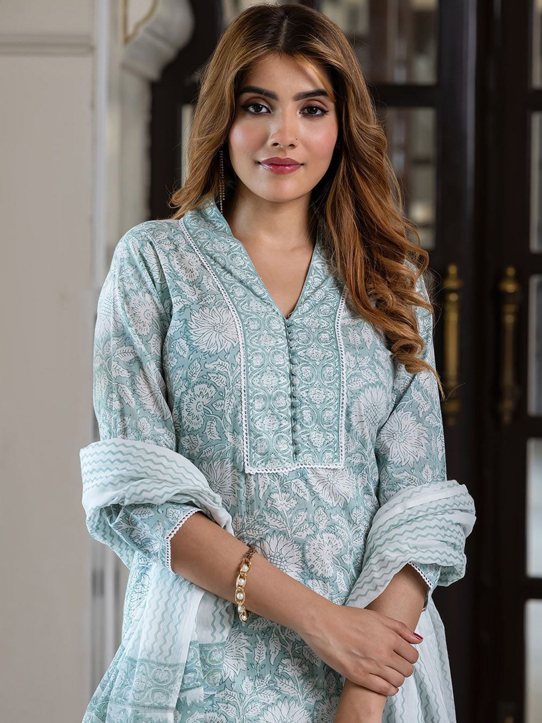 Buy this stylish KALINI Women Floral Printed Regular Pure Cotton Kurta with Trousers & Dupatta at Marincart Nepal. This product offers great quality and value. Perfect for those looking for the latest trends in fashion. Get yours now at unbeatable prices.