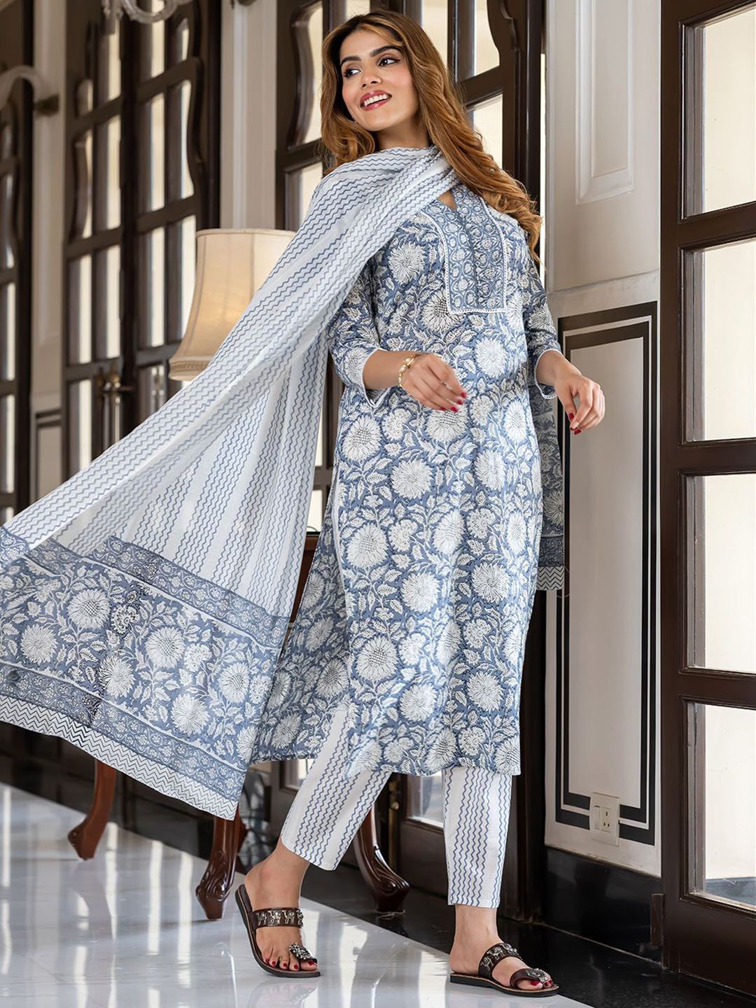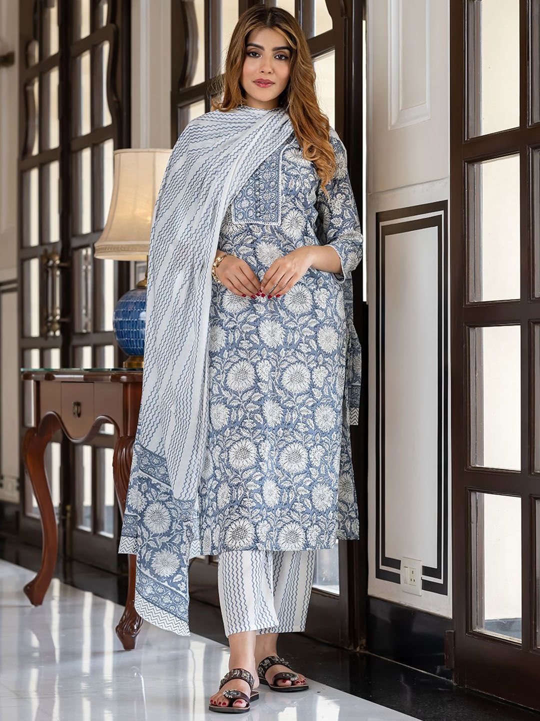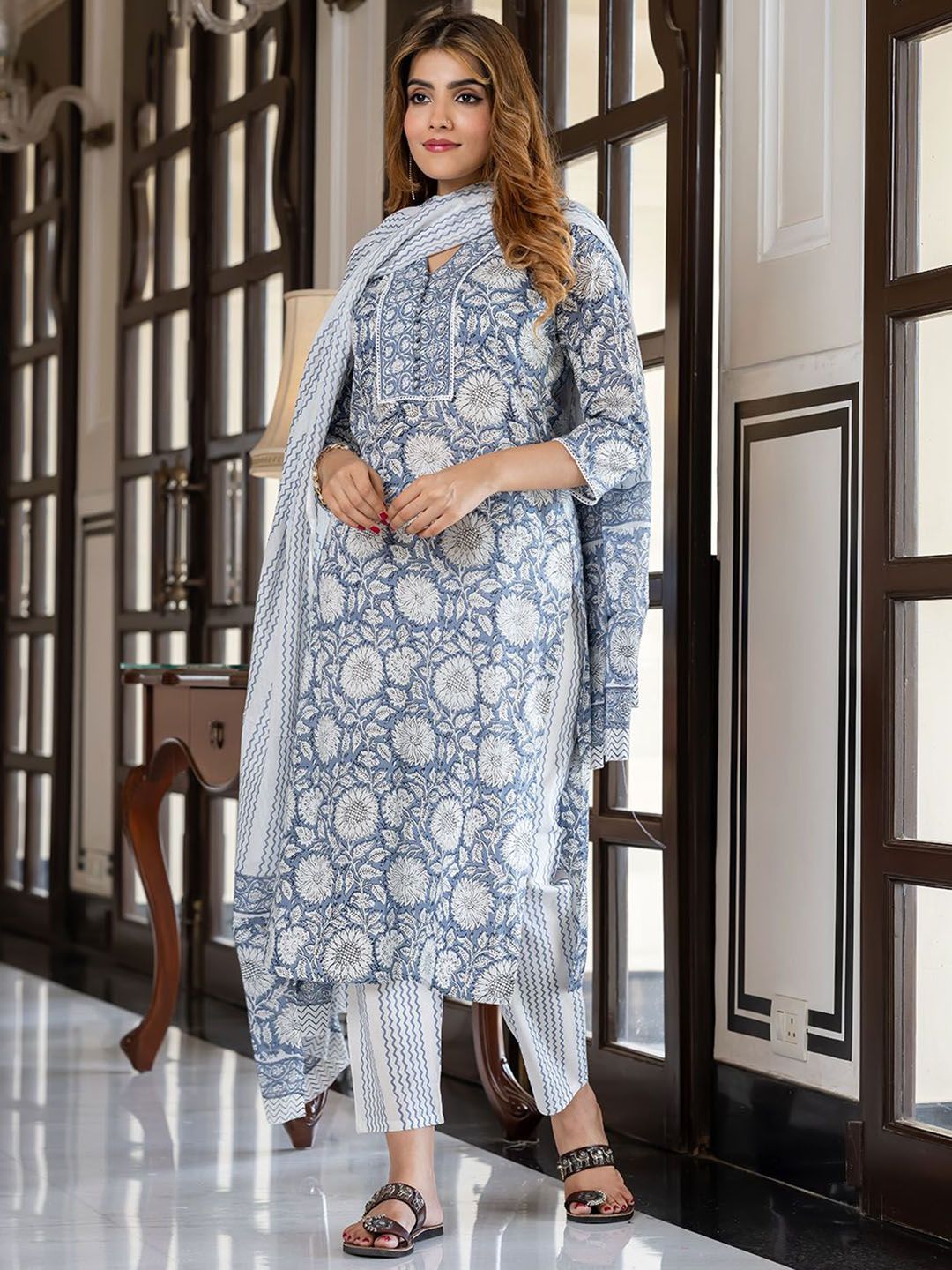 Buy this stylish KALINI Women Floral Printed Regular Pure Cotton Kurta with Trousers & With Dupatta at Marincart Nepal. This product offers great quality and value. Perfect for those looking for the latest trends in fashion. Get yours now at unbeatable prices.