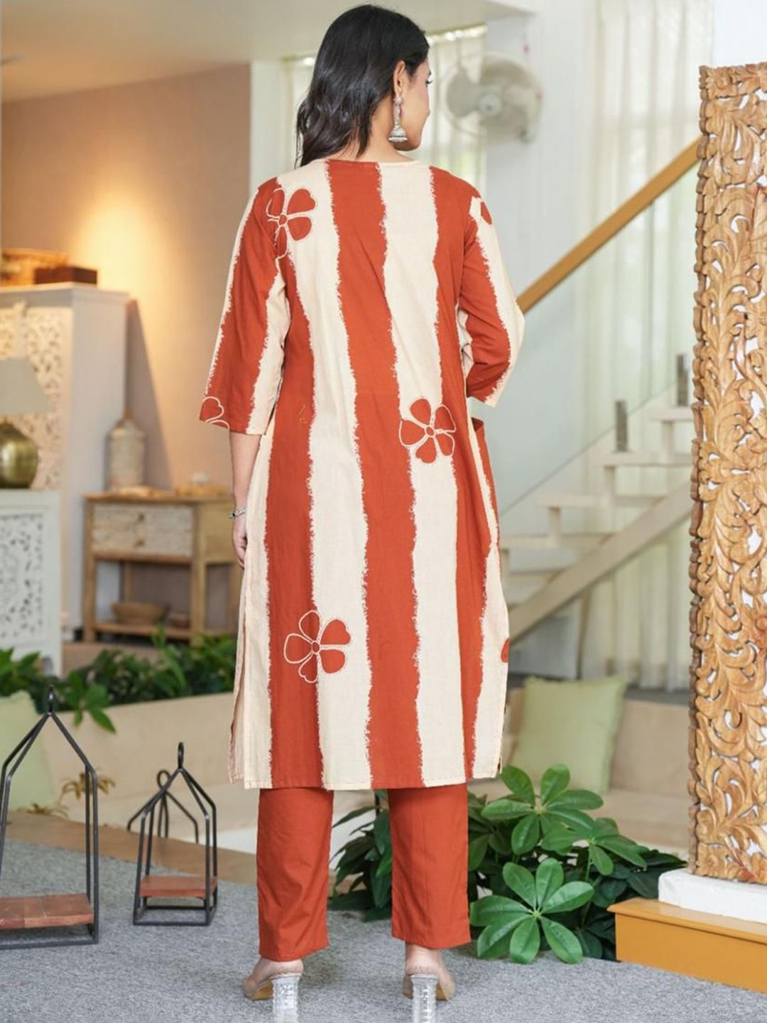 KALINI Women Floral Printed Regular Pure Cotton Kurti with Trousers & With Dupatta