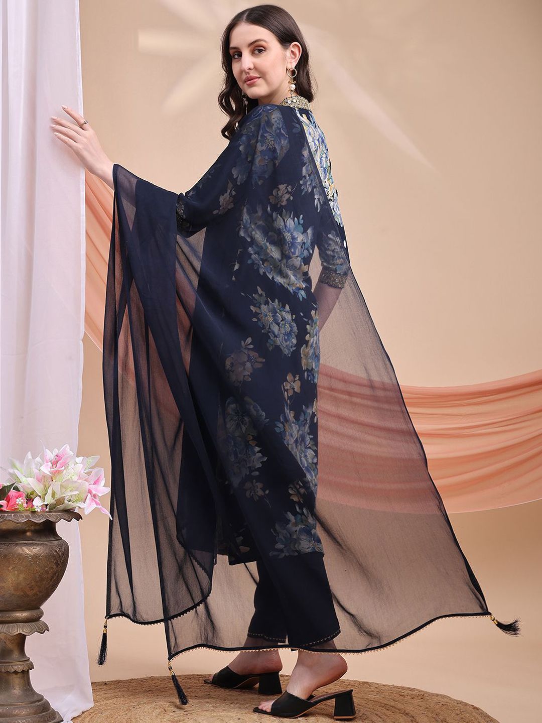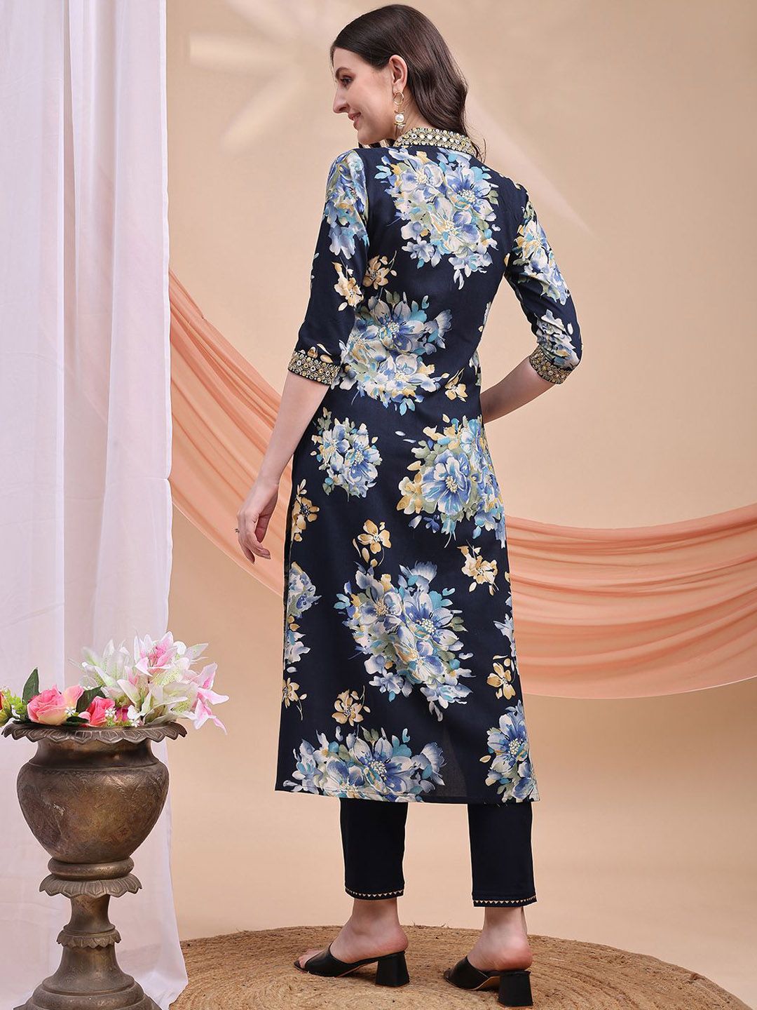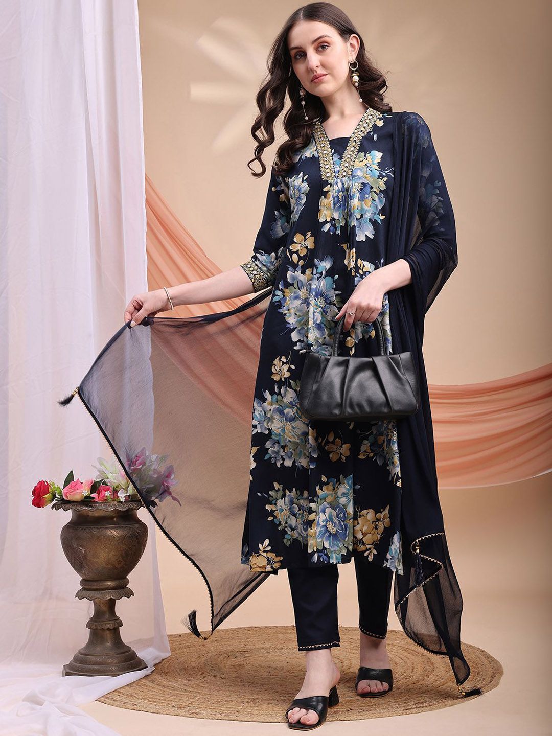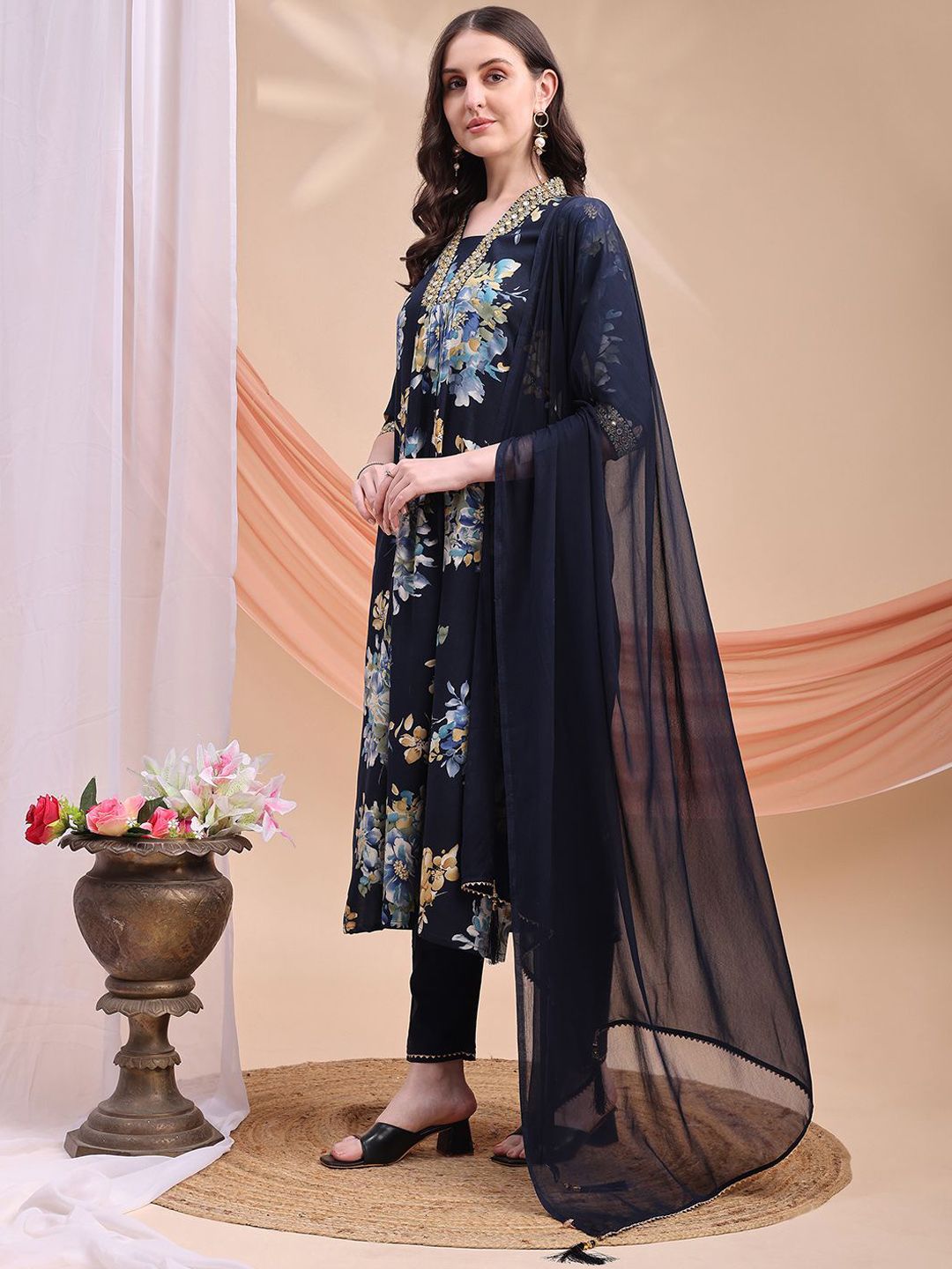 KALINI Women Floral Printed Regular Thread Work Kurta with Trousers & With Dupatta