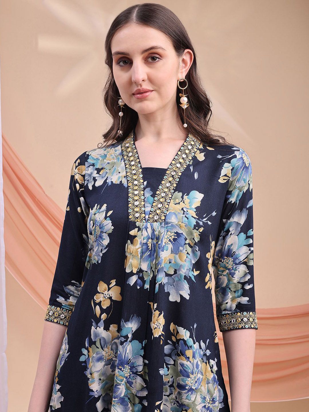 Buy this stylish KALINI Women Floral Printed Regular Thread Work Kurta with Trousers & With Dupatta at Marincart Nepal. This product offers great quality and value. Perfect for those looking for the latest trends in fashion. Get yours now at unbeatable prices.