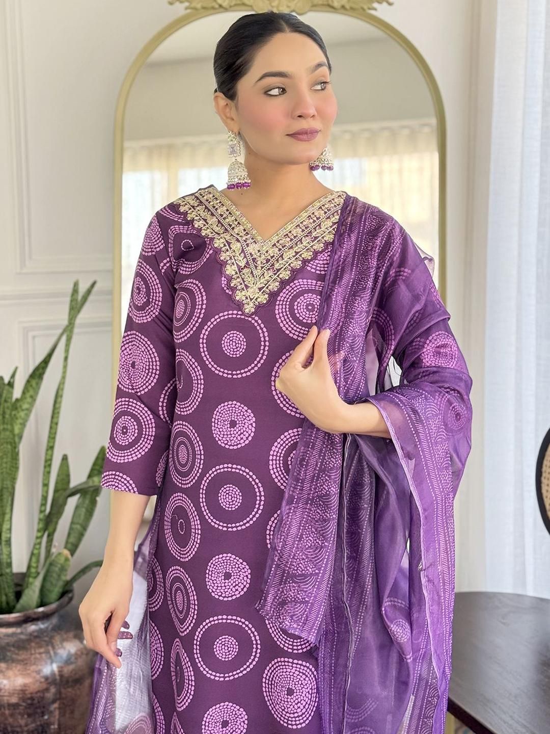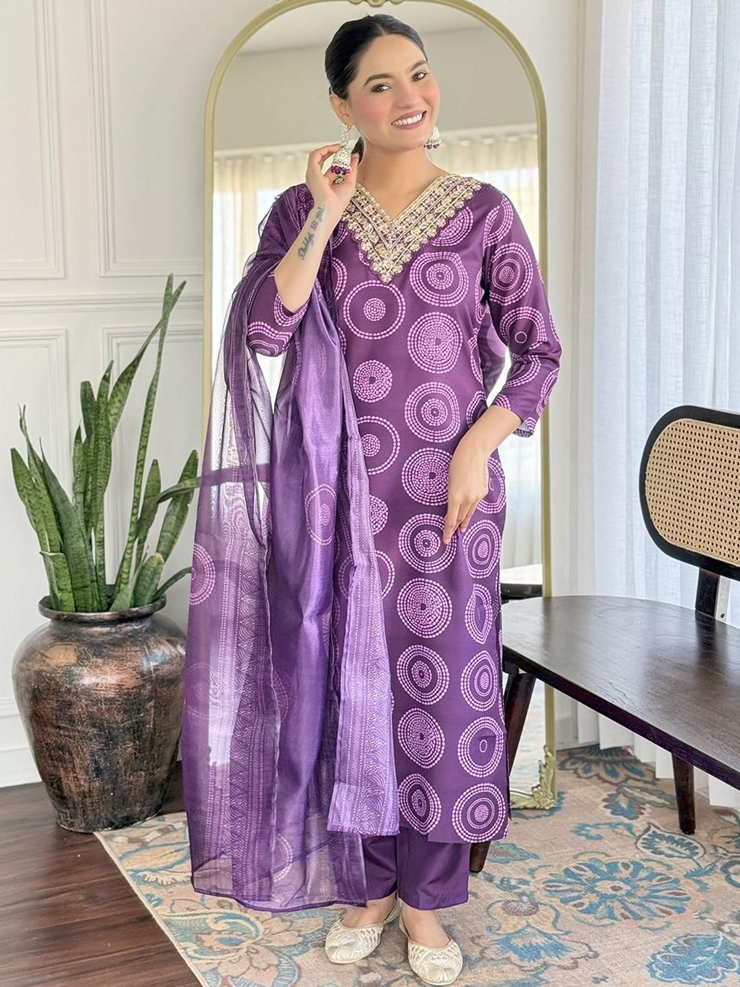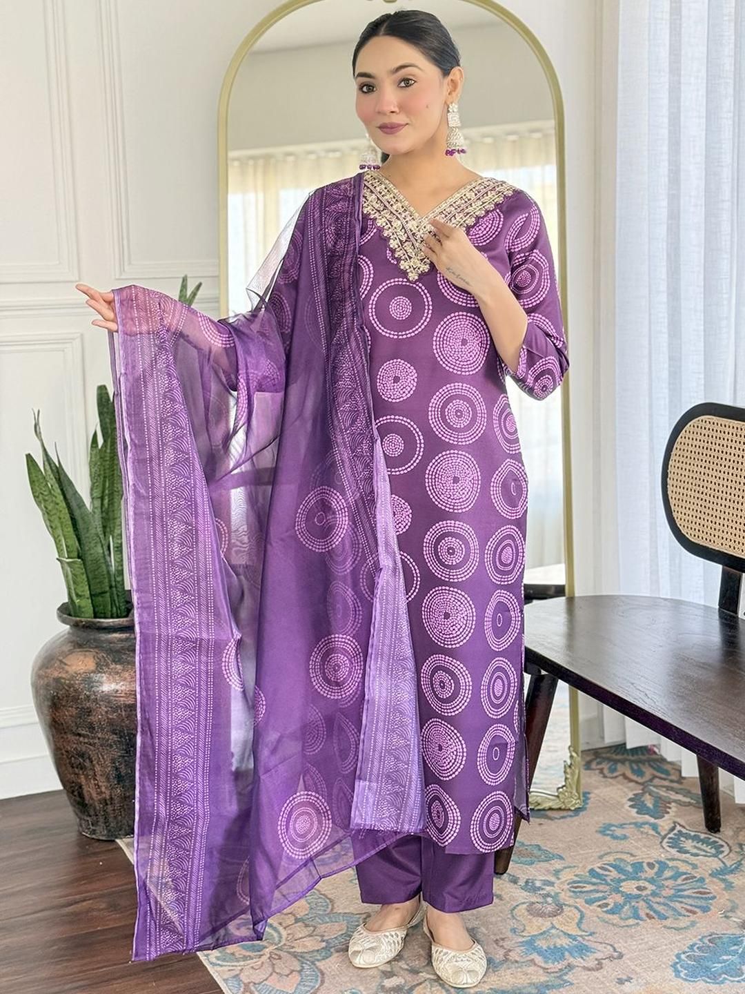KALINI Women Geometric Printed Kurta with Trousers & Dupatta