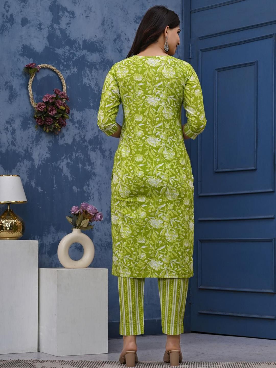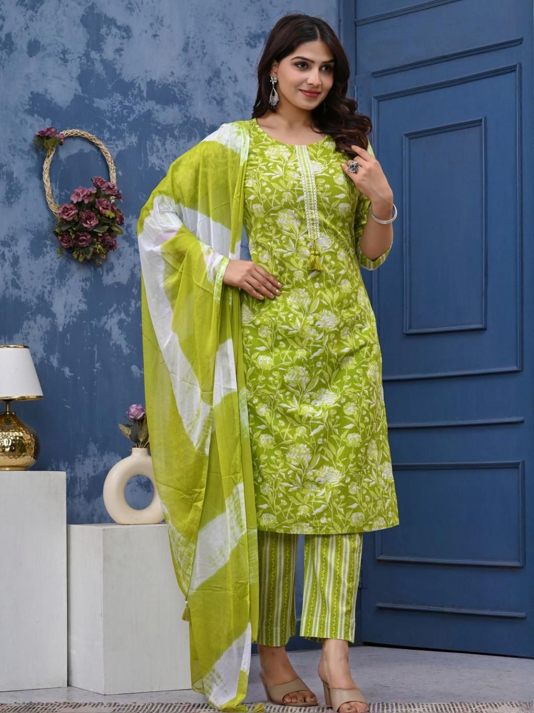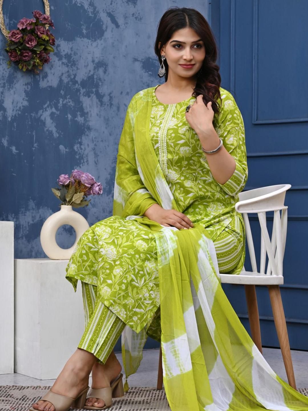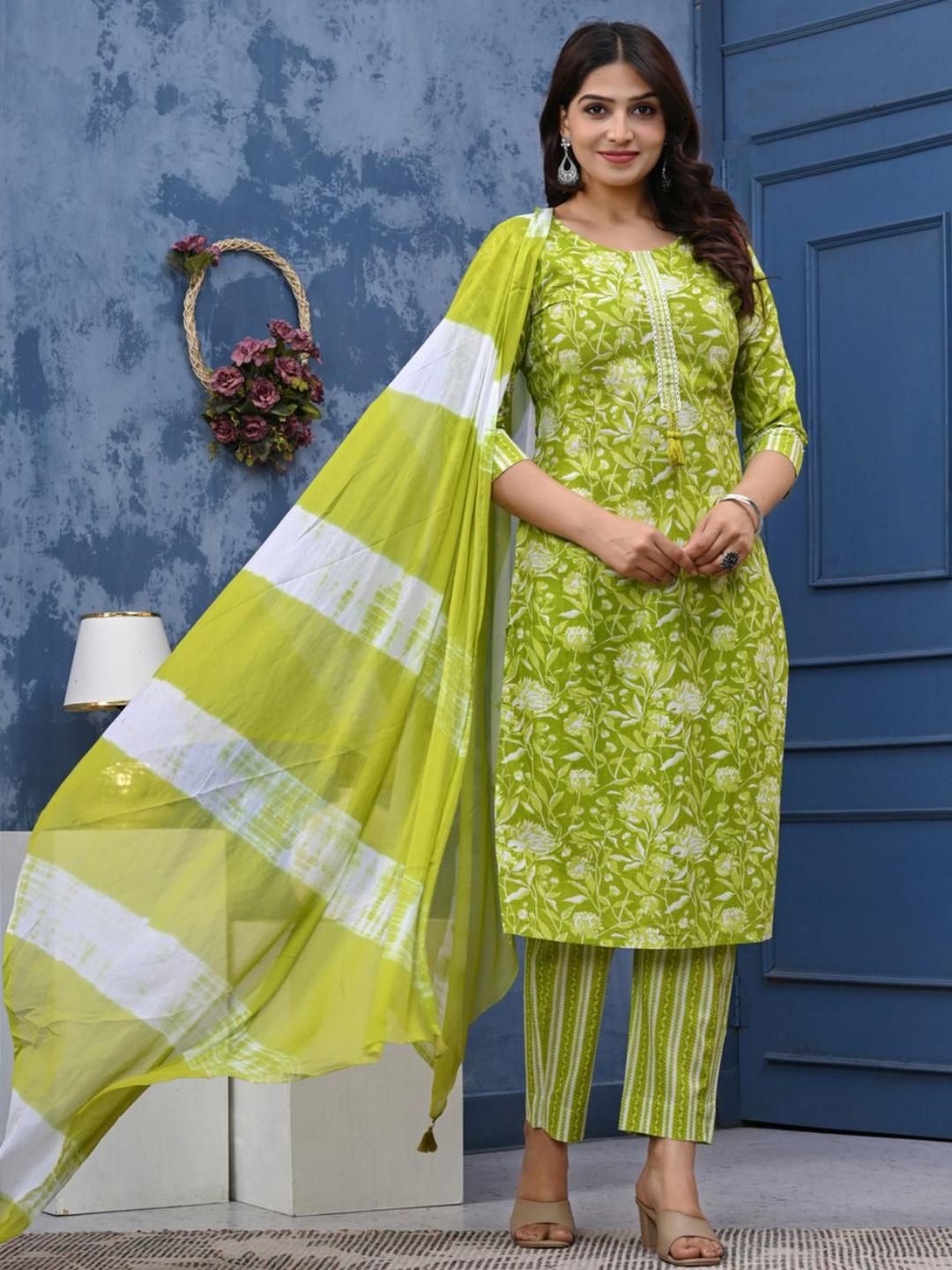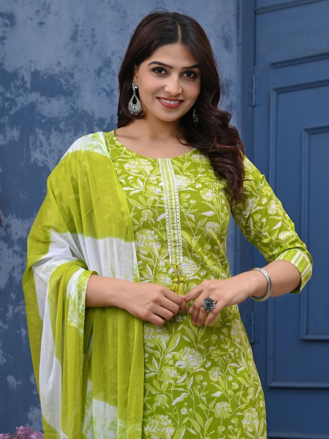 KALINI Women Green Pure Cotton Kurta Sets With Dupatta