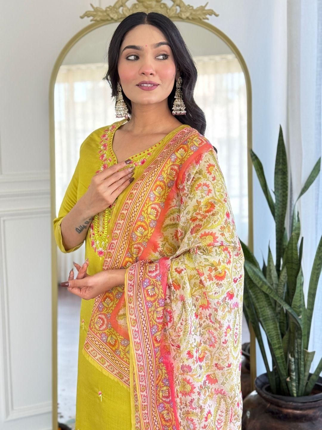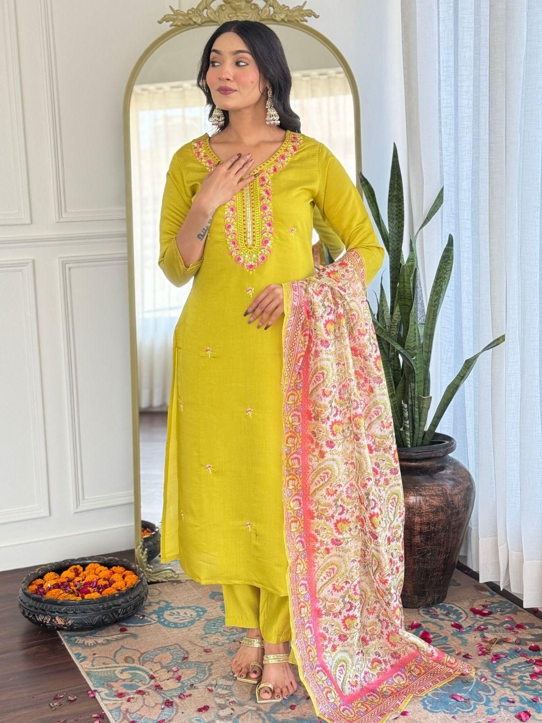 KALINI Women Multicoloured Viscose Rayon Kurta With Trousers & Dupatta