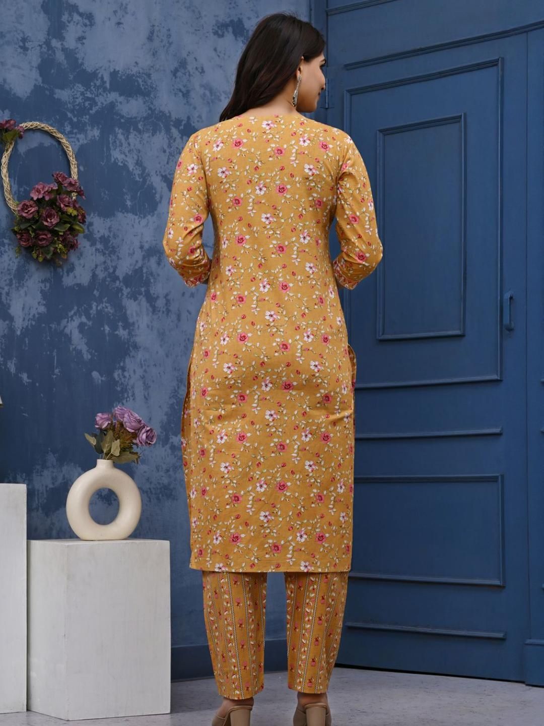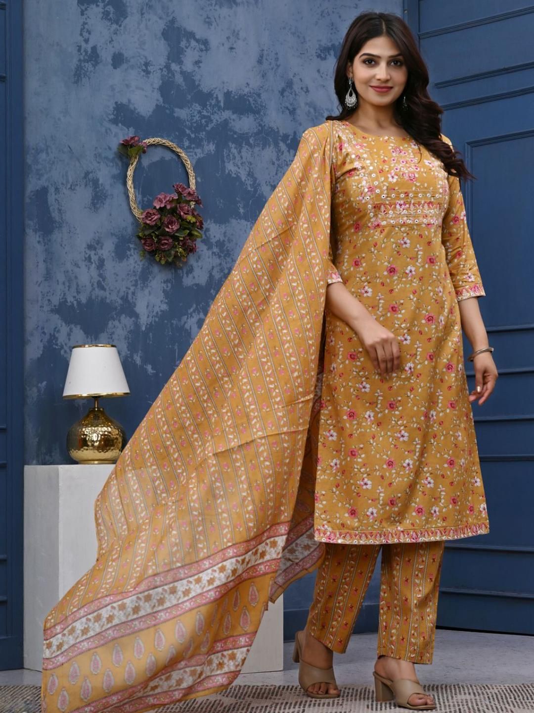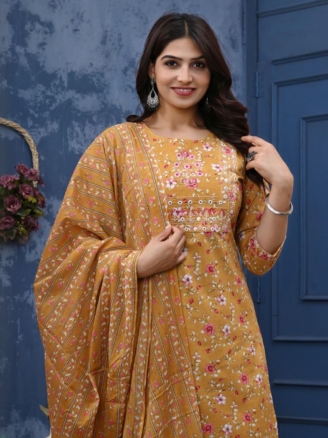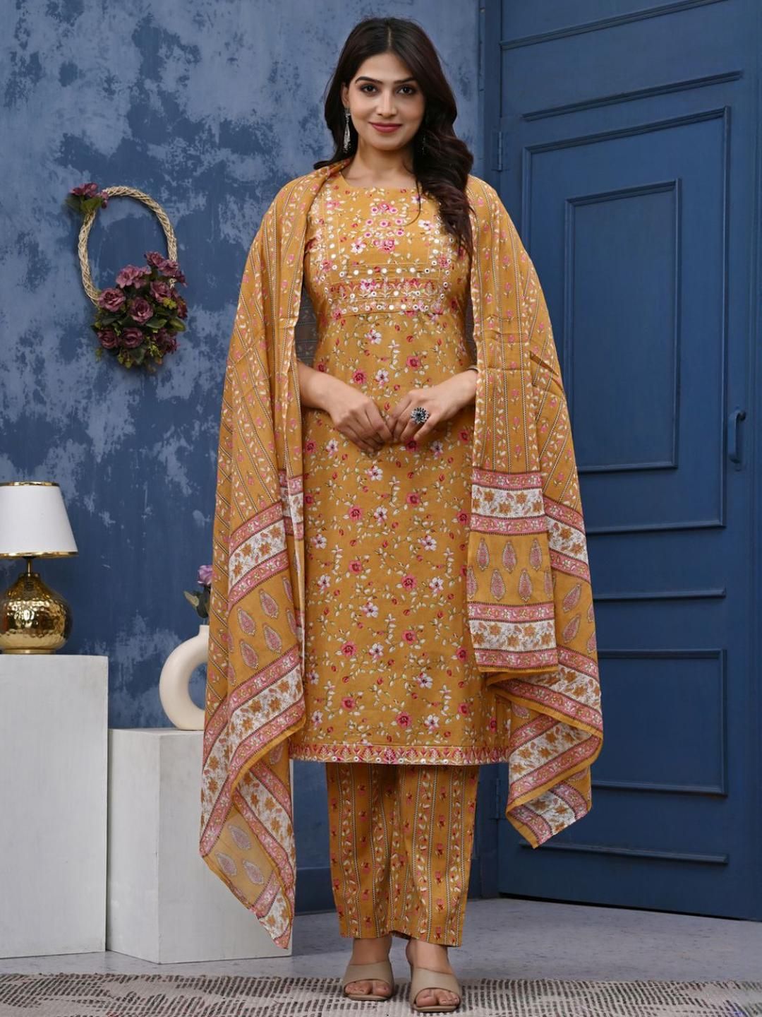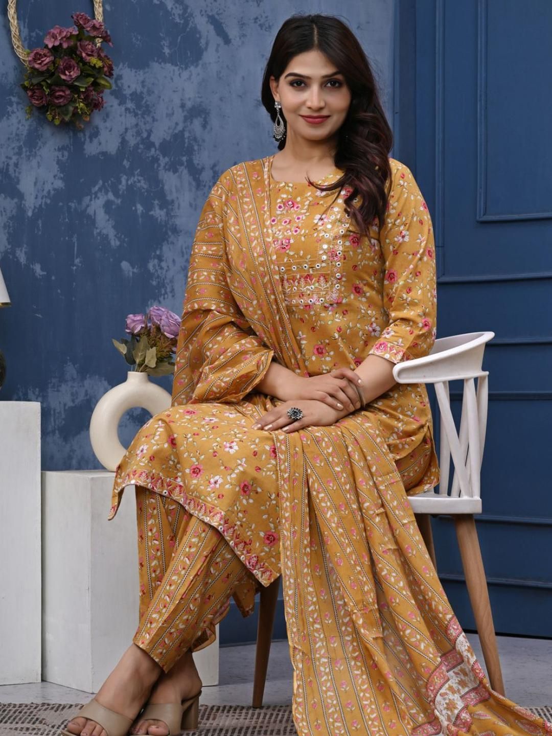 KALINI Women Mustard Pure Cotton Kurta Sets With Dupatta