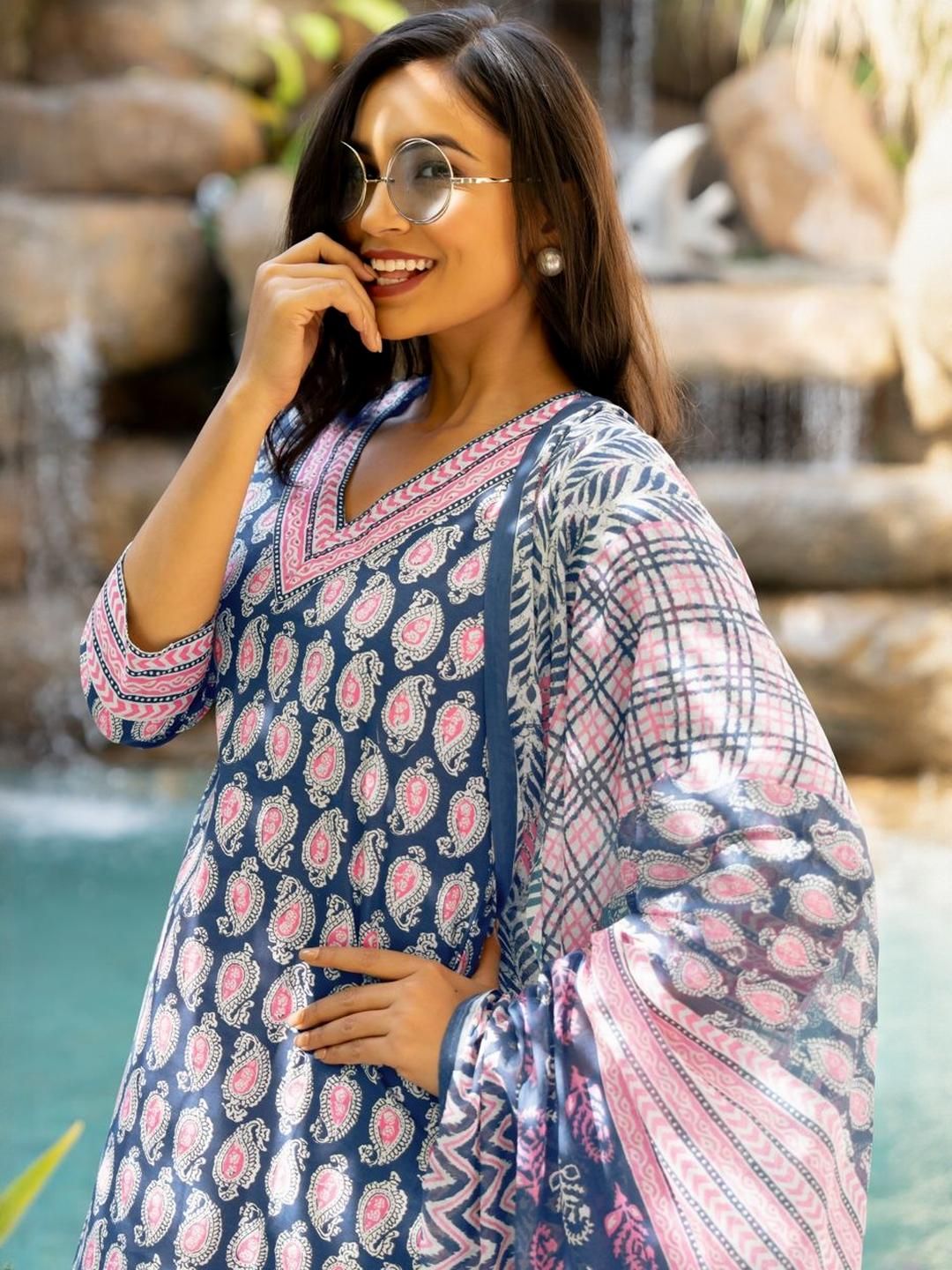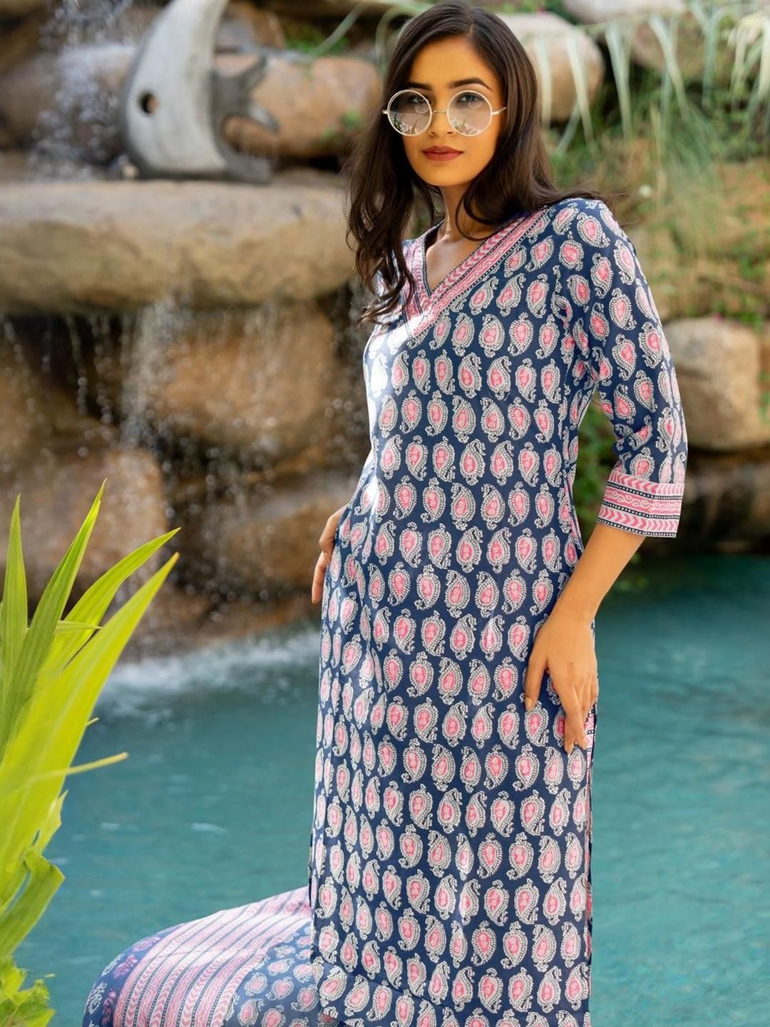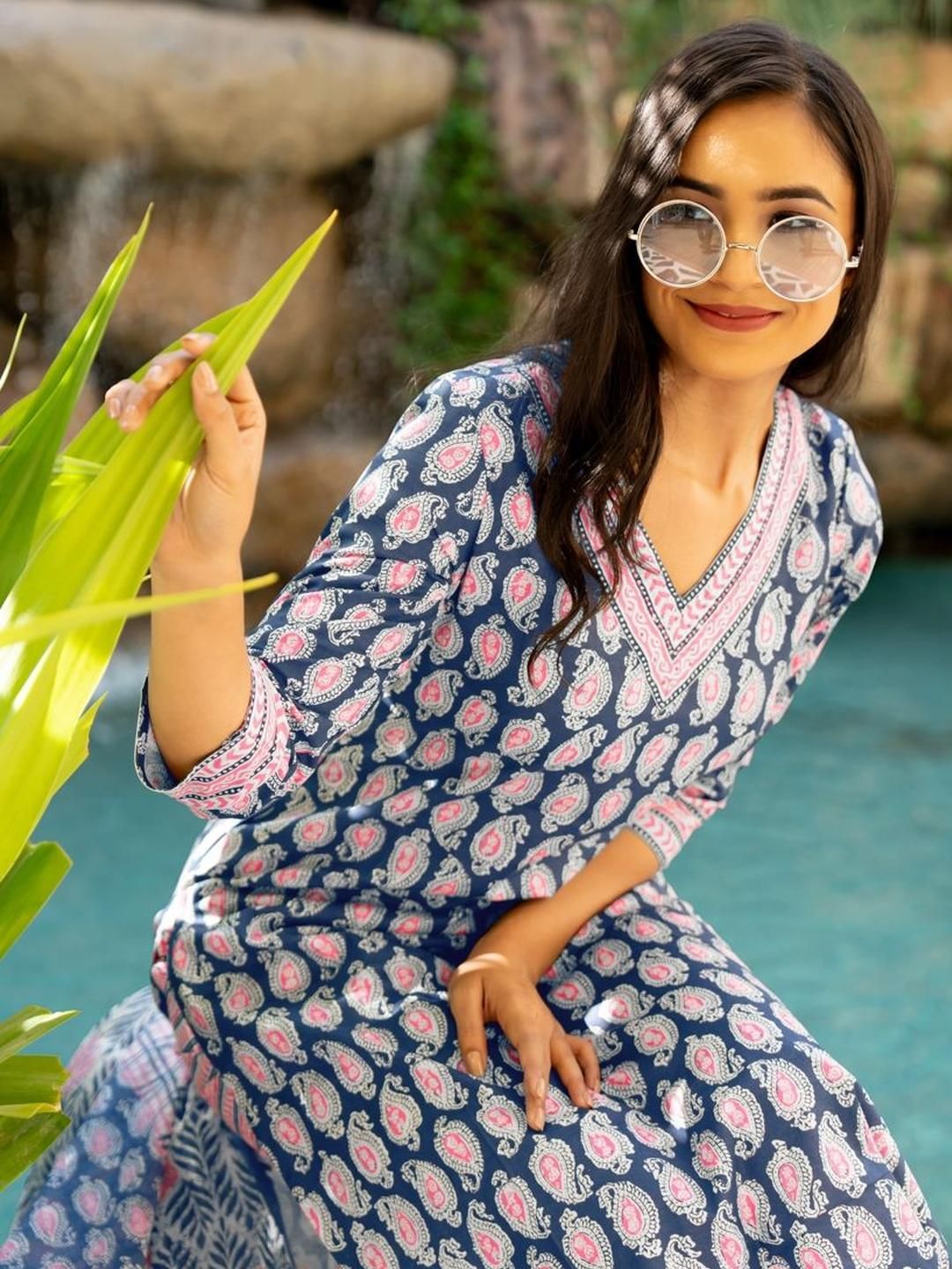 KALINI Women Navy Blue Pure Cotton Kurta Sets