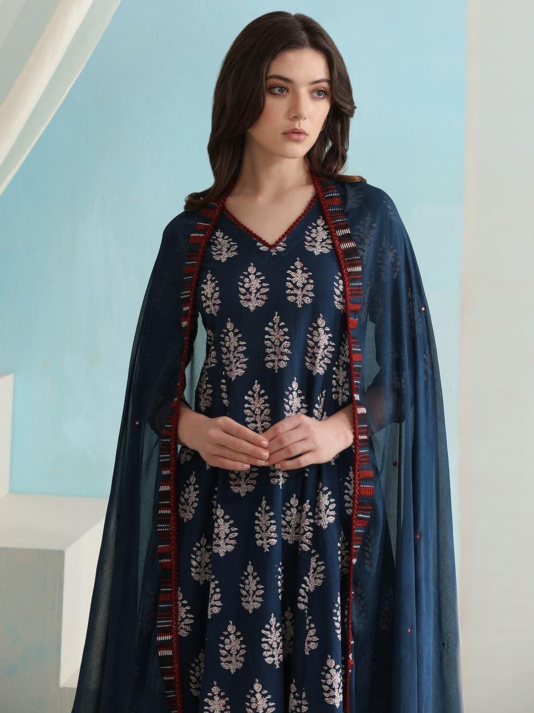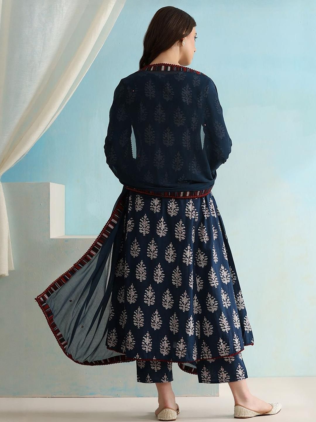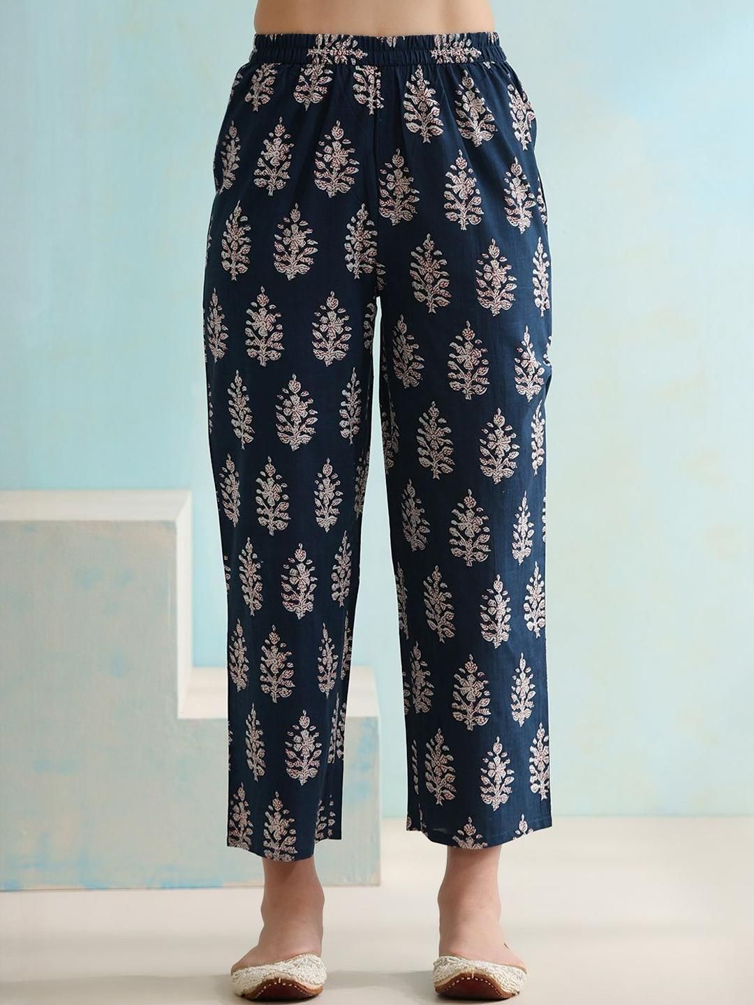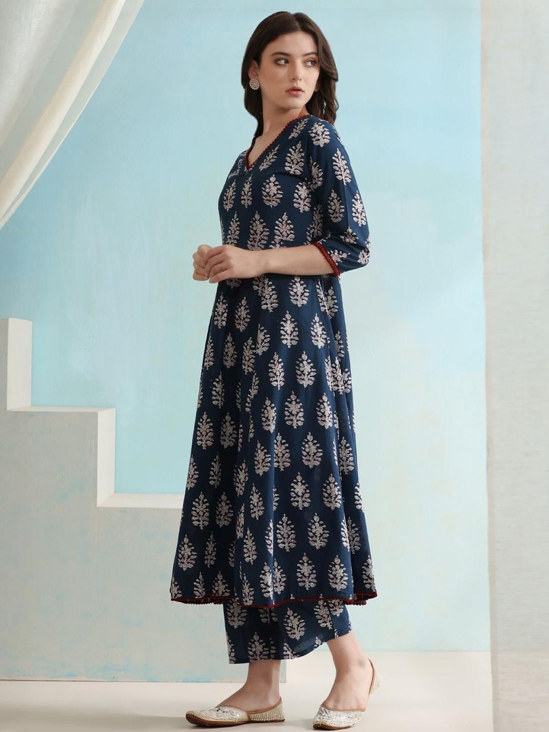 KALINI Women Navy Blue Viscose Rayon Printed Kurta Sets