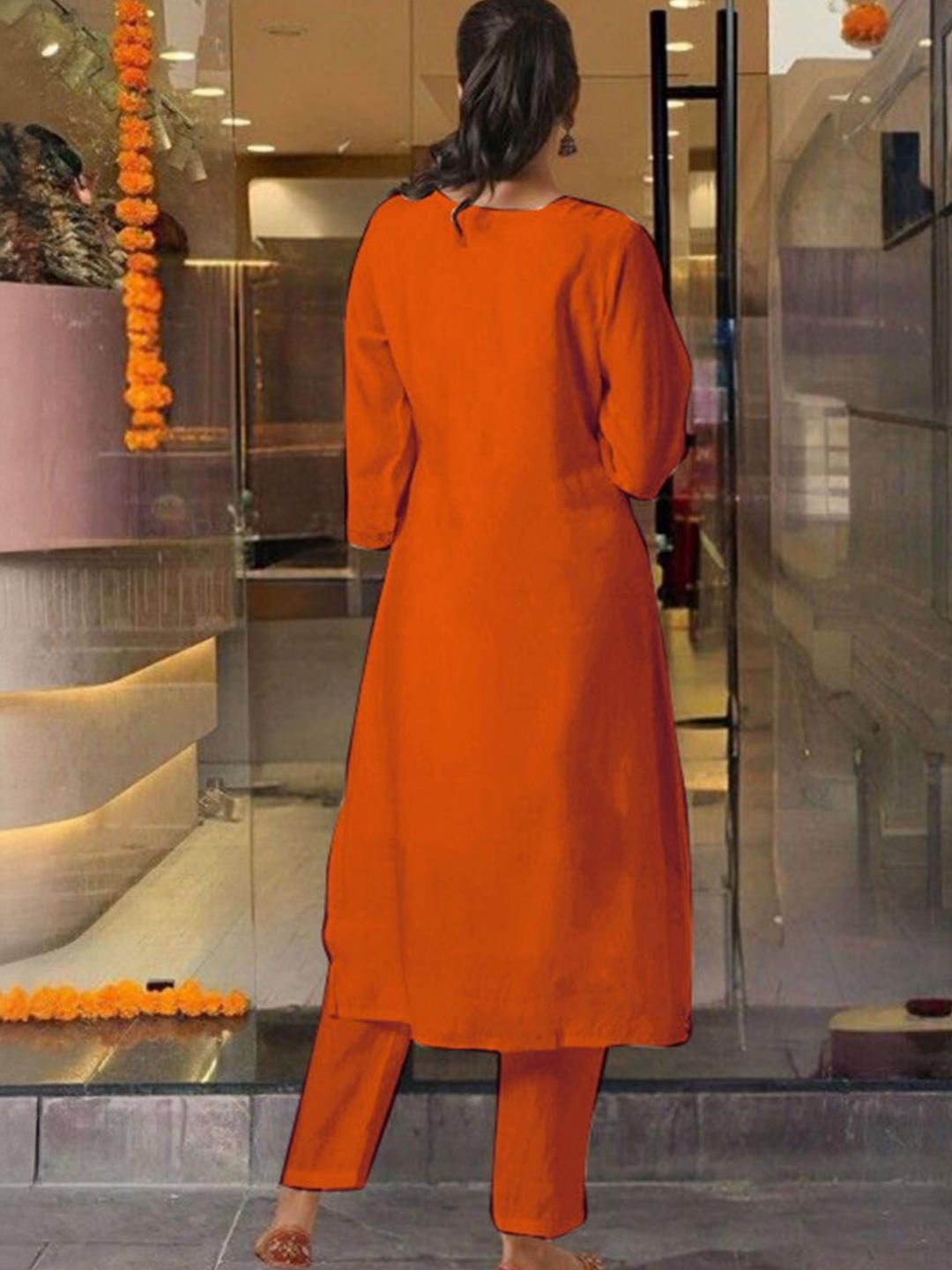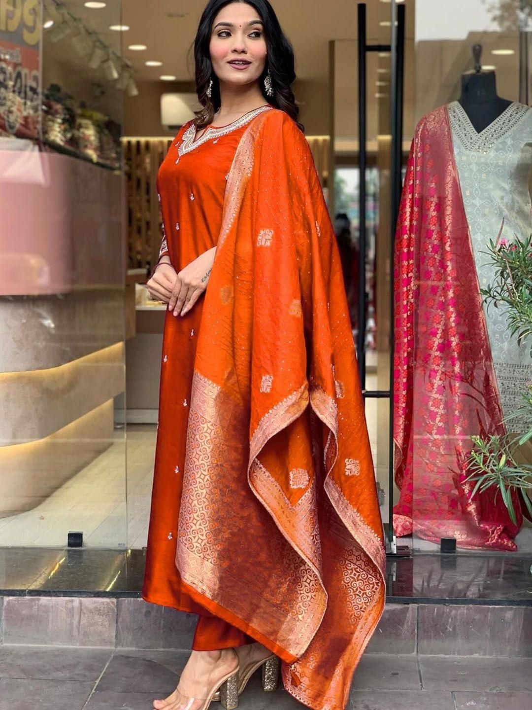 KALINI Women Orange Chanderi Silk Kurta Sets