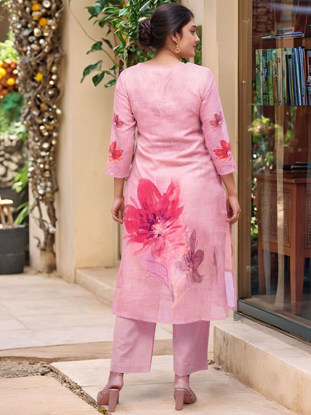 KALINI Women Pink Rayon Blend Printed Straight Kurta With Trousers