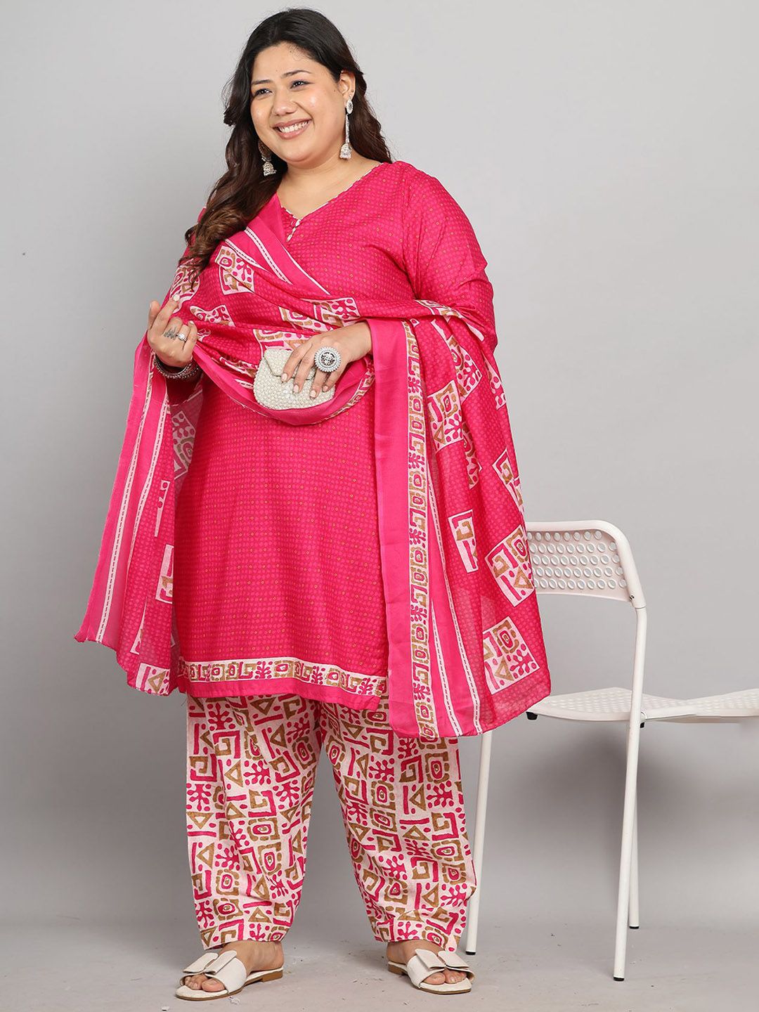 KALINI Women Plus Size Abstract Printed Kurta with Patiala & Dupatta