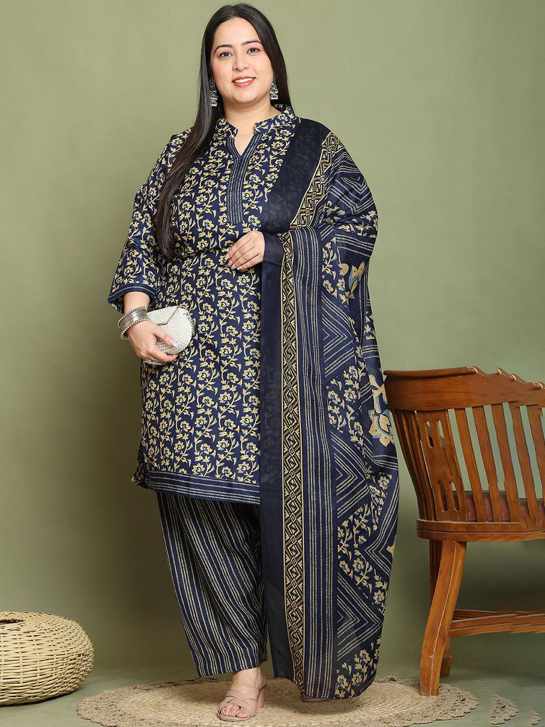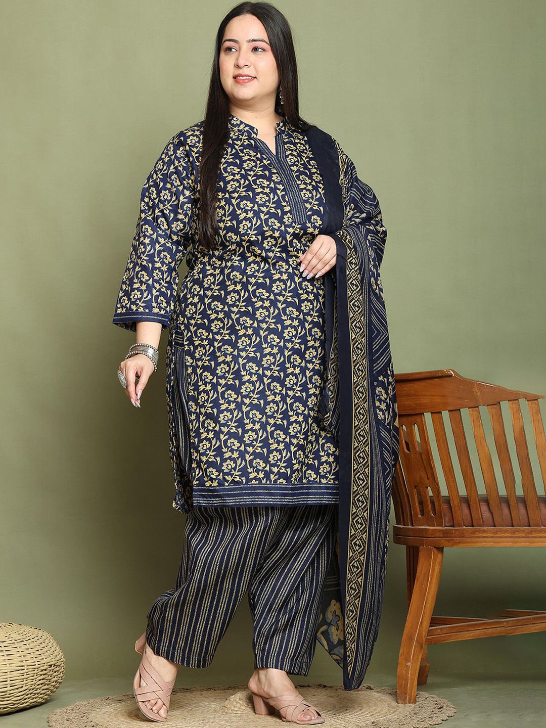 KALINI Women Plus Size Ethnic Motifs Printed Kurta with Salwar & Dupatta