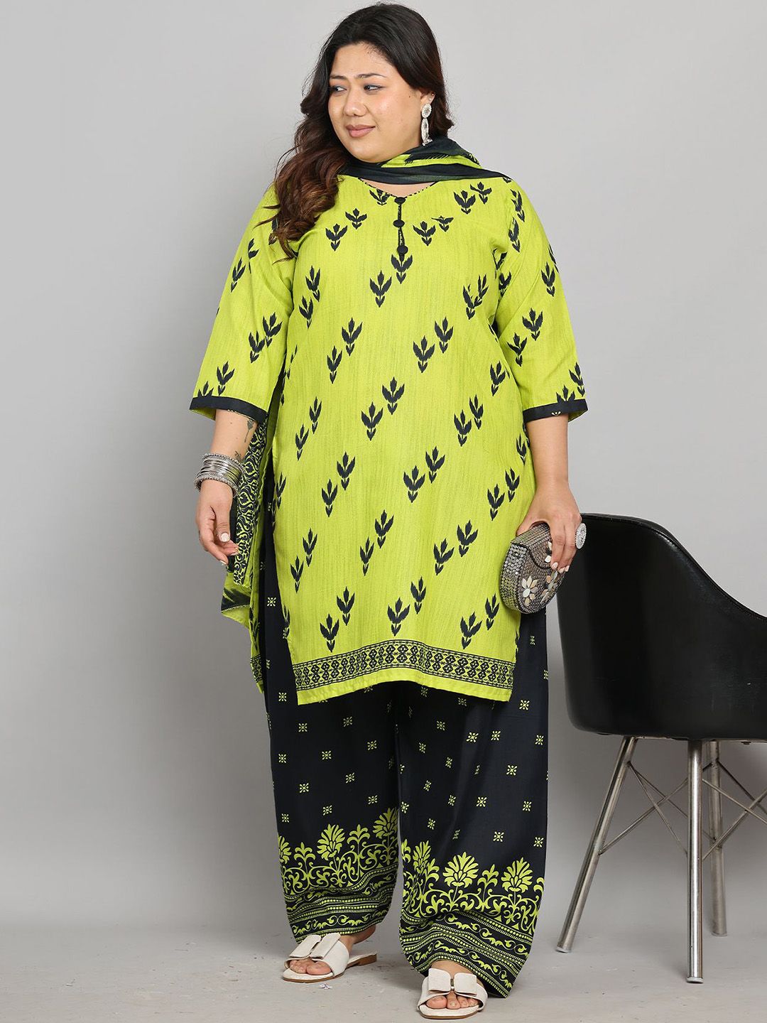 KALINI Women Plus Size Floral Printed Kurti with Palazzos & Dupatta