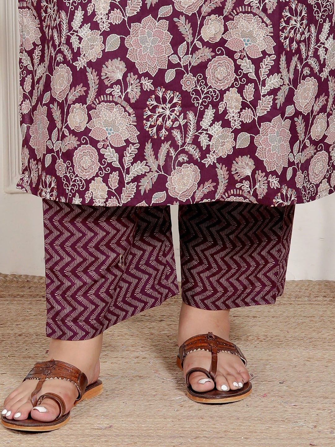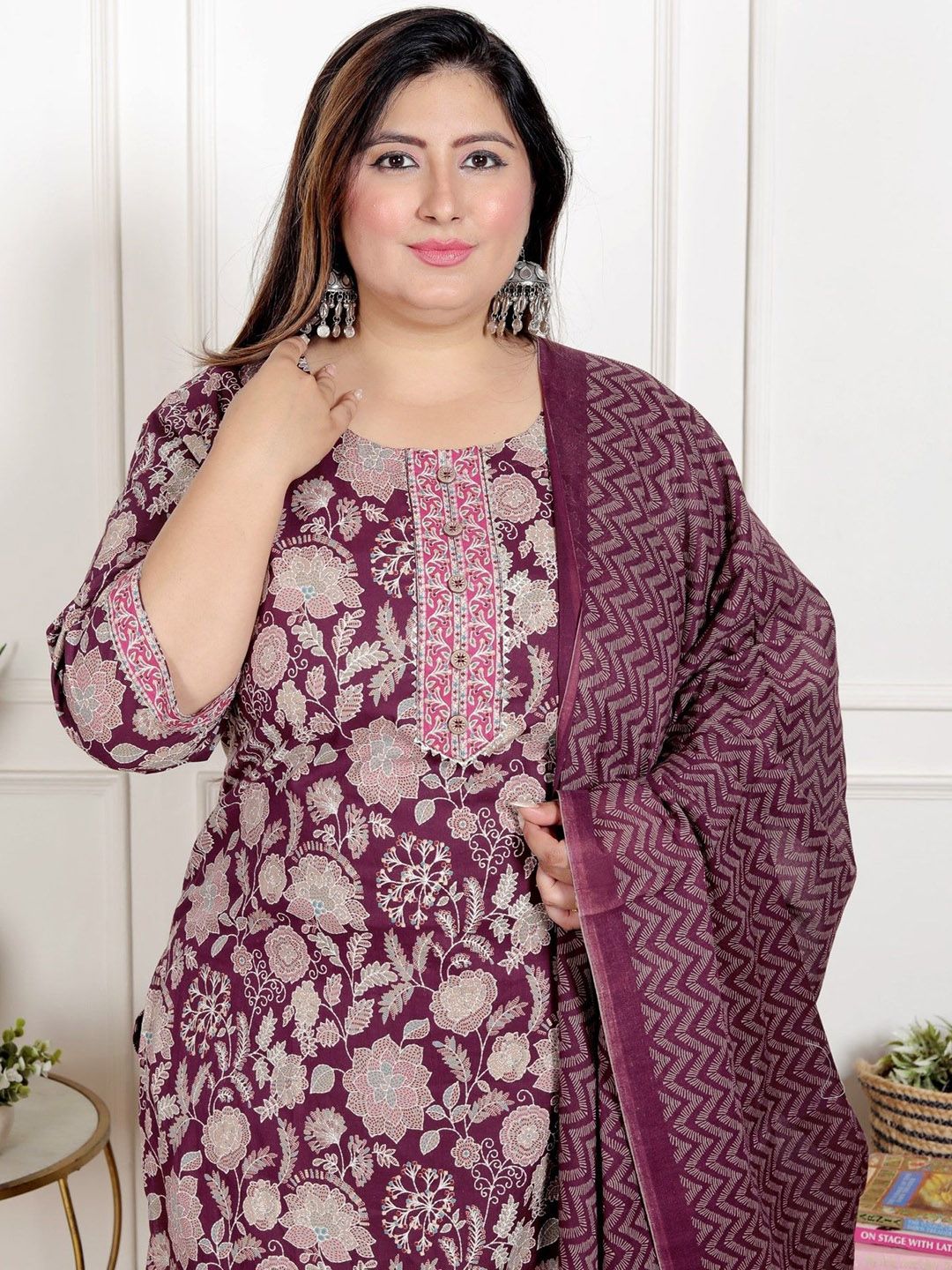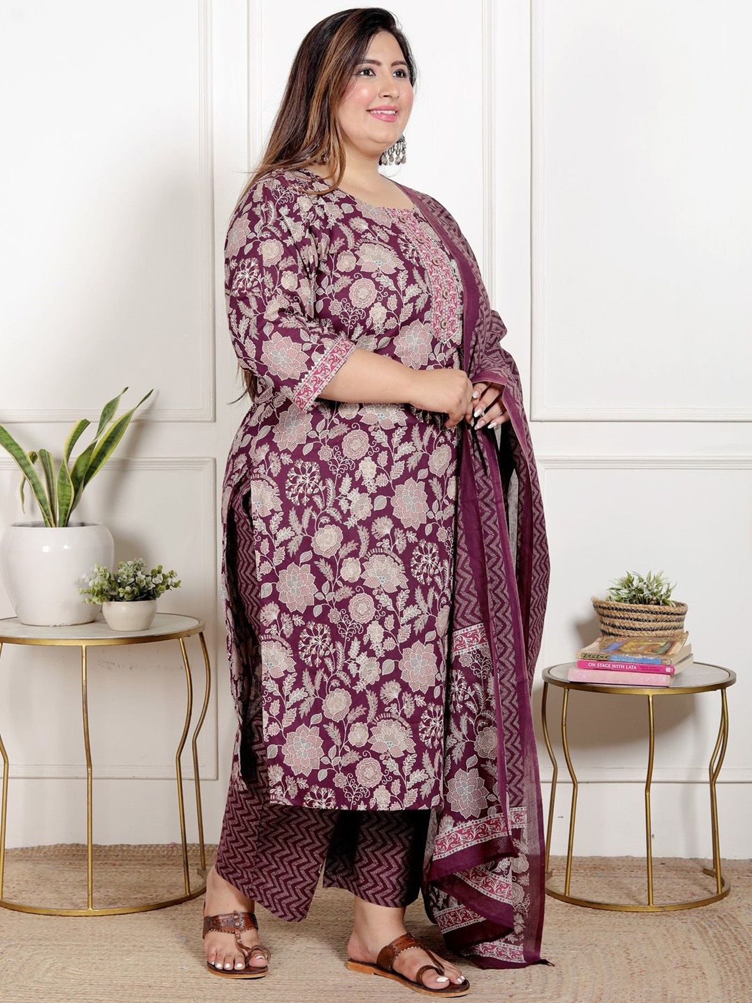 KALINI Women Plus Size Printed Pure Cotton Kurta with Trousers & Dupatta